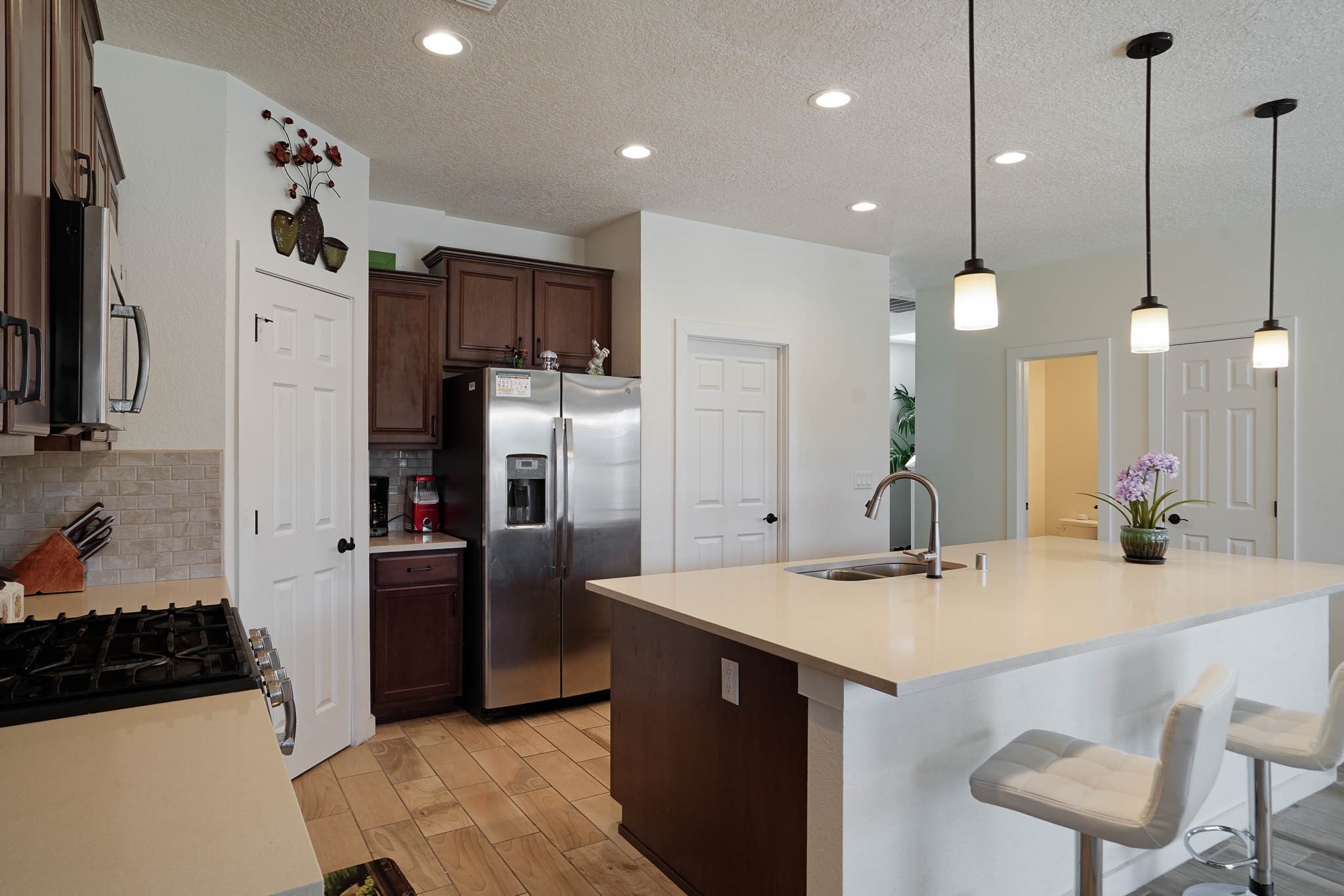 Deluxe 5 year new resale in desirable Mirador neighborhood in the heart of White Rock, close to Los Alamos National Laboratory! Step into comfort w/this thoughtfully designed 4 bed/2.5 bath ~1900sf "Cougar" layout on two levels of living space. Main level features sleek open eat-in kitchen w/marble counters, maple cabinets, stainless steel appliances, & generous walk in pantry. Also separate dining area, bright 'n wide living room w/South + East exposures, half bath, bonus storage room, and direct access to back portal + fully fenced backyard. All 4 bedrooms up w/primary suite featuring private balcony w/mountain views, double sink + walk in shower bathroom that leads to walk in closet. 2 car garage + driveway parking all on a quiet dead end street in a peaceful, scenic community close to parks, trails, & local amenities. Whether looking for a forever home, versatile investment property, or a part time in-town spot - this home presents an outstanding opportunity to own in a special location. Eligible veterans may qualify to assume current VA loan and realize significant savings at a low interest rate!