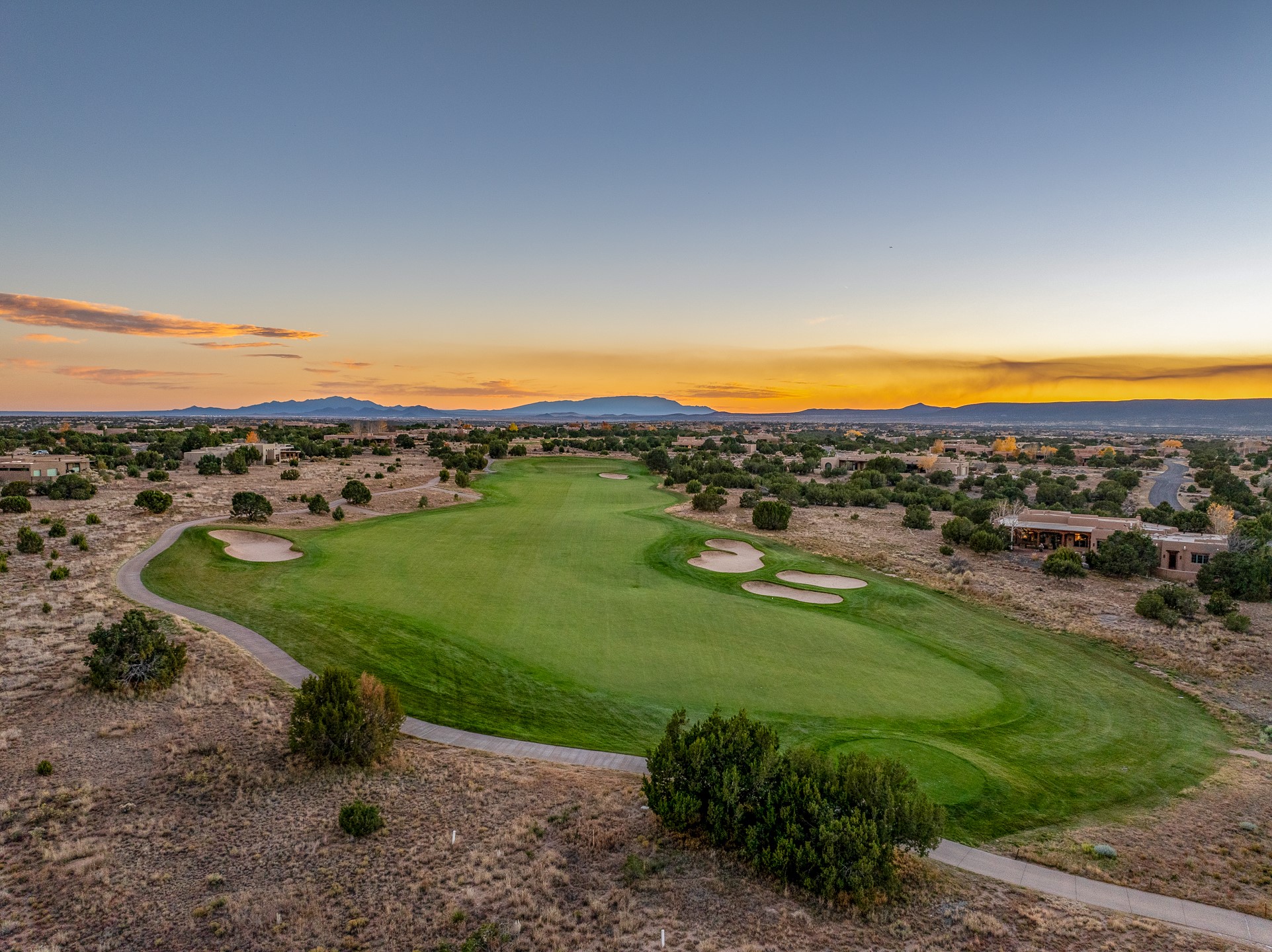 In the tree-studded rolling hills northwest of town are Las Campanas and a host of other developments and neighborhoods of larger, private lots and newer homes, most with city services and utilities. The land here sits between the city and the arroyos that carry rainwater to the Rio Grande, just a few miles west, creating a landscape almost like ocean waves rolling into shore.