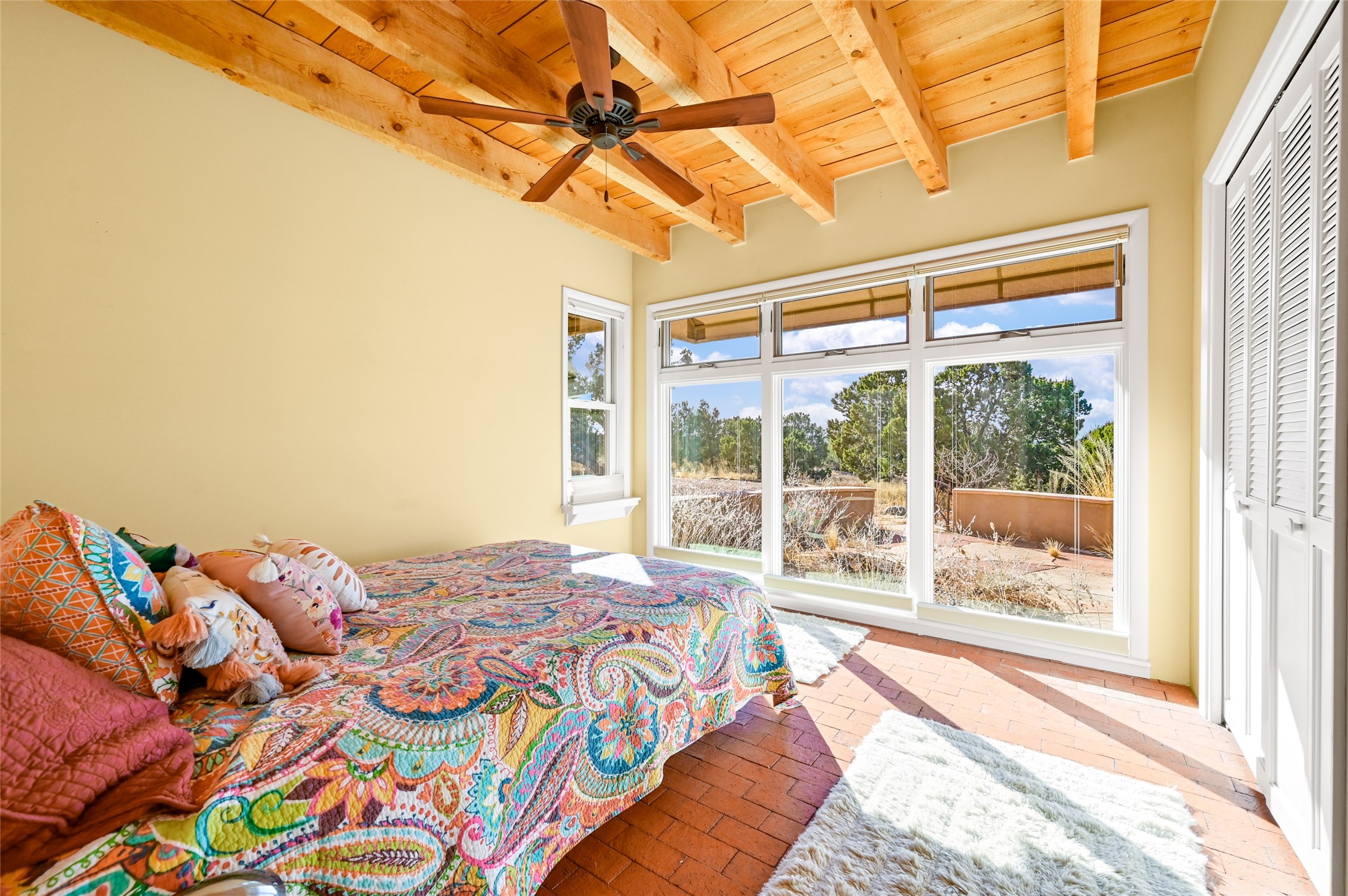 Great passive solar Eldorado home on 1.39 Acres. The 1,146-square-foot main house has 2 bedrooms and 2 bathrooms, and the 686-square-foot Guesthouse/Studio has 2 large rooms and one 3/4 bath. Brick floors in the main, with granite countertops and concrete floors in the Guesthouse/Studio. Also included are Solar panels, a shared well, a 1750-gallon cistern for rainwater harvesting/irrigation, a Navien boiler in the studio, and new coyote back yard fencing. The property backs up to a greenbelt, allowing easy access for hiking and open space for mountain and star-gazing views.