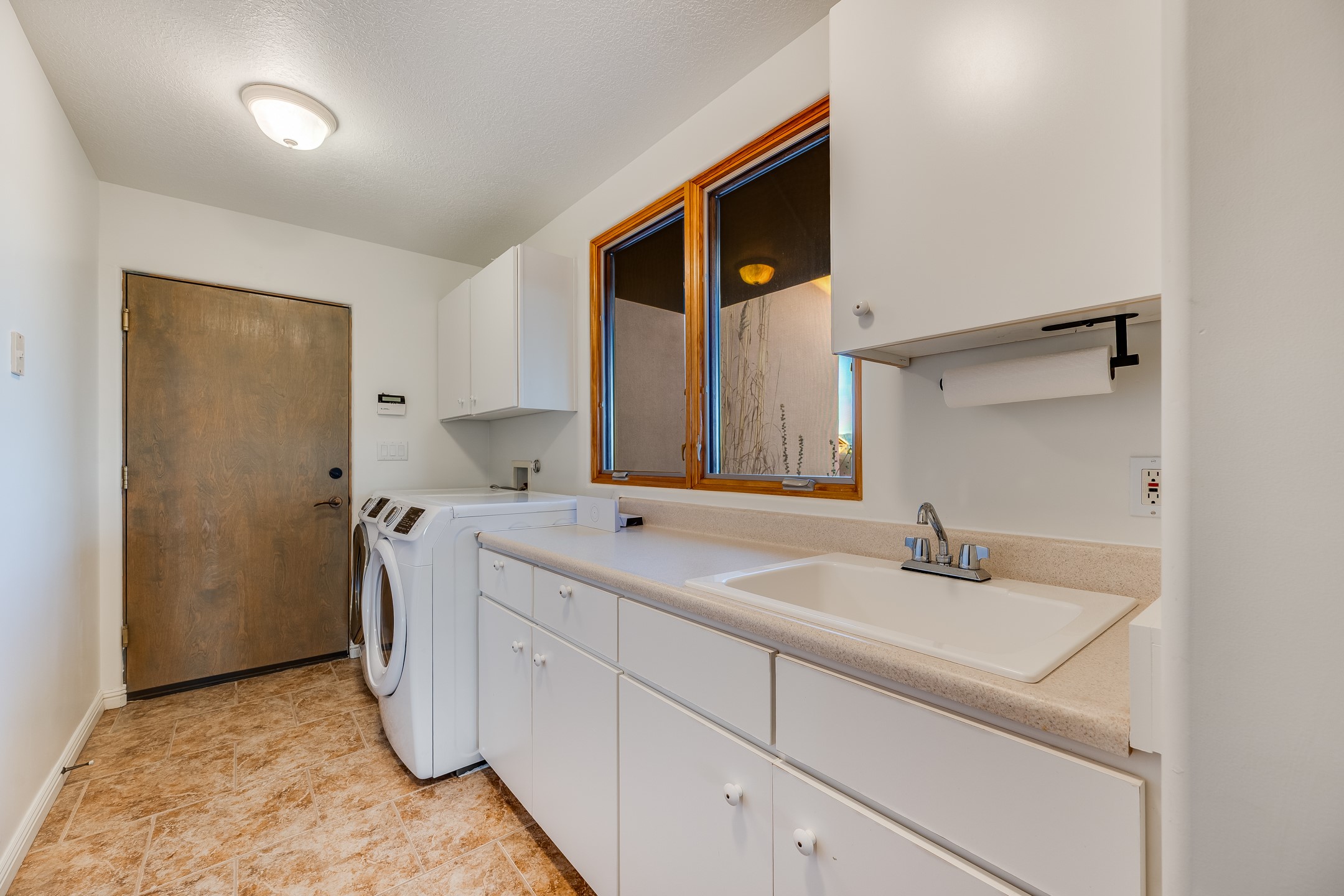 This spacious light view filled home offers a great value! Through the gated entry and into an extraordinarily captivating entrance this home feels like it is miles from everyone and yet it's within the neighborhood. Just a few minutes drive to Las Campanas and another few minutes to 599. This location is ideal for Living in style in the Northwest aea of Santa Fe.Each bedroom has views, natural light, access to the outside portals and ensuite baths. The natural minimalist landscaping is easy to maintain attractive from outside areaa, there is hard wiring lighting to the trees and irrigation.in addition why not have a party, there's plenty of within the grounds parking as well as a detached carport replete with Vegas and a propanel roof perfect for your recreational vehicles. There is also an attached two-car garage that is finished inside.Two fireplaces, Excellent storage and all the amenities one would expect can be yours. This is move-in ready.