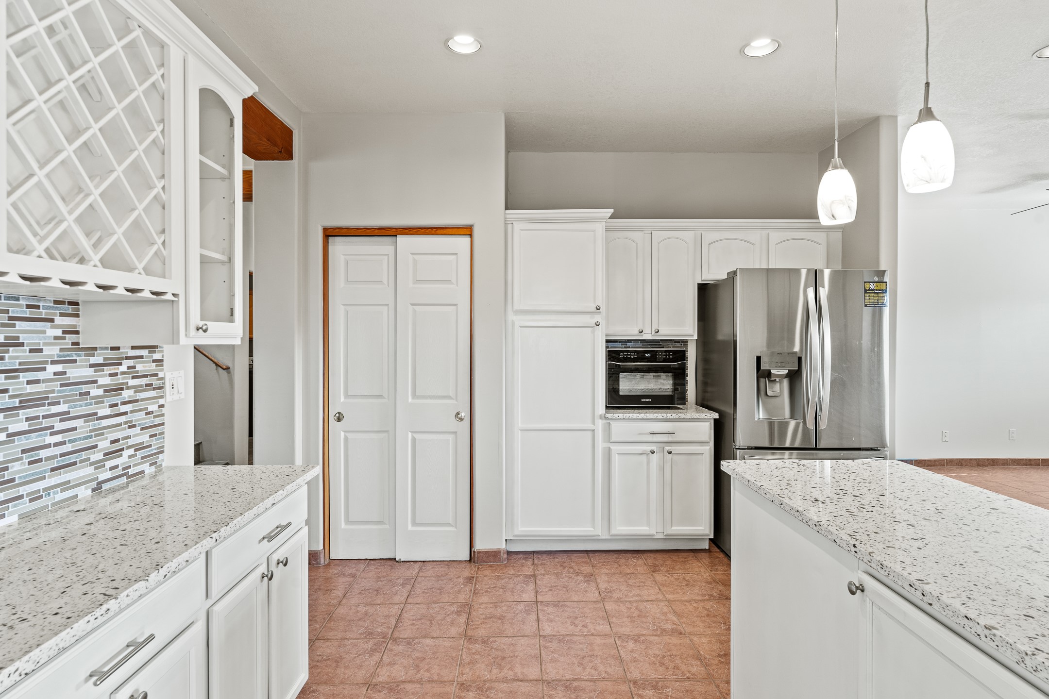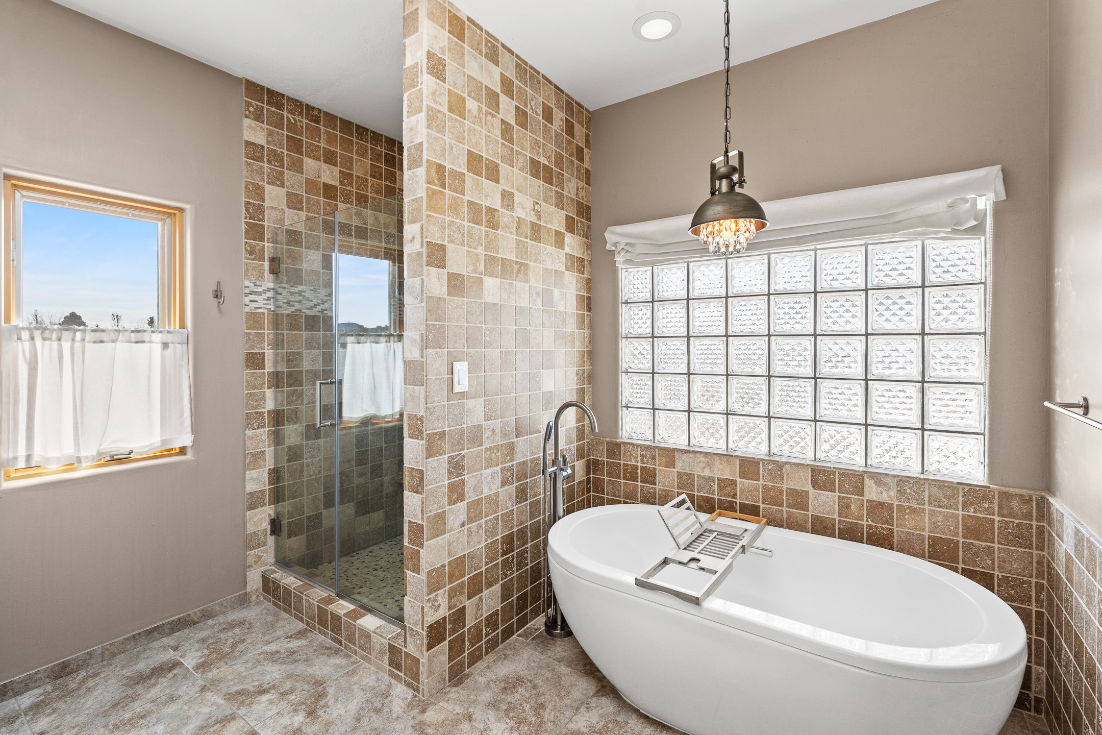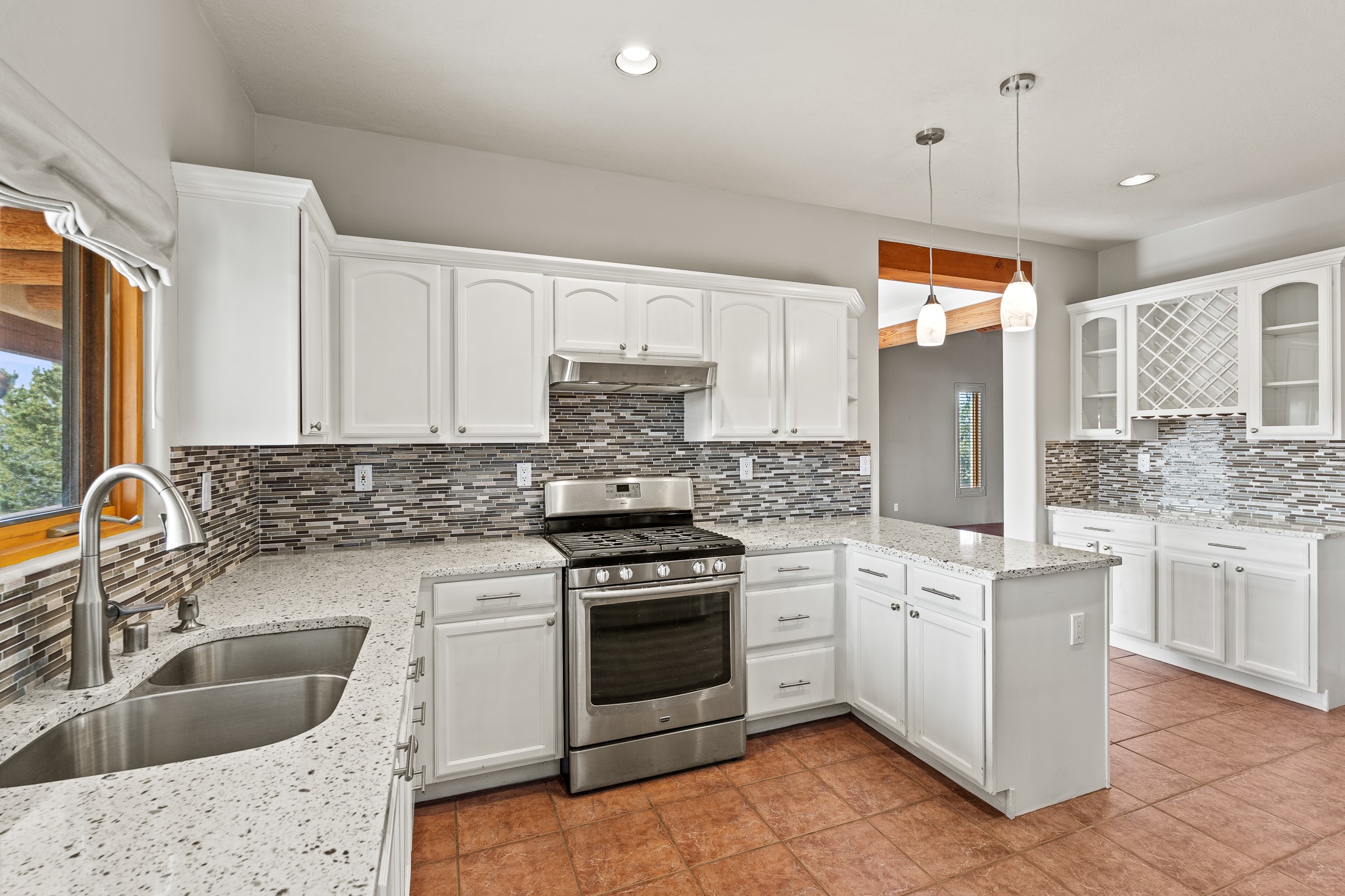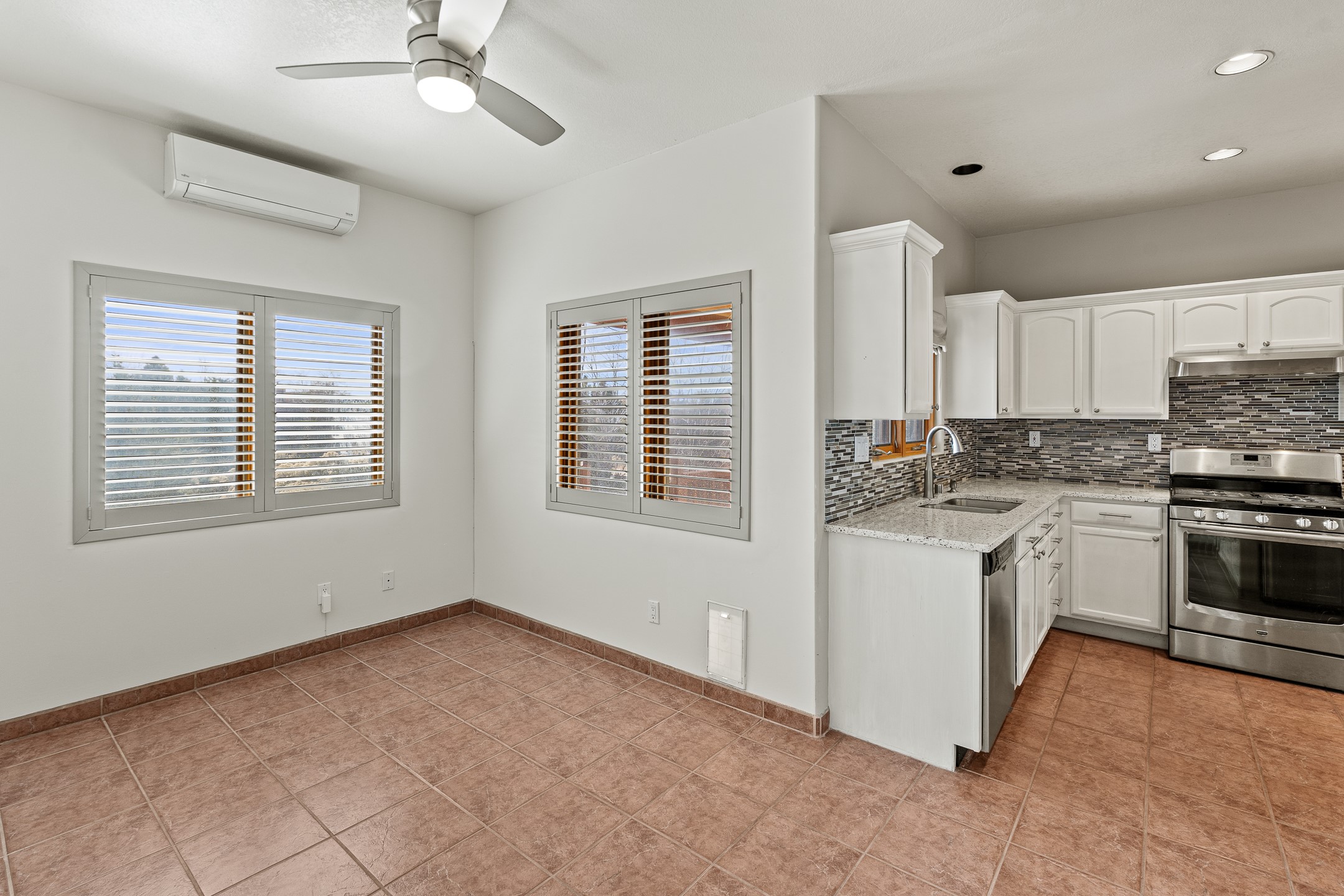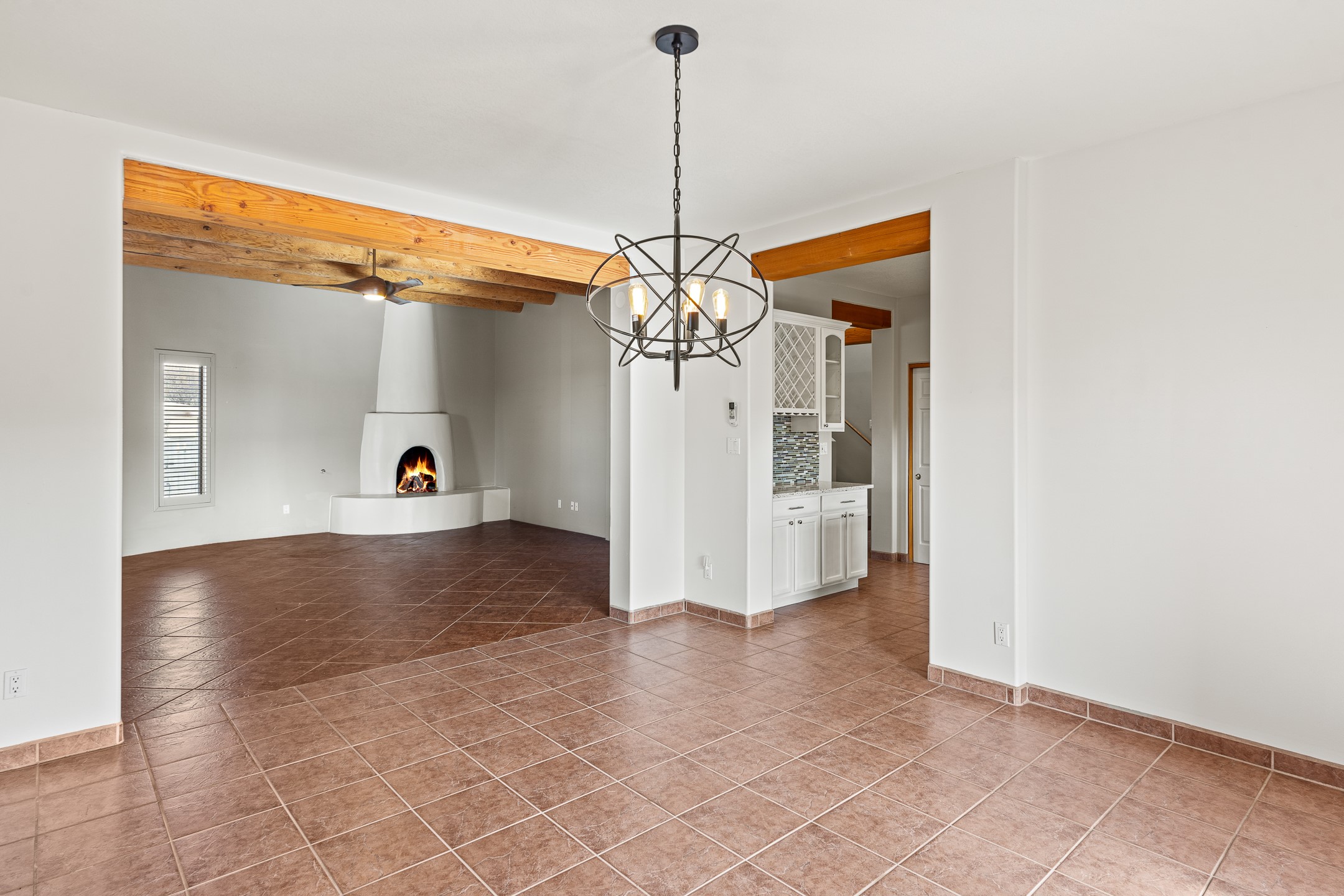 Custom home located in the sought-after Pueblos de Sol subdivision, offering comfortable living and sweeping sunrise andsunset views. Situated on a nicely sized corner lot, this home features a covered portal and rear deck--perfect for relaxingand enjoying the scenery. The kitchen showcases newer cabinetry, stainless steel appliances, granite countertops, and acoordinating backsplash. A formal dining room and a separate breakfast nook provide flexible dining options. ClassicSouthwestern details shine throughout, including tongue-and-groove ceilings with vigas and a Kiva fireplace. The oversized primary bedroom offers a true retreat, complete with a spa-like en suite bathroom featuring a standalone soaking tub, separate shower, and access to a private deck. Recent upgrades include a TPO roof installed in 2022 and a new boiler for radiant heating installed in 2024. Year-round comfort is ensured with five mini-split systems. Outdoor spaces include a charming landscaped courtyard with flagstone, mature trees, drip irrigation, and a pet-friendly layout. The rear deck is ideal for outdoor entertaining. The property backs to a walking trail, with a community park conveniently located across the street. A separate-entry studio/guesthouse with a full bath completes this exceptional offering--perfect for guests or rental income potential.