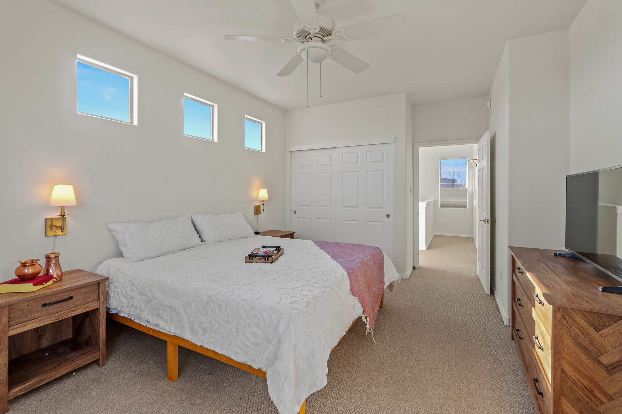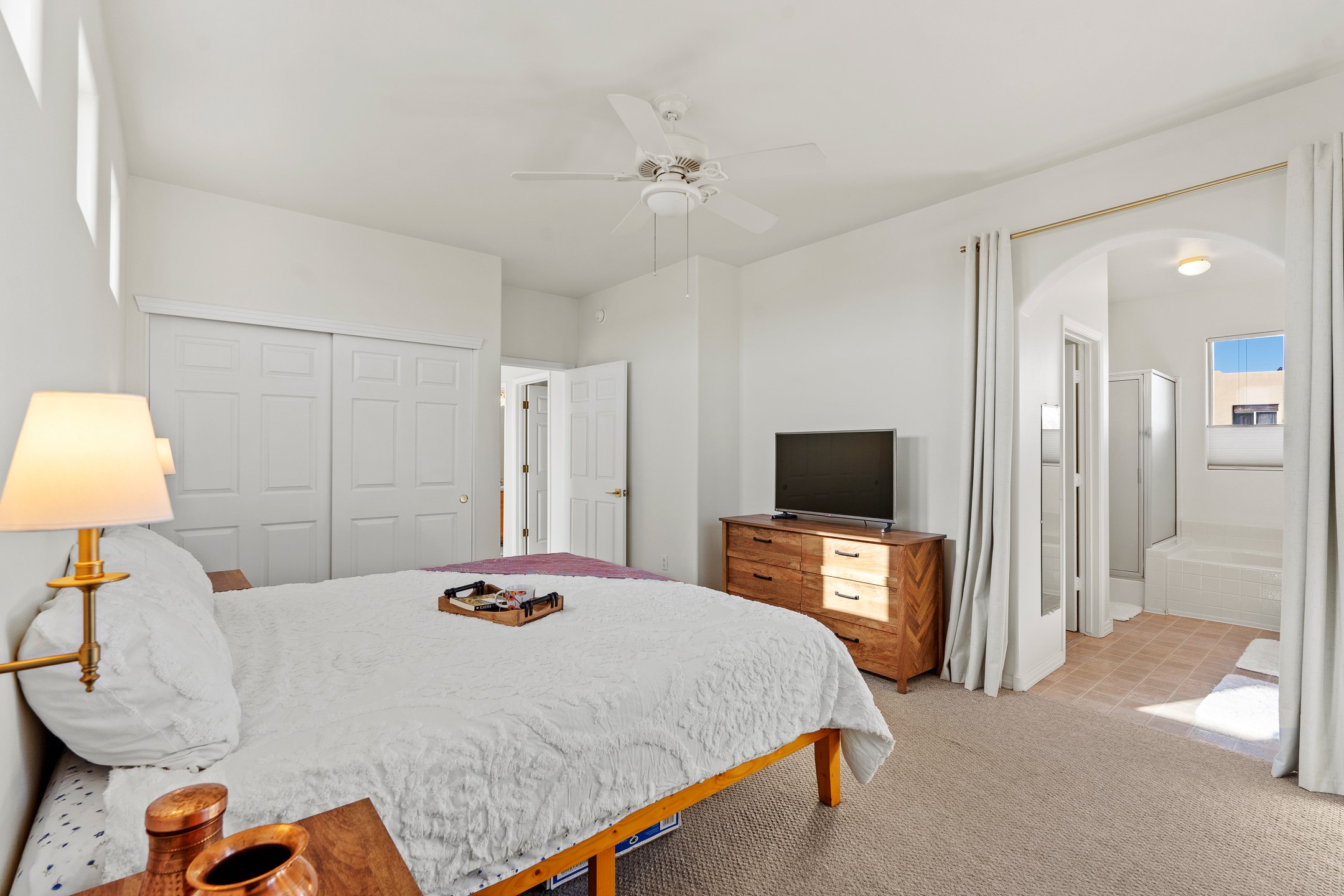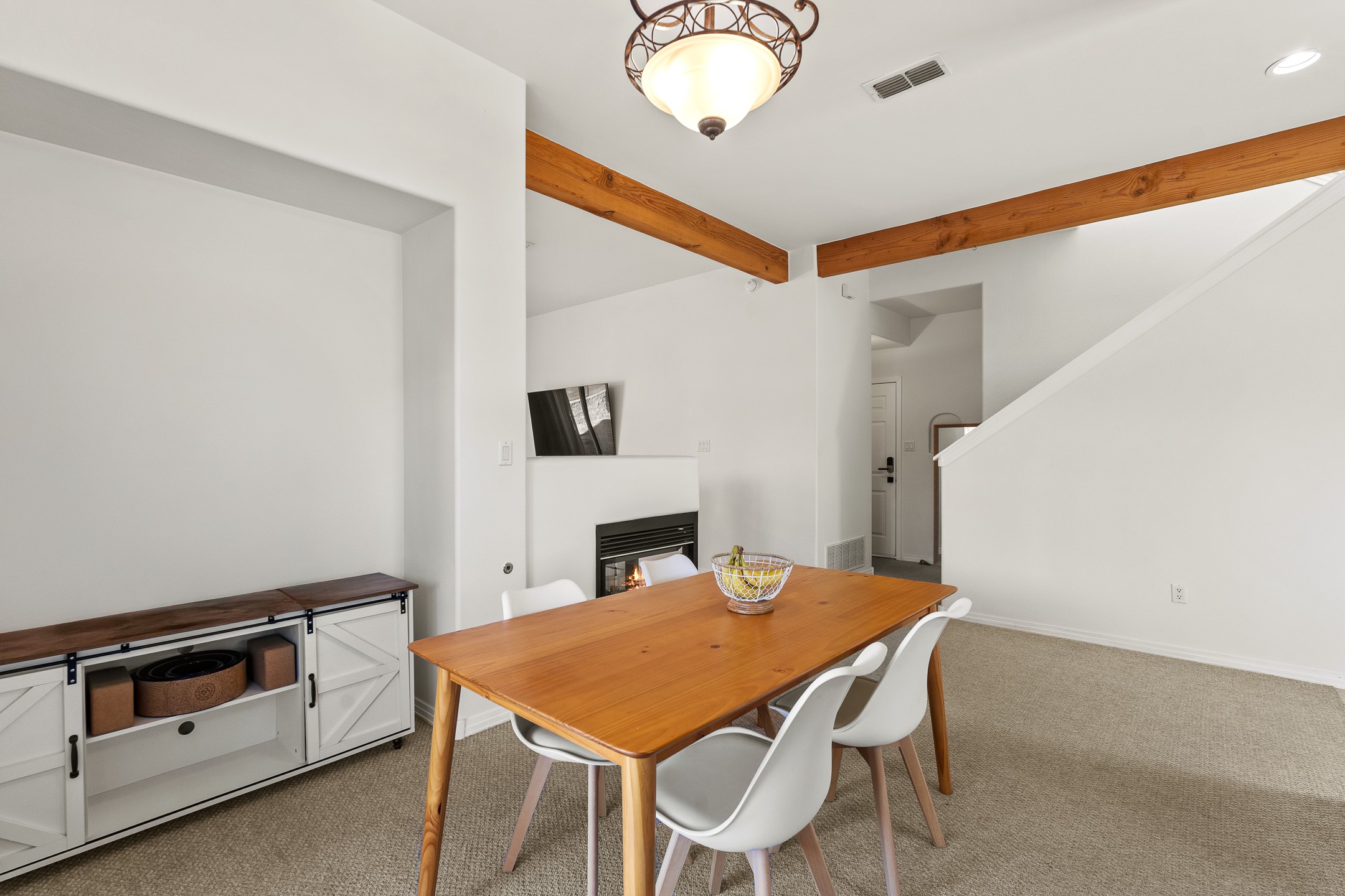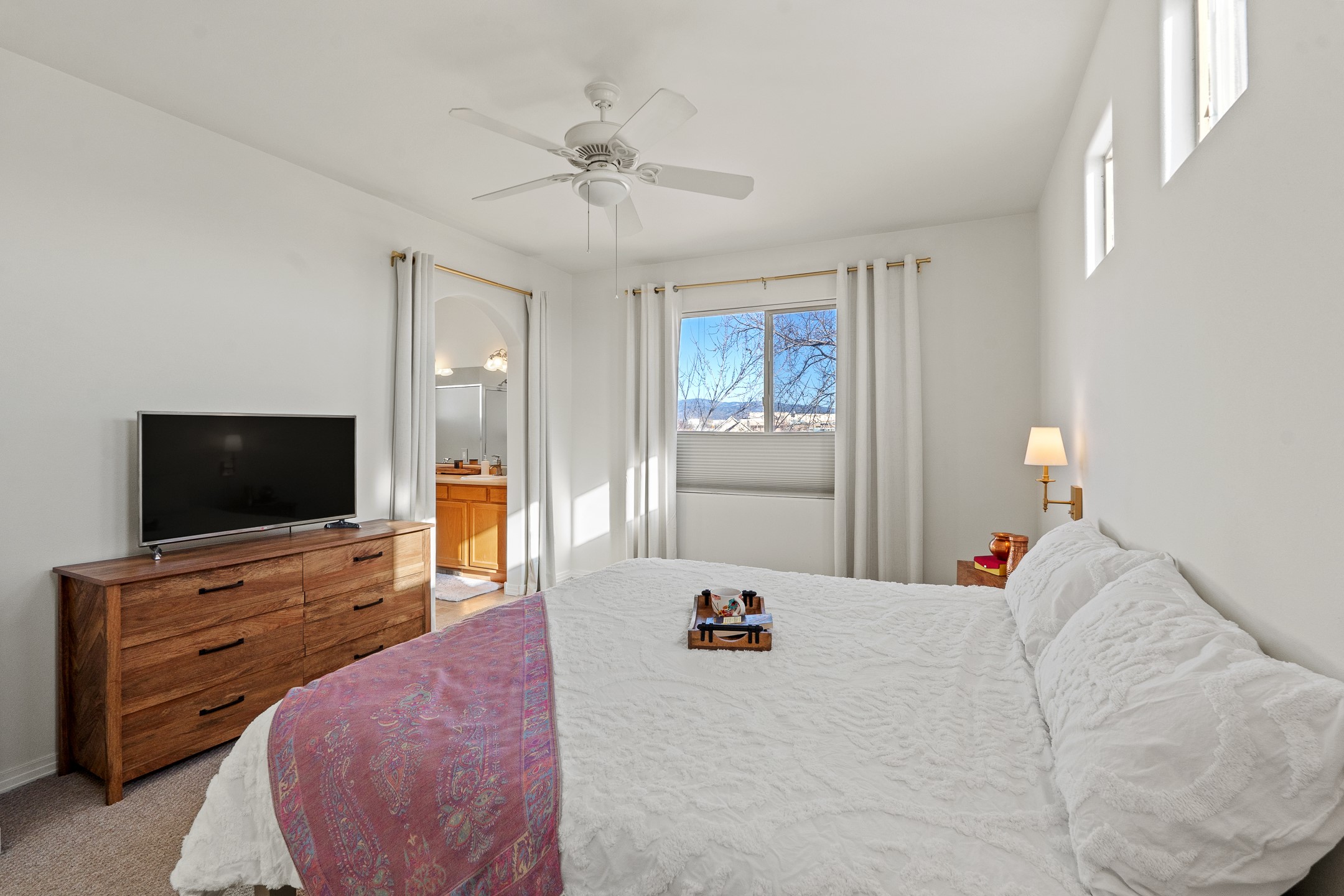 Set on a prime corner lot in one of the area's most desirable neighborhoods, this beautifully maintained home offers an exceptional blend of space, comfort, and Santa Fe living--with no HOA dues. Conveniently located near schools, parks, and community amenities, it's ideal for both growing households and those seeking an established, welcoming setting. The 1,856-square-foot two-story residence features 3 bedrooms, 2.5 baths, and a 2-car garage. Inside, soaring ceilings and abundant natural light create an immediate sense of openness. The spacious kitchen is well designed for daily living and entertaining, with generous counter space, a gas range, and easy flow to the dining area. Sliding doors lead to a large, fenced large backyard--perfect for outdoor dining, gardening, play, or relaxed gatherings. The inviting living room is anchored by a striking two-sided gas fireplace and enhanced by soft window treatments that add warmth and elegance. The main level also includes a convenient powder room, a generous laundry room with direct backyard access, and ample storage. The attached two-car garage offers space for vehicles, gear, and storage. Upstairs, three light-filled bedrooms provide comfort and privacy. The primary suite enjoys views of the Sangre de Cristo Mountains and features an en-suite bath with dual vanities, soaking tub, and walk-in shower. Two additional bedrooms share a well-appointed hall bath, ideal for guests, family, or a home office. An expansive upper-level deck is a true highlight--perfect for morning coffee, sunset skies, and Santa Fe's star-filled nights. Move-in ready and thoughtfully designed, 4615 Sunset Ridge offers generous indoor-outdoor living in a sought-after location. 4615 Sunset Ridge belongs on your must-see list.