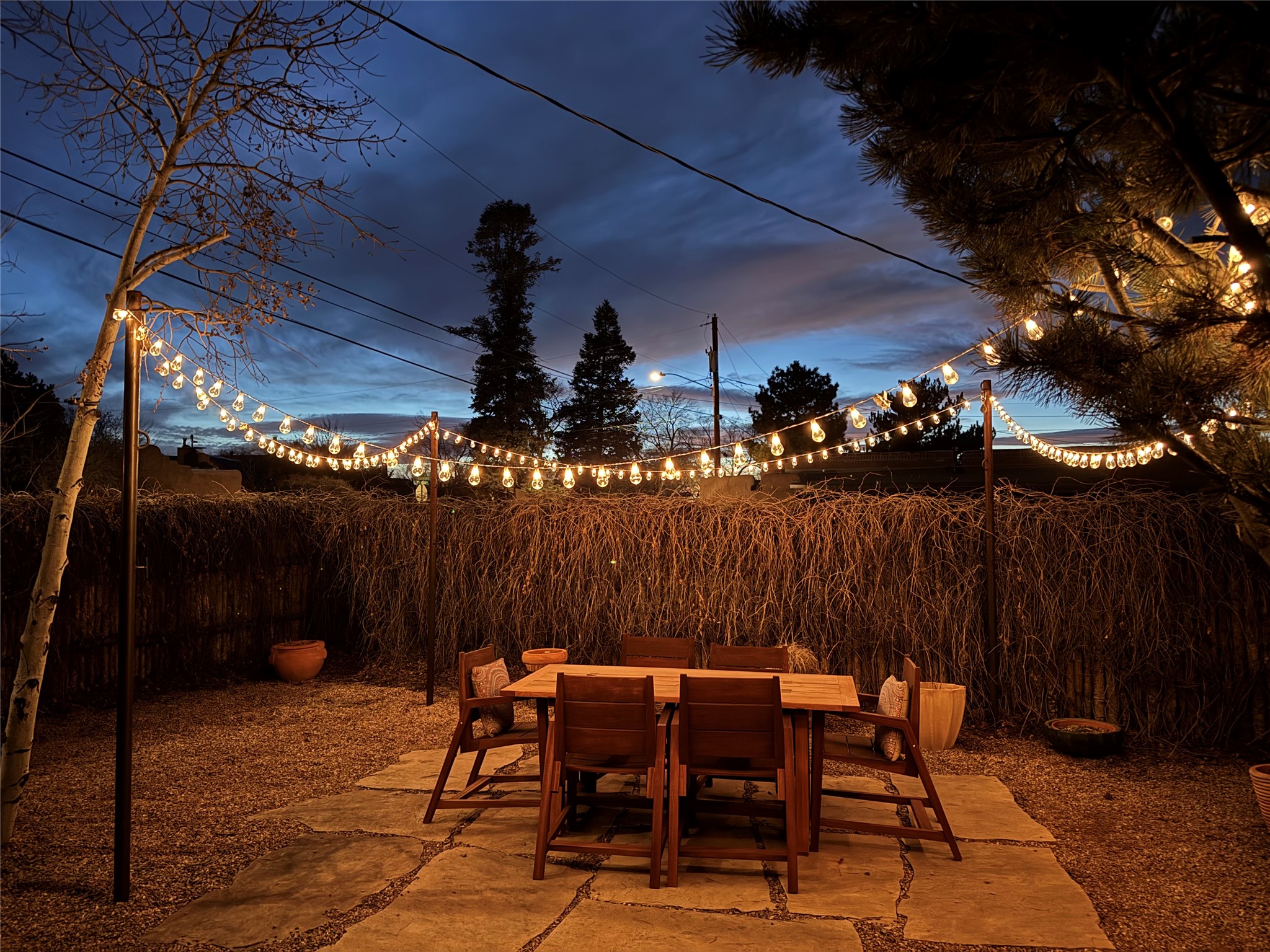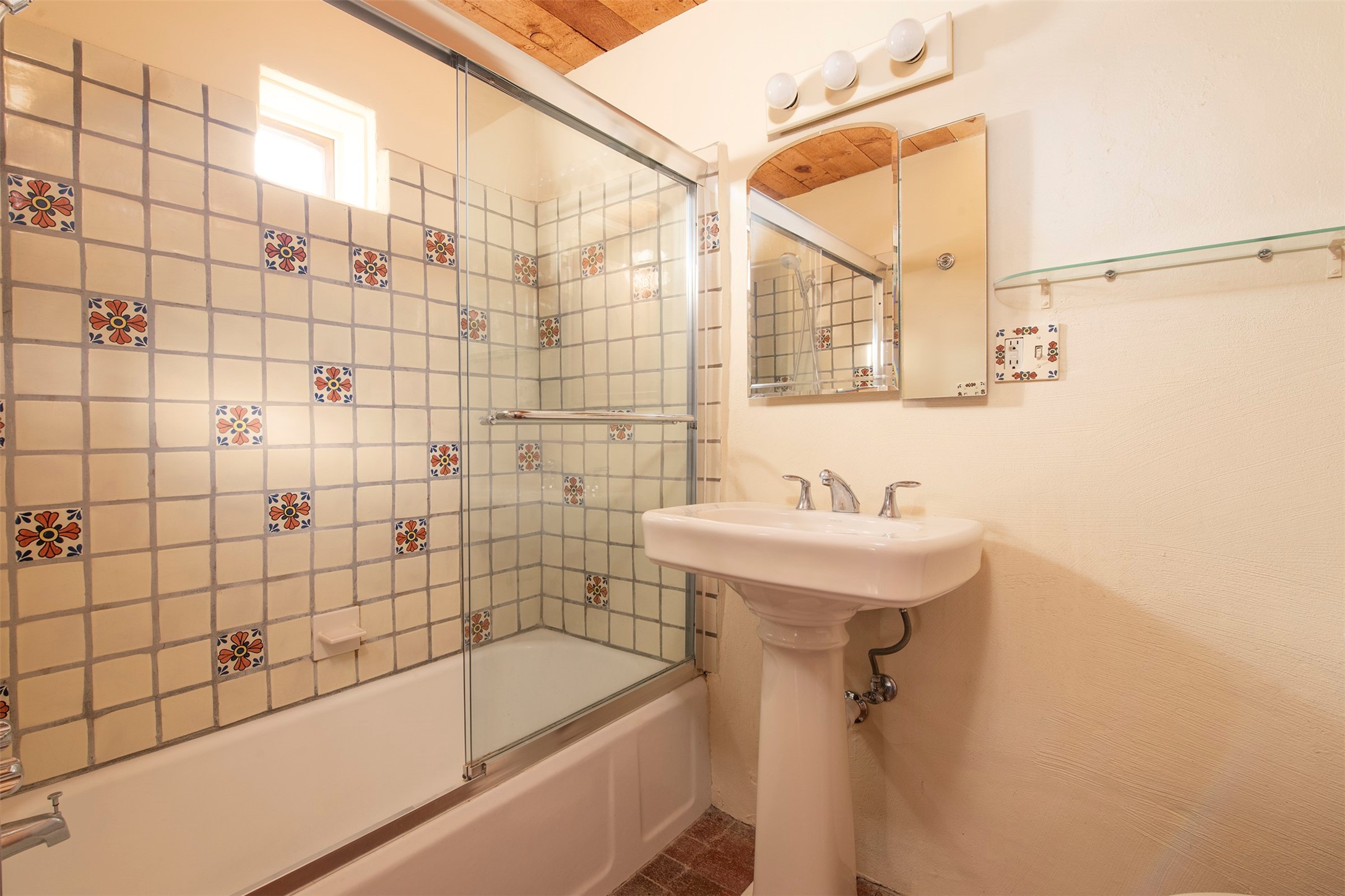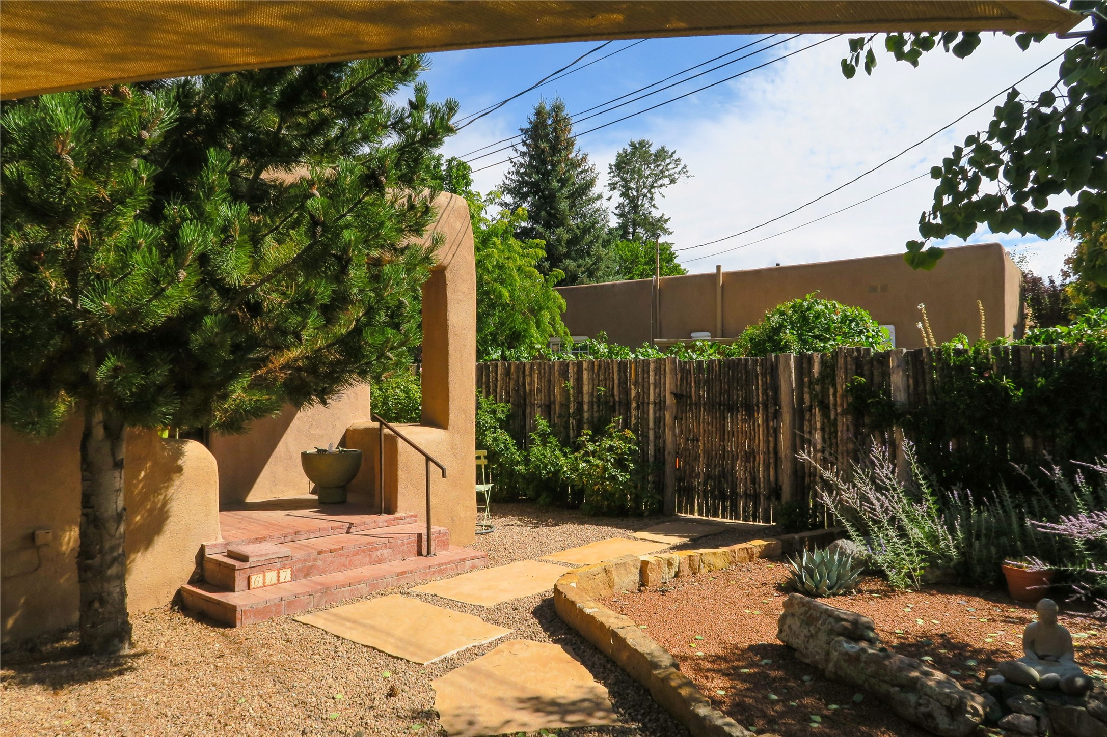 Discover your own private sanctuary in the heart of the Westside Guadalupe Historic District. Tucked behind 6-foot, Virginia creeper-covered coyote fencing, this Pueblo-style condo is a rare historic gem. Step through the stone-walled entrance into a serene garden paradise filled with Aspens, Roses, and Russian Sage, perfectly set for alfresco dining. Inside, the home radiates Southwest warmth with authentic brick floors, rough-cut pine ceilings, and traditional vigas. The light-filled living area features a classic Kiva fireplace accented with Mexican tile and a bright skylight. A thoughtful floor plan includes a cozy bedroom with a wall-to-wall closet and a versatile den/workspace set within thick, traditional adobe walls. With modern upgrades, including new appliances that are all less than a year old. The location is spectacular, just a short stroll to the Santa Fe Plaza, galleries, dining, and the Railyard. This is the ultimate cozy home or perfect little "lock-and-leave" retreat.......Low COA fees were $175 last year......*New Appliances Include LG washer/dryer, Rheem tankless water heater, GE fridge, Cosmo gas range with oven, Broan kitchen hood, Moen garbage disposal, CuZn under sink water filter, Kohler kitchen faucet, Toshiba microwave, Carrier performance series mini-split AC and heating system, Pottery Barn light fixtures in bedroom and the den. Please take our virtual tour.