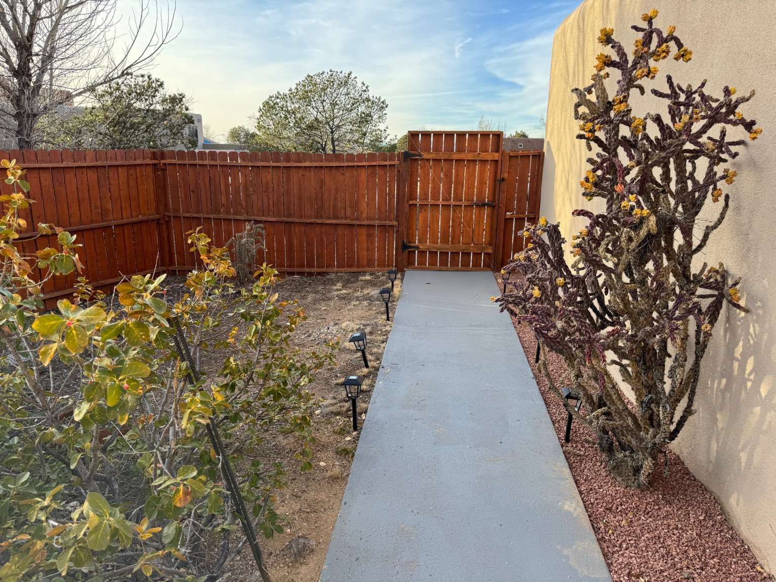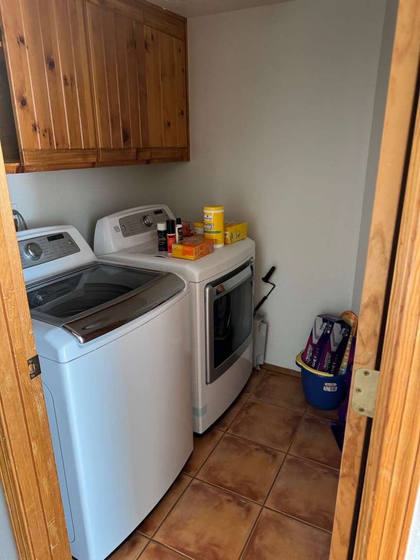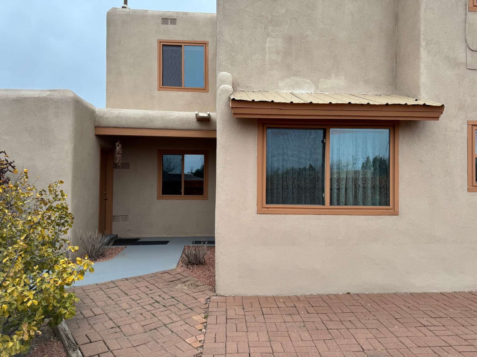 Welcome home to this beautifully maintained 2-bedroom, 2-bath Pueblo-style residence offering 1,653 SF of light-filled living space on a generous fully fenced 8,276 SF lot. The home features a 2-story living room with corner wood-burning kiva fireplace and an open loft, creating an airy architectural focal point. The private upstairs owner's suite includes a large bedroom, full bath and adjacent space for a sitting area, office, atelier or game room. The spacious first floor bedroom with its own full bath is perfect for guests or flexible living. In addition to the living room, the main level also includes a kitchen (with glass-top range, fridge and dishwasher), breakfast room and laundry room with washer & dryer. Step outside to the fully fenced yard with a wrap-around brick patio, ideal for relaxing, entertaining, or enjoying Santa Fe's outdoor lifestyle. An attached 2-car garage adds everyday convenience.