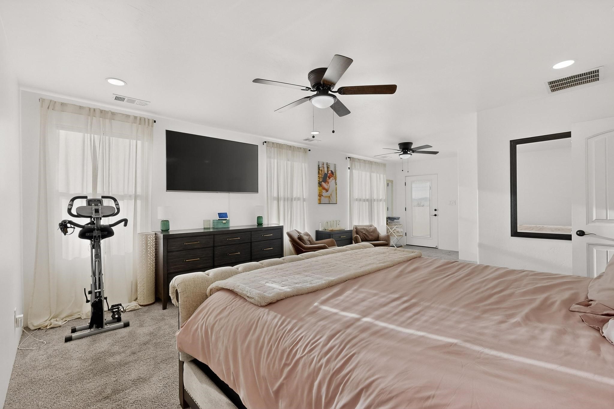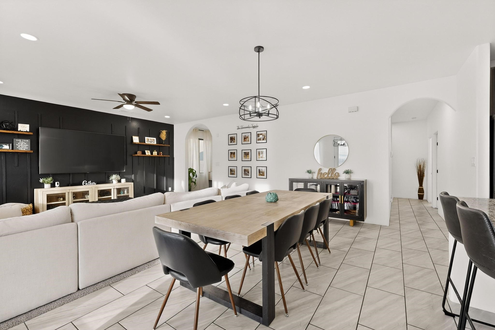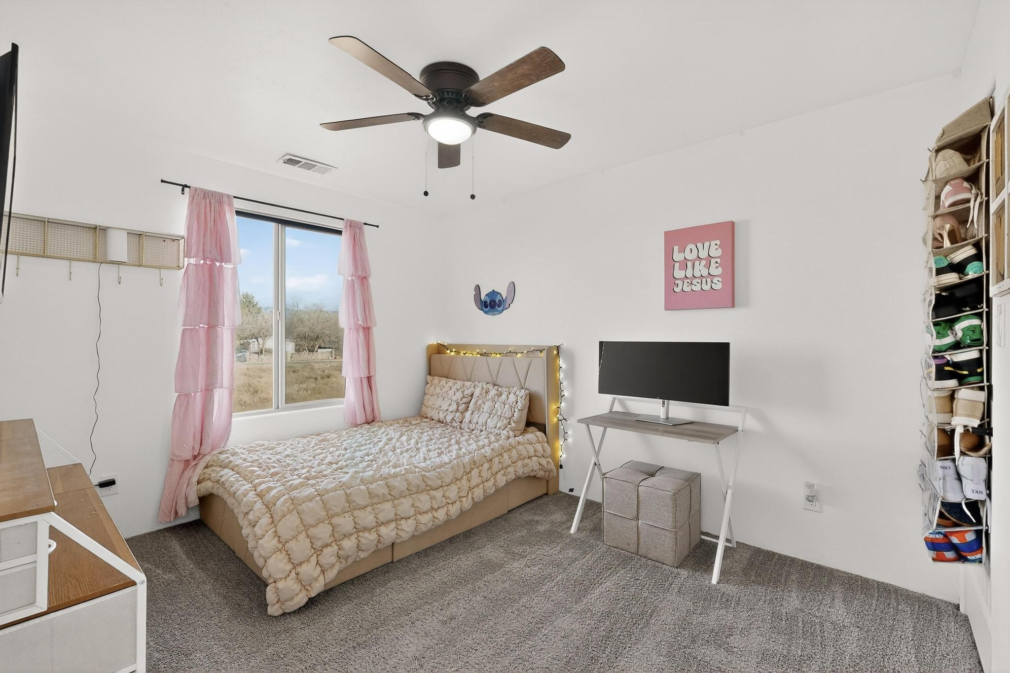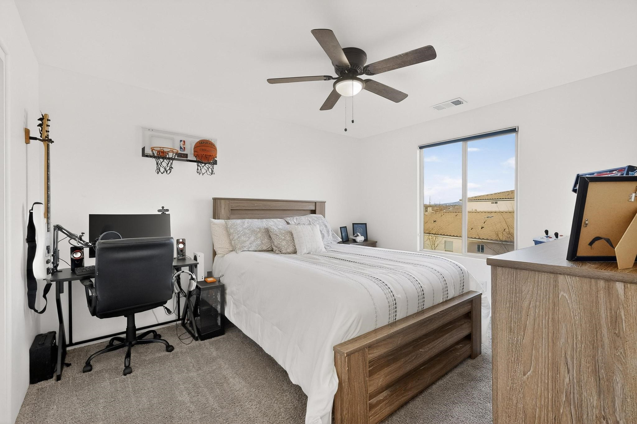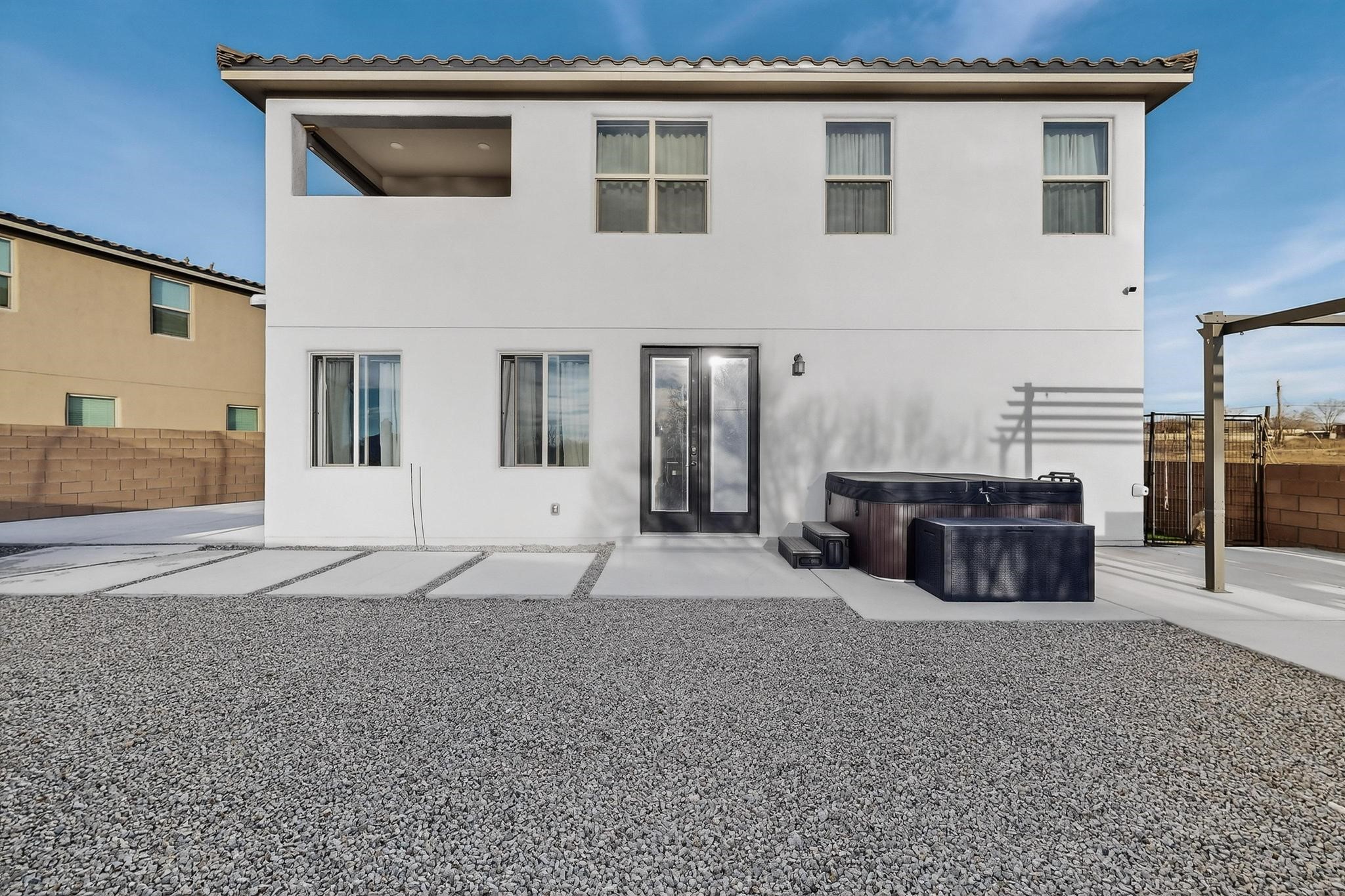 Welcome to 3930 Jaxson Lane, a beautifully appointed turnkey home perfectly positioned on a desirable corner lot in Santa Fe. Just minutes from Hwy 599 and Santa Fe Place Mall--with easy access to Target, Starbucks, and Albertsons--this property offers the ideal blend of comfort, convenience, and modern living.Featuring 5 spacious bedrooms Plus Bonus Flex Room and 3 full bathrooms, this home provides exceptional flexibility for families, professionals, guests, or home office needs. The thoughtfully designed layout includes an inviting open loft, perfect for movie nights, a play area, or a relaxing retreat.The heart of the home is the gourmet chef's kitchen, equipped with three ovens, a sleek dark stainless steel refrigerator and microwave, and high-end finishes--making holiday gatherings and entertaining effortless. Energy-efficient appliances and HVAC add to the home's smart, modern appeal.Elegant bronze finishes and striking double doors at both the front and back flood the home with natural light and create a warm, welcoming atmosphere throughout. Two bathrooms feature beautiful tiled walls, offering a spa-like experience for everyday living.Step outside to enjoy a large backyard ideal for entertaining or quiet evenings, complete with a private hot tub for ultimate relaxation. The private balcony off the primary bedroom is a peaceful retreat--perfect for morning coffee or unwinding at the end of the day.Additional highlights include a dedicated laundry space upstairs, a large driveway accommodating up to six vehicles, and a 3-car garage with EV charger providing ample space for parking, storage, and hobbies.With a convenient 45-minute commute to both Los Alamos and Albuquerque, this home delivers the charm of Santa Fe living with excellent regional access.Filled with warmth, comfort, and thoughtful upgrades, 3930 Jaxson Lane is a home designed to be lived in and loved. Don't miss the opportunity to make this exceptional property your own.