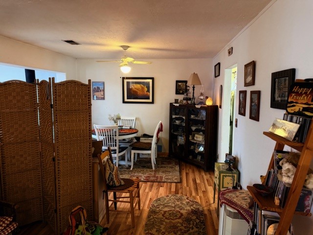 Enjoy the joys of small-town life in this charmer! Situated east of the center of Pecos and the Pecos River in East Pecos, there are mountain views from the property, and the surrounding properties have beautiful rock formations. Two bedroom, one bath, large living room which is a later addition to the main house. The main house has a second living area with dining area. The country chicken sink is the focal point of the kitchen. The older/smaller living area could potentially be turned into a third bedroom. New laminate flooring in the whole house, new toilet, and new hot water in 2022-23. Partially enclosed front porch. A large building in the back is divided into two spaces, a studio on one side and storage on the other. It has electricity, and heating on the right (larger) side. The property is completely fenced, with an apple tree, apricot tree, and grape vines.