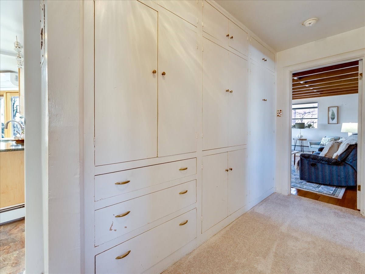 This charming Western Area home offers convenient access to bus stops, downtown, and the high school. While it retains the classic charm of Western Area homes, it has been thoughtfully updated to meet modern living needs. The original floor plan featured three bedrooms and one bathroom, but it has been reconfigured to create two spacious bedrooms, including a generous primary suite with a luxurious, updated bathroom. This area has new carpeting. In 2012, the kitchen underwent a major remodel and is truly a chef's delight, featuring an island with an induction cooktop, double ovens, and cabinetry equipped with pull-out organization drawers. Two built-in pantries provide exceptional storage, while two large skylights fill the space with natural light. The kitchen also offers direct access to the beautiful backyard, making it ideal for both everyday living and entertaining. The Zia Addition on the south side of the home added two additional bedrooms and a bathroom, providing flexible space for guests, family, or a home office. The backyard backs to Sullivan Field, allowing you to enjoy Friday Night Lights football, soccer games, or band performances from the comfort of your own yard. This will be great for entertaining friends and family. The landscaping has been professionally maintained by Los Alamos Landscaping for several years. The home features multiple LG mini-split units providing both air conditioning and heat with independent temperature controls for each room. The oversized garage includes an outlet for electric vehicle charging and features a full wall of storage cabinets for excellent organization. A French drain in the driveway outside the garage captures runoff from snow and rain, adding both function and peace of mind. This well-maintained home combines location, charm, and modern upgrades in a truly special setting. Schedule a private showing today!