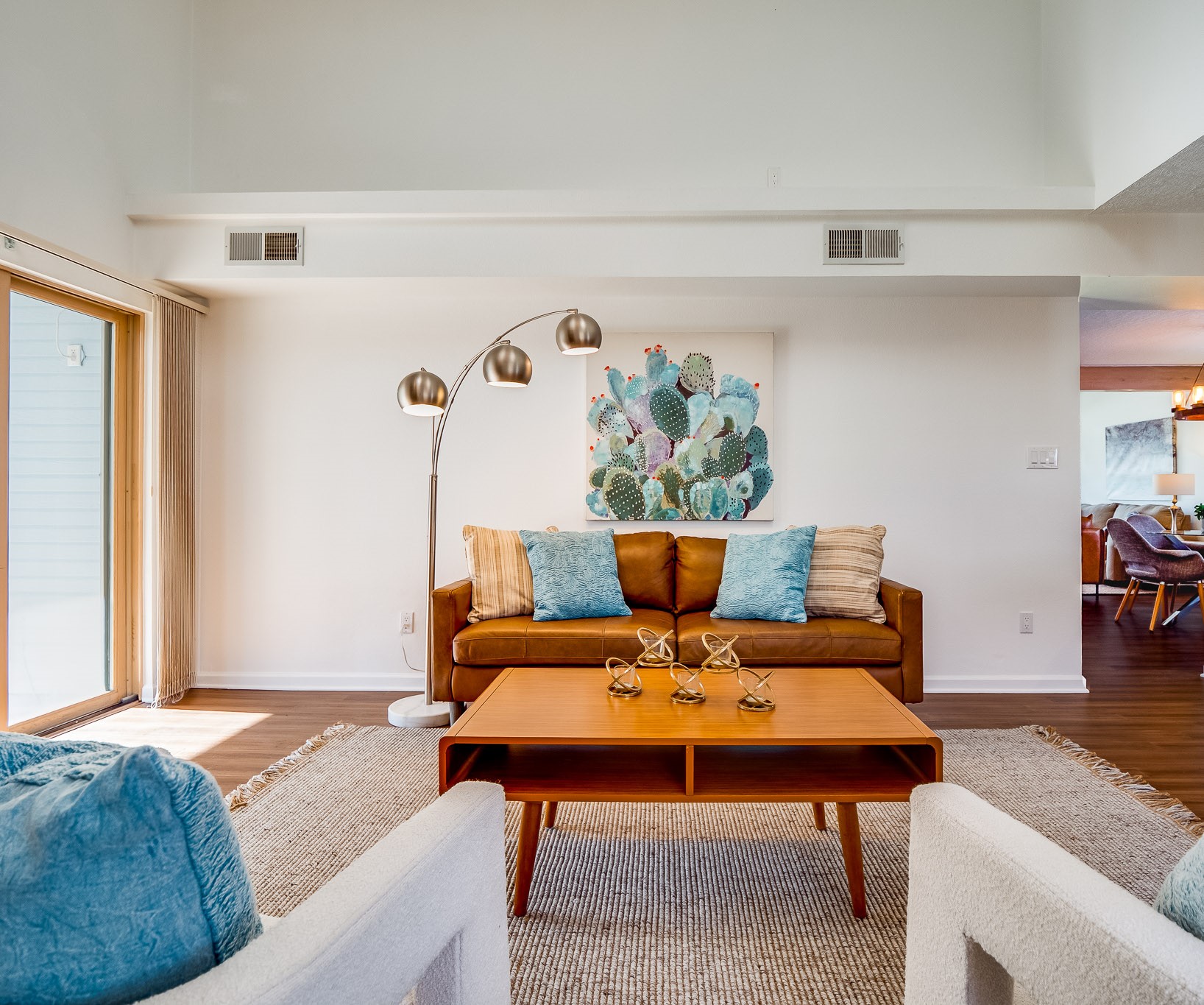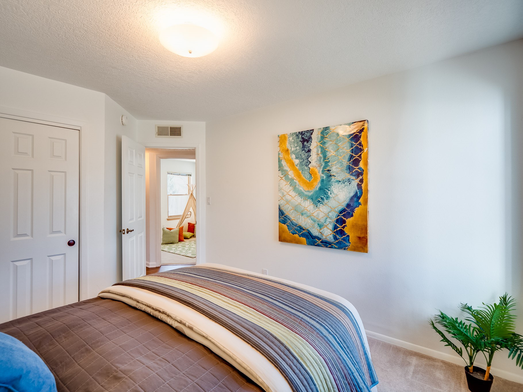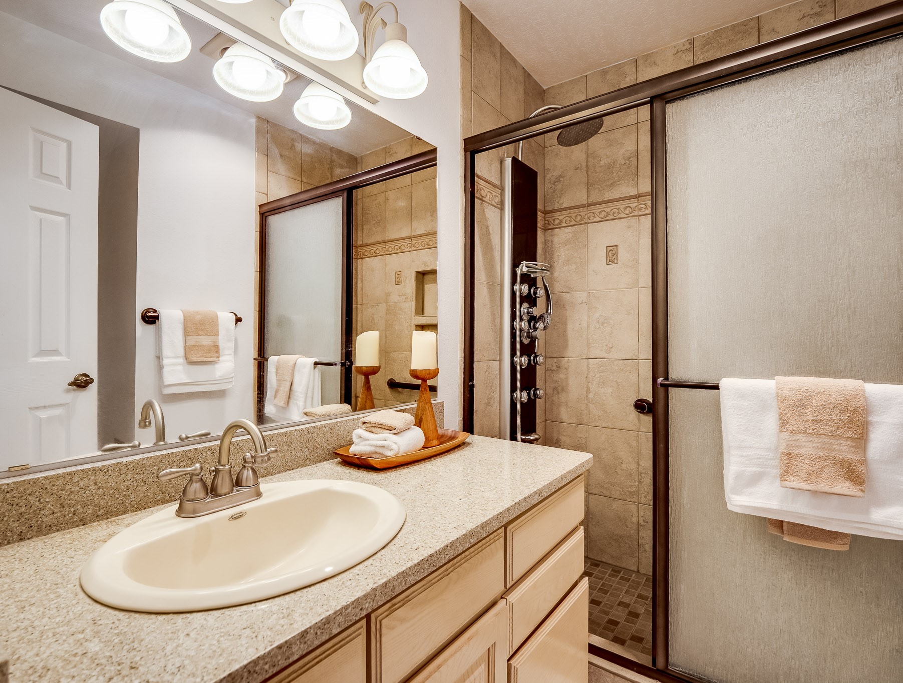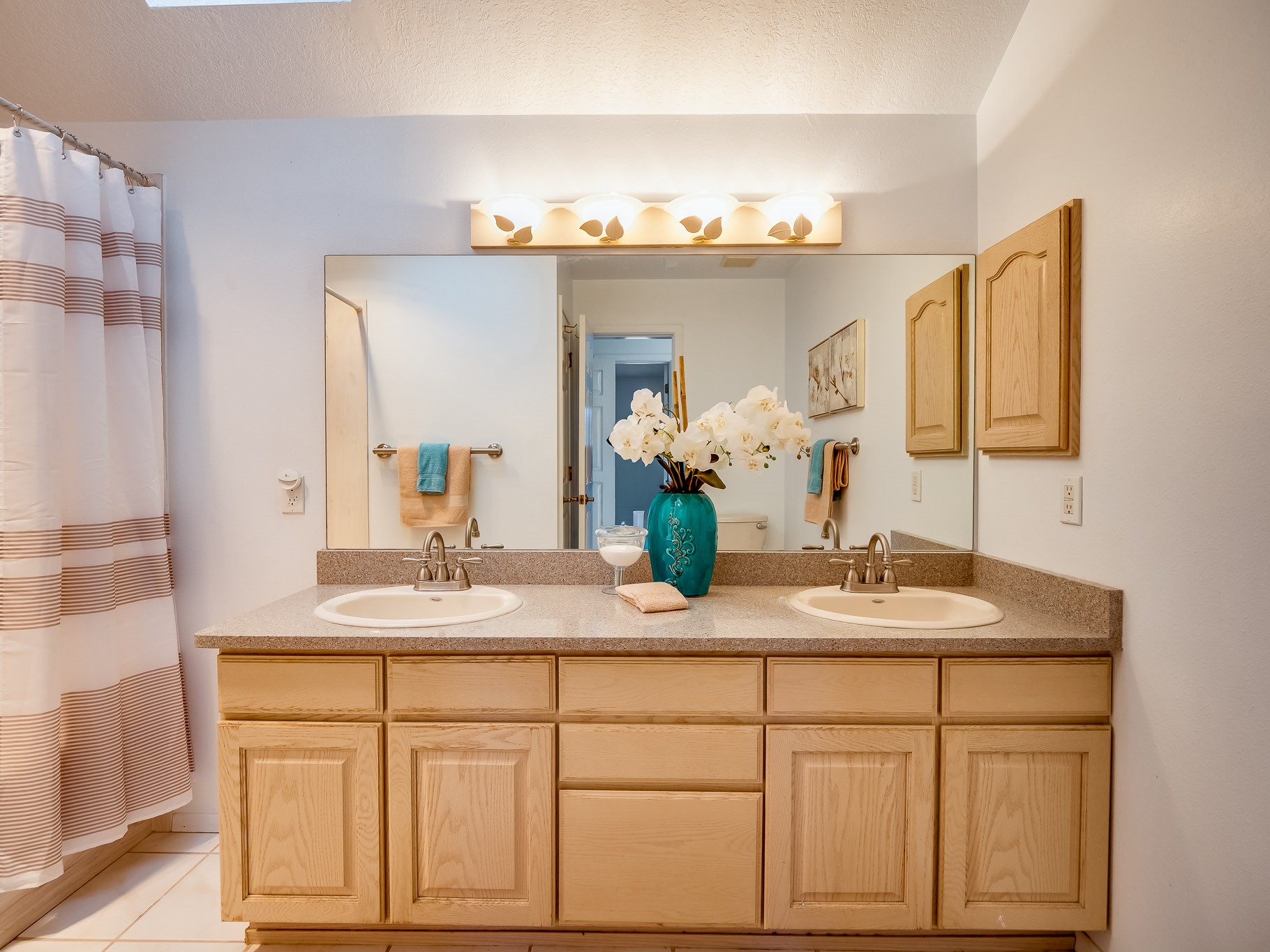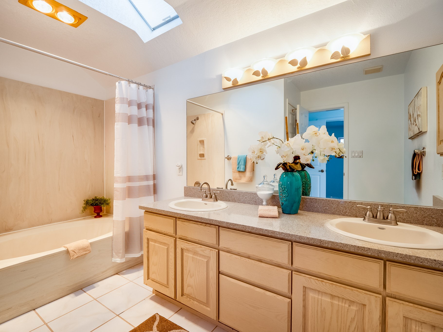Situated on a desirable corner lot in North Mesa, this beautiful two-story home offers exceptional curb appeal with a large grassy front yard and mature trees lining the welcoming front entrance, providing shade as well as privacy. Step inside the foyer and descend a few steps into the bright, open living room, where rich engineered wood floors extend throughout the main living spaces. Vaulted ceilings enhance the sense of space and light, creating an inviting atmosphere ideal for both everyday living and entertaining. The living room flows seamlessly into the dining area, thoughtfully divided from the kitchen by open glass shelving that adds architectural interest while maintaining an open-concept feel. The kitchen has light colored cabinetry and abundant quartz counter space, including a peninsula island with bar seating. Stainless steel refrigerator and a gas oven/range, and there is convenient access to the oversized two-car garage. Adjacent to the kitchen, the family room features vaulted ceilings and a dramatic floor to ceiling stone wood burning fireplace, serving as a warm and striking focal point. From here, step outside to the covered deck overlooking the fully fenced backyard with mature trees, and ample space for gardening and outdoor dining. The main level also includes three nicely sized carpeted guest bedrooms, a guest bathroom with a walk-in tiled shower featuring a luxurious shower panel and single-sink vanity, along with a dedicated laundry room and additional storage closet. Upstairs, the home is fully carpeted and features a cozy loft perfect for relaxing or reading, as well as a versatile bonus room that could serve as a hobby space, office, or additional bedroom. Spacious primary en-suite bedroom with a large walk-in closet and a spa-like bathroom complete with a double-sink vanity, tile flooring, and a deep soaking tub. Located near parks, horse stables and trails, book your tour of this move-in ready home and experience what it has to offer!