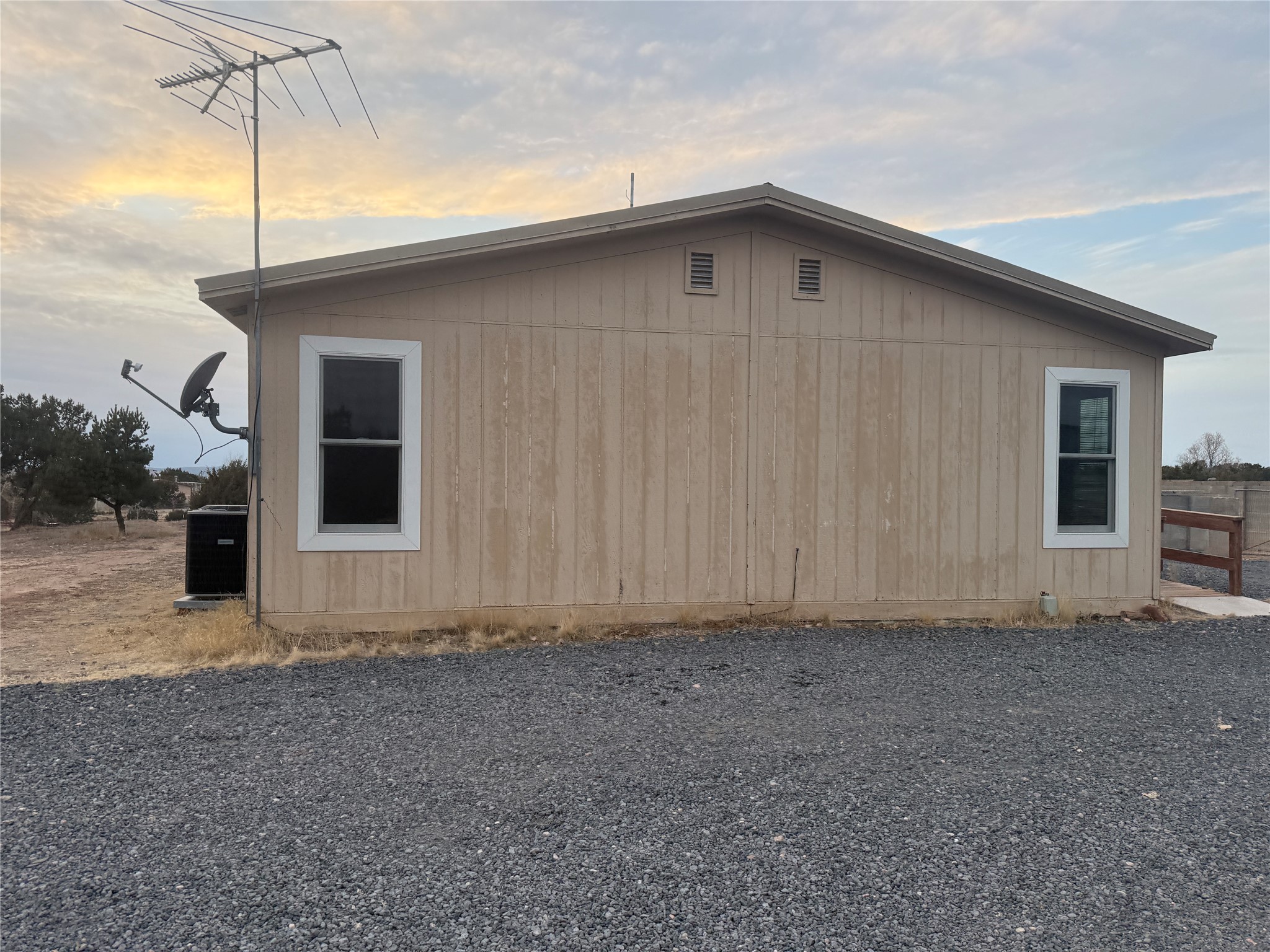Peaceful private home in a rural setting with easy access to amenities and downtown Santa Fe. Enclosed front yard, metal roofing, newer windows, furnace and refrigerated ac. Theis in need of updating and there is deferred maintenance. Seller has priced it accordingly and does not intend to make repairs or concessions due to the property condition. Large lot is fully fenced for your privacy and enjoyment.