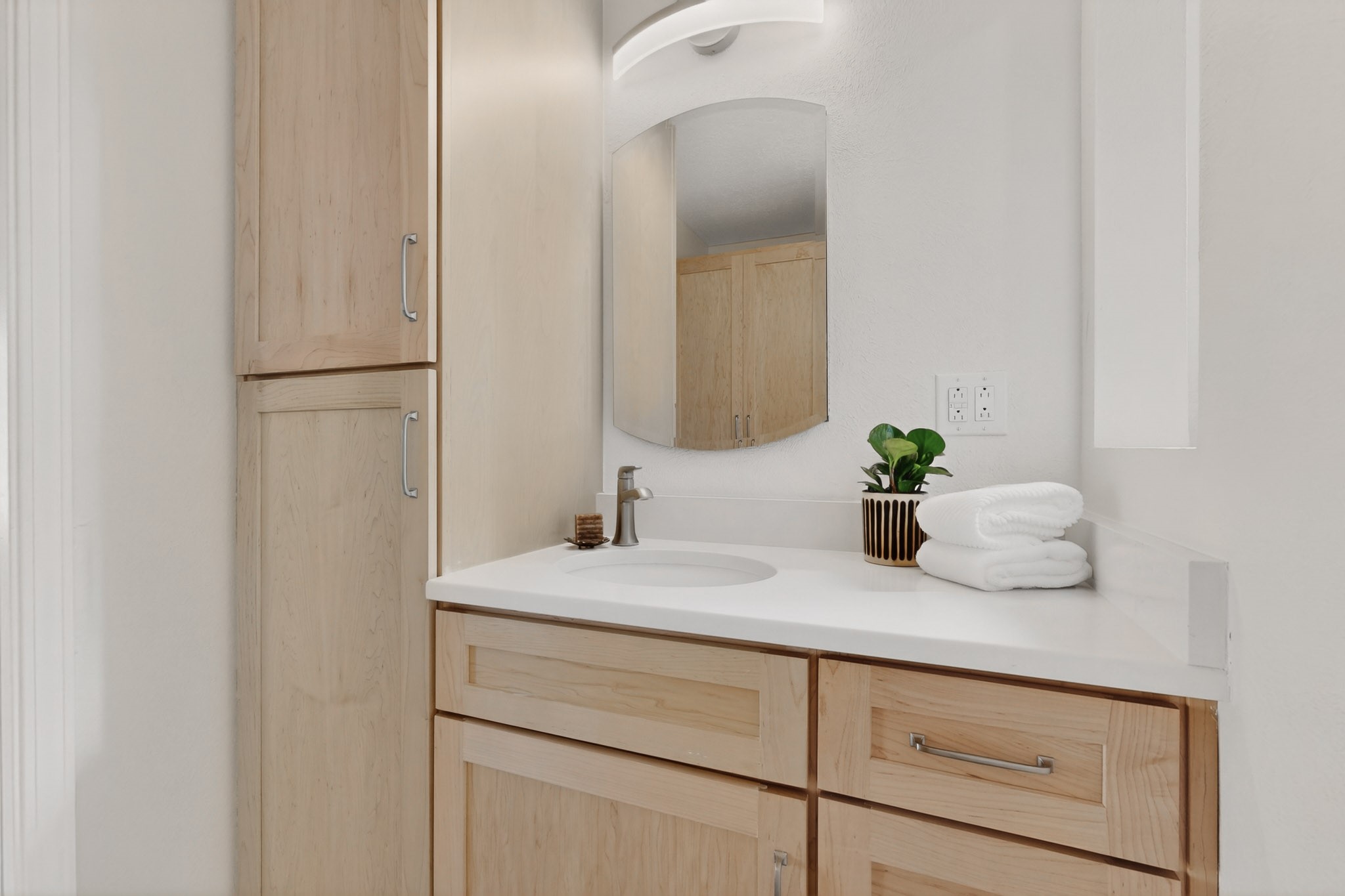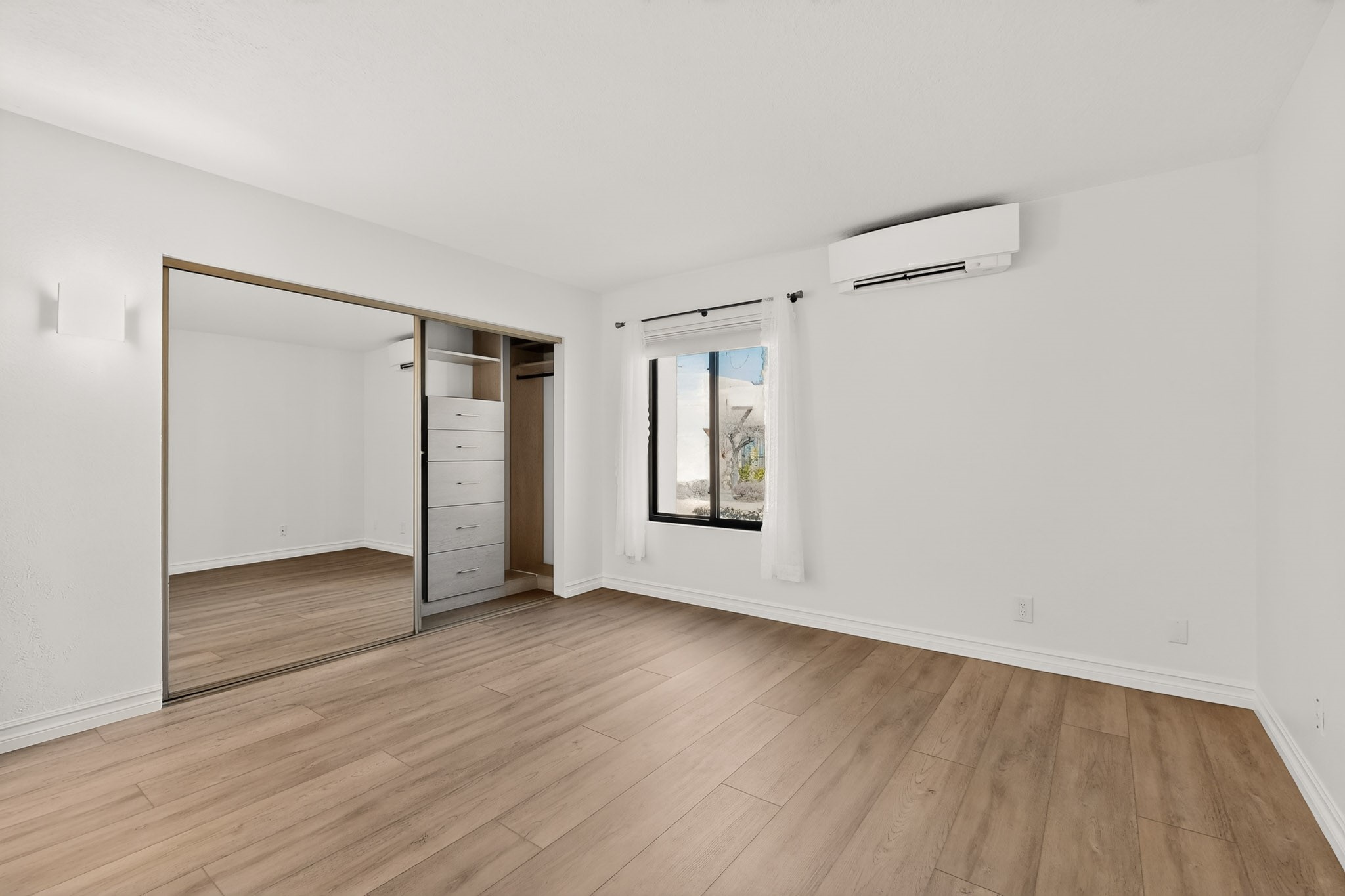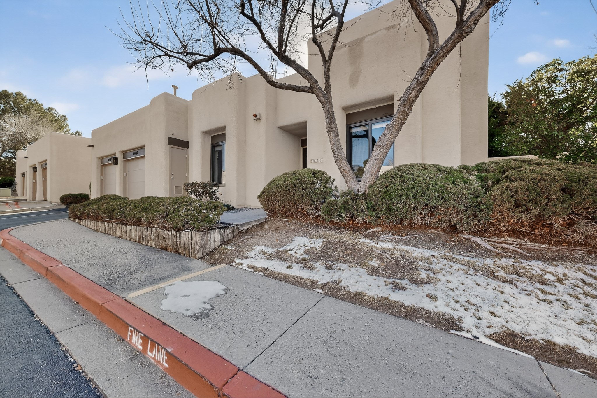 Nestled in Albuquerque's sought-after Far Northeast Heights, 6448 Monte Serrano NE is a beautifully updated Pueblo-styletownhome in the quiet El Paseo community. This move-in-ready residence seamlessly blends contemporary style with classic New Mexican charm.Step inside to discover a refreshed interior with designer-inspired finishes and updated flooring throughout. The spaciousliving area features a custom wood-burning fireplace, perfect for cozy evenings. The modernized kitchen offers sleek cabinetry, updated appliances, a breakfast bar, and a sunny dining nook. The primary bedroom and contemporary bathroom showcase updated fixtures and sophisticated finishes. Refrigerated air and a one-car attached garage add convenience and comfort.Outside, a private walled courtyard provides a low-maintenance sanctuary for outdoor dining and relaxation. El Paseo community amenities include a pool, clubhouse, and beautifully landscaped common areas.Ideally located with easy highway access and stunning Sandia Mountain views nearby, this home is minutes from Academy Hills Park and the Northeast Heights' premier shopping and dining destinations. A rare find for those seeking stylish, low-maintenance living in a prime location.