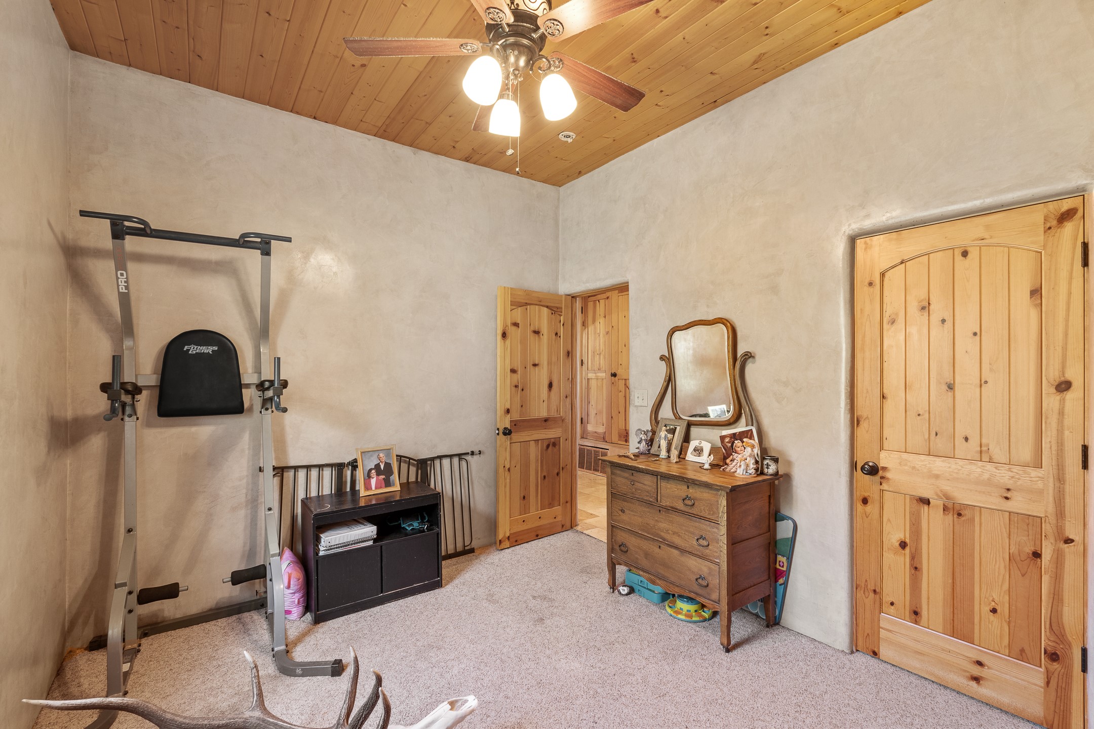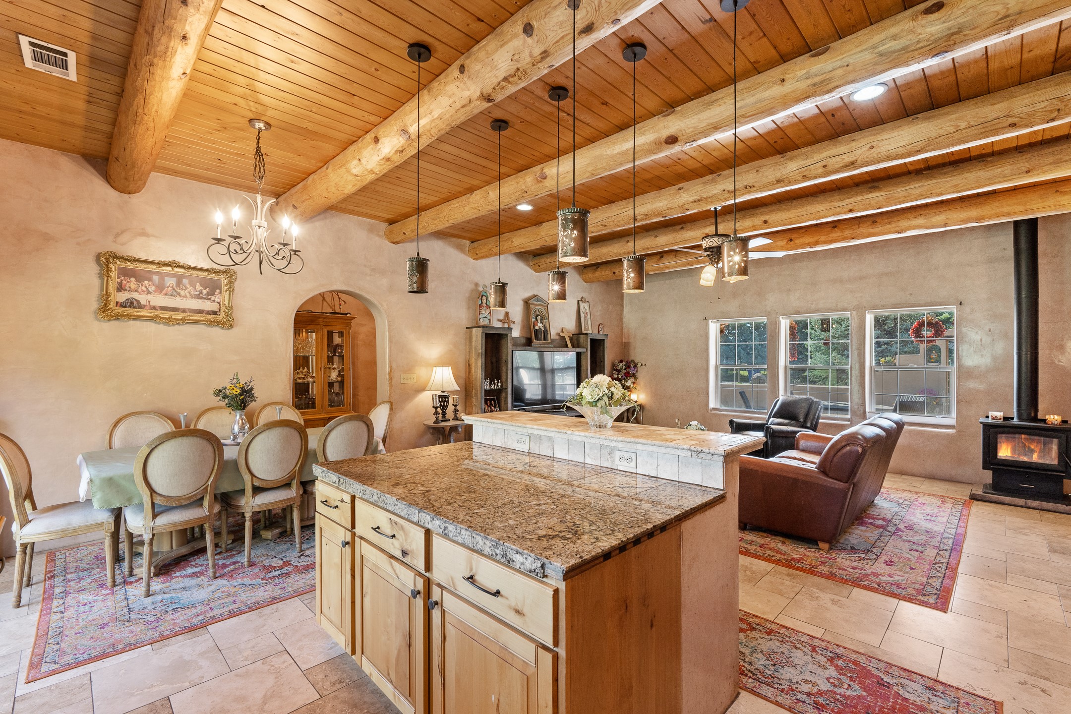 Charming Adobe Retreat with Guest House, Vineyard, Orchard & Lush Gardens! Completely rebuilt in 2009, this stunning adobe and frame construction home blends traditional Southwestern charm with modern luxury. Featuring 3 bedrooms and 2 bathrooms in the main home, these homes sit on a beautiful lot bursting with fruit trees--including chokecherry, plum, apple, and peach--as well as vibrant gardens with mature trees and your very own vineyard! Inside, you'll find diamond plaster walls, custom cabinets, granite countertops with a coordinating backsplash, and travertine tile floors. Thoughtful details like nichos, hand-carved woodwork, vigas with tongue-and-groove ceilings, and excellent bedroom separation create a warm, refined ambiance throughout. The detached guest house is light-filled and inviting, with wood floors, T&G ceilings, a wood stove, custom cabinetry, and intricate hand-carved accents. The guest house is perfect for visitors, rental income, or a creative studio space. Enjoy spacious front and side patios, ideal for entertaining or relaxing under the stars, plus a fabulous hot tub for year-round enjoyment. A rare opportunity to own a uniquely artistic and serene property--this home is a true oasis. Conveniently located in Espanola with a short 30 minute drive to LANL.