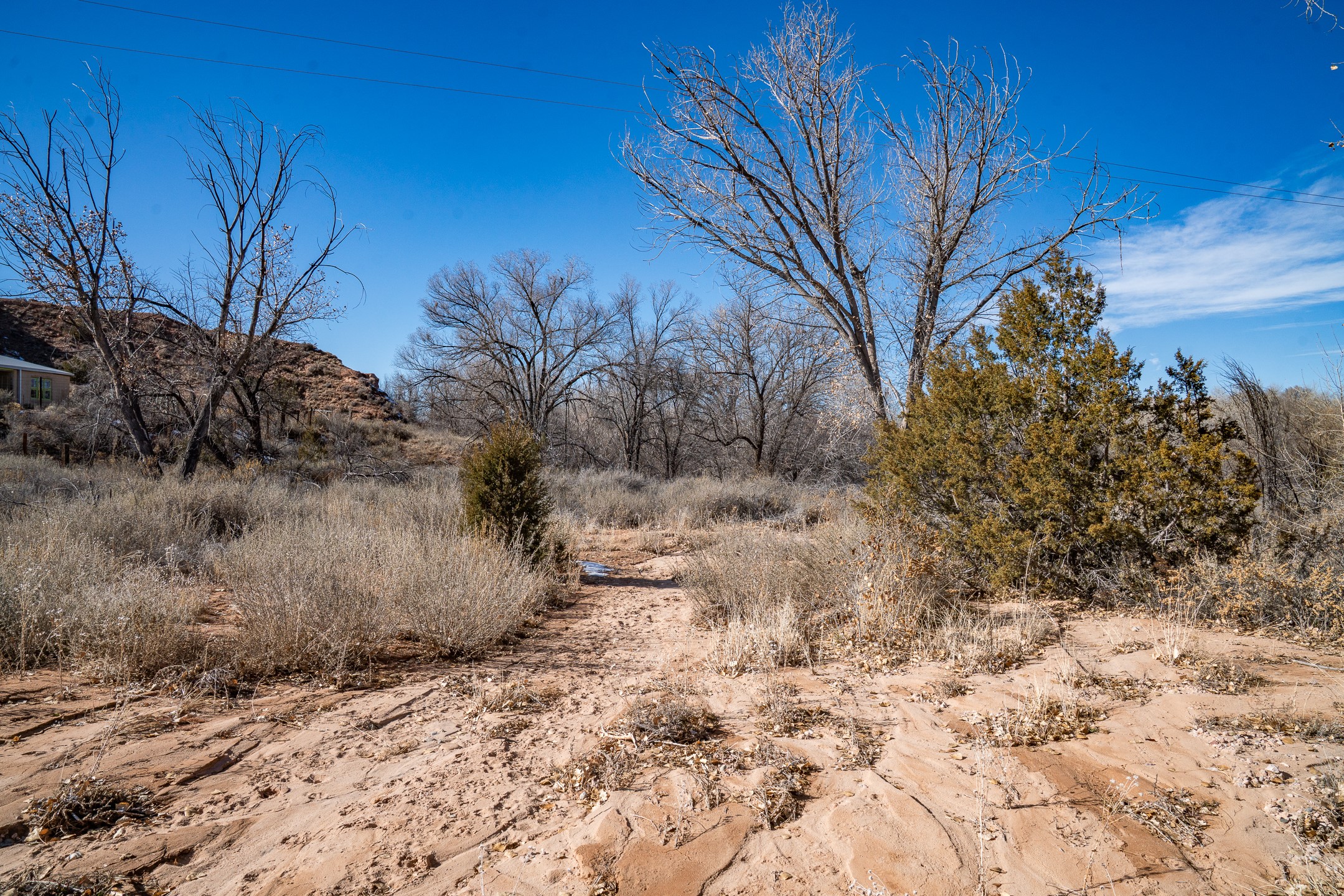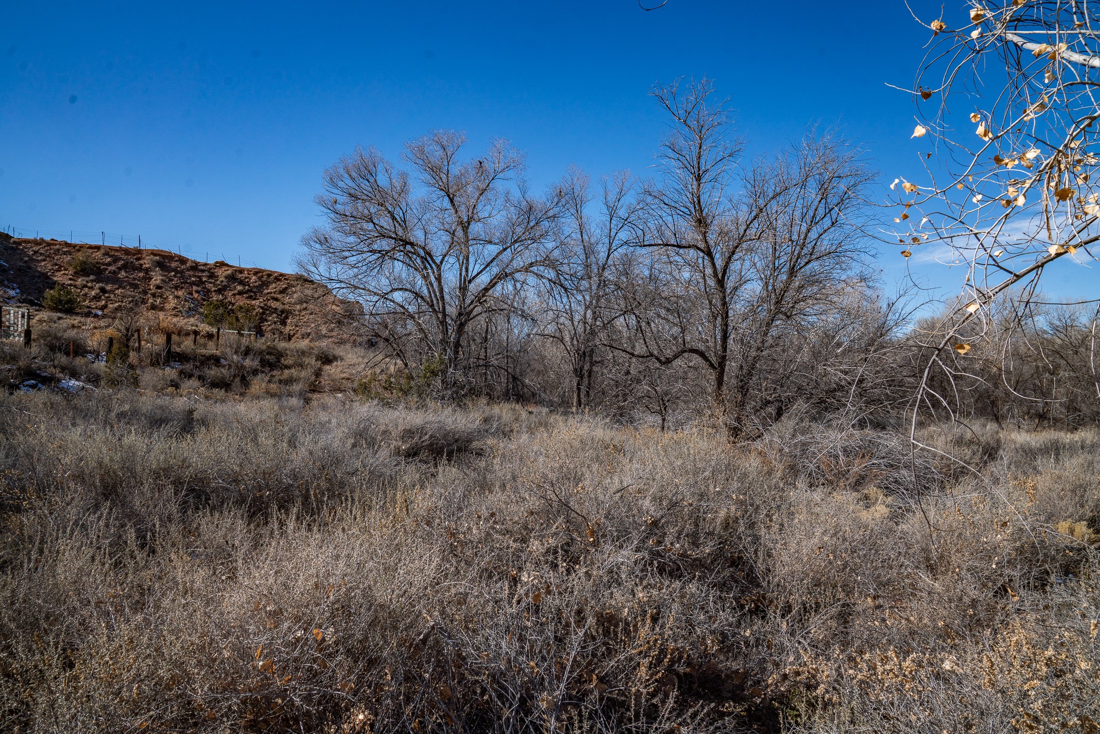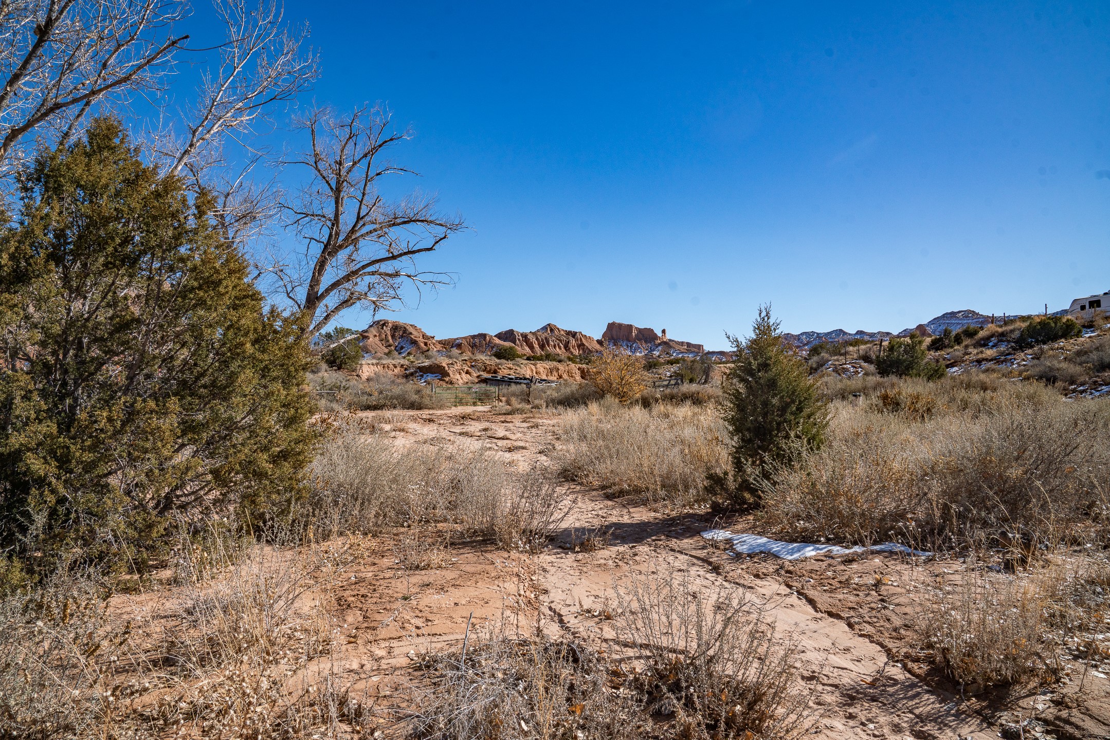 Capture a piece of gorgeous Chimayo land on .95 lush acreage!! Flat land with easy building sites provides for house, guest house and storage buildings! Trees and birds abound! Access to BLM land is available as well. There is a shared well on the property and a gate already provided for access into the property. Water rights also will transfer!! Owner may finance with 20% down at 5% interest, balloon in 5 yrs.