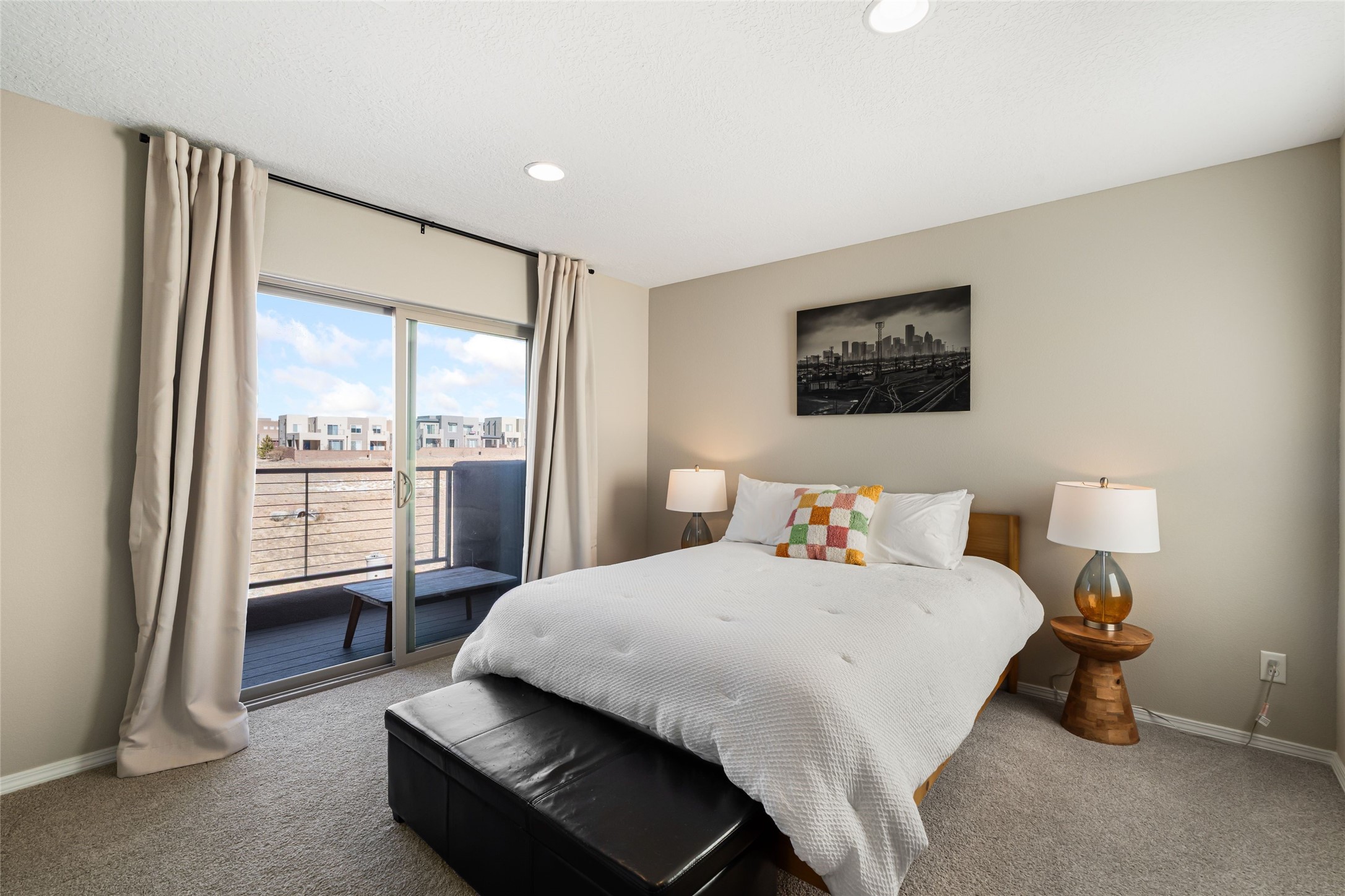 Convenient Las Soleras 2022 built 3-bedroom, 2.5 bath townhouse with tall ceilings and plentiful natural light. Open concept downstairs with easy flow for daily living and entertaining. The modern kitchen is appointed with island/breakfast bar and stainless steel appliances. The main floor primary suite features an ensuite bath with walk-in shower, walk-in closet and direct access to an outdoor patio--perfect for morning coffee or evening relaxation. The laundry room is located downstairs as well. Upstairs, you'll find a generous second living area, offering flex space for a media room or studio. Adjacent to this living area is a versatile loft office space providing an ideal setup for remote work or study. The other two guest rooms are located upstairs with a shared full bathroom. Two car garage. Bonus highlight is a paved trail right outside your door. Excellent location close to Presbyterian Santa Fe Medical Center with easy access to all the shopping and dining on NM 14-Cerrillos Rd. and the Santa Fe Plaza.