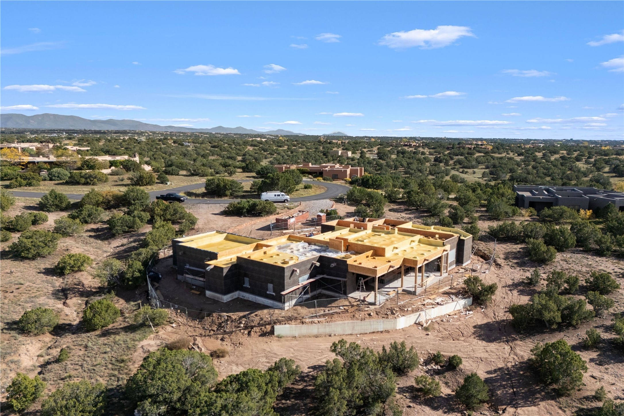 Desirable Las Campanas 3-bedroom 3.5 bath, 4185 sq. ft. home, with expansive sunset views. Sited on 2+ acres at the end of a cul-de-sac. Construction to be completed in 2025. Single level; no interior steps Upscale design features with plastered walls, wood floors, one fireplace, and custom doors and kitchen cabinets. Chef's kitchen appointed with center island, granite counter tops, and Subzero and Wolf appliances. 3-car attached garage. Quarterly HOA fees cover 24-hour security within the subdivision, EMT services, gated entrances, road and common area maintenance. Minutes to The Club at Las Campanas Clubhouse, (2) Jack Nicklaus Signature Golf Courses, Spa, Fitness and Tennis Center, and Equestrian Center, this unique view lot offers an extraordinary opportunity for the most discerning buyer to enjoy the ultimate Santa Fe luxury residence. Memberships available to the Club at Las Campanas upon approval and for a separate fee.