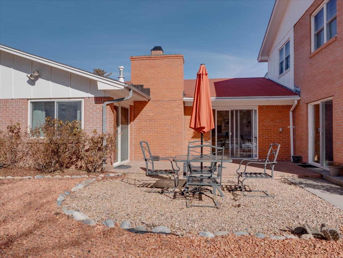 **Flexible living at its best.** Tucked into the heart of White Rock, this charming home blends classic character with thoughtful updates and flexible living spaces. A welcoming courtyard sets the tone as you arrive, leading into an interior that preserves its original appeal while adapting to modern life. Two distinct living areas provide comfort and versatility. The main family room features striking brick accent walls, a cozy fireplace, and a built-in bookshelf. The second living area flows naturally into the dining space, providing an open yet defined setting for hosting dinners, game nights, or everyday meals. The remodeled kitchen balances updated finishes with functionality. A generously sized laundry room works beautifully as a drop zone or mudroom with direct access from the garage. A central hallway leads to two spacious secondary bedrooms and a full bathroom. The primary bedroom offers its own en suite bath and connects to a large bonus room. This adaptable space could become a private sitting area, an expansive walk-in closet, or an opportunity to reimagine and enlarge the primary suite further. From the kitchen or the primary suite, step outside to a large backyard with a cobblestone patio ideal for outdoor dining and entertaining. Off the patio is a separate addition with its own exterior access, offering exceptional versatility. The main level includes a hot tub and three-quarter bath, while the upstairs space is well-suited for a private office, studio, homeschool room, or creative retreat. With heating and cooling provided by a mini split system and no need to pass through the main house, this space could easily function as a rental, guest suite, or private practice office. With its solid brick construction, flexible floor plan, and expansive yard, this adorable home offers comfort, character, and opportunity all in one inviting package. Floor plans and a virtual tour are provided for your convenience. Schedule your private showing today.