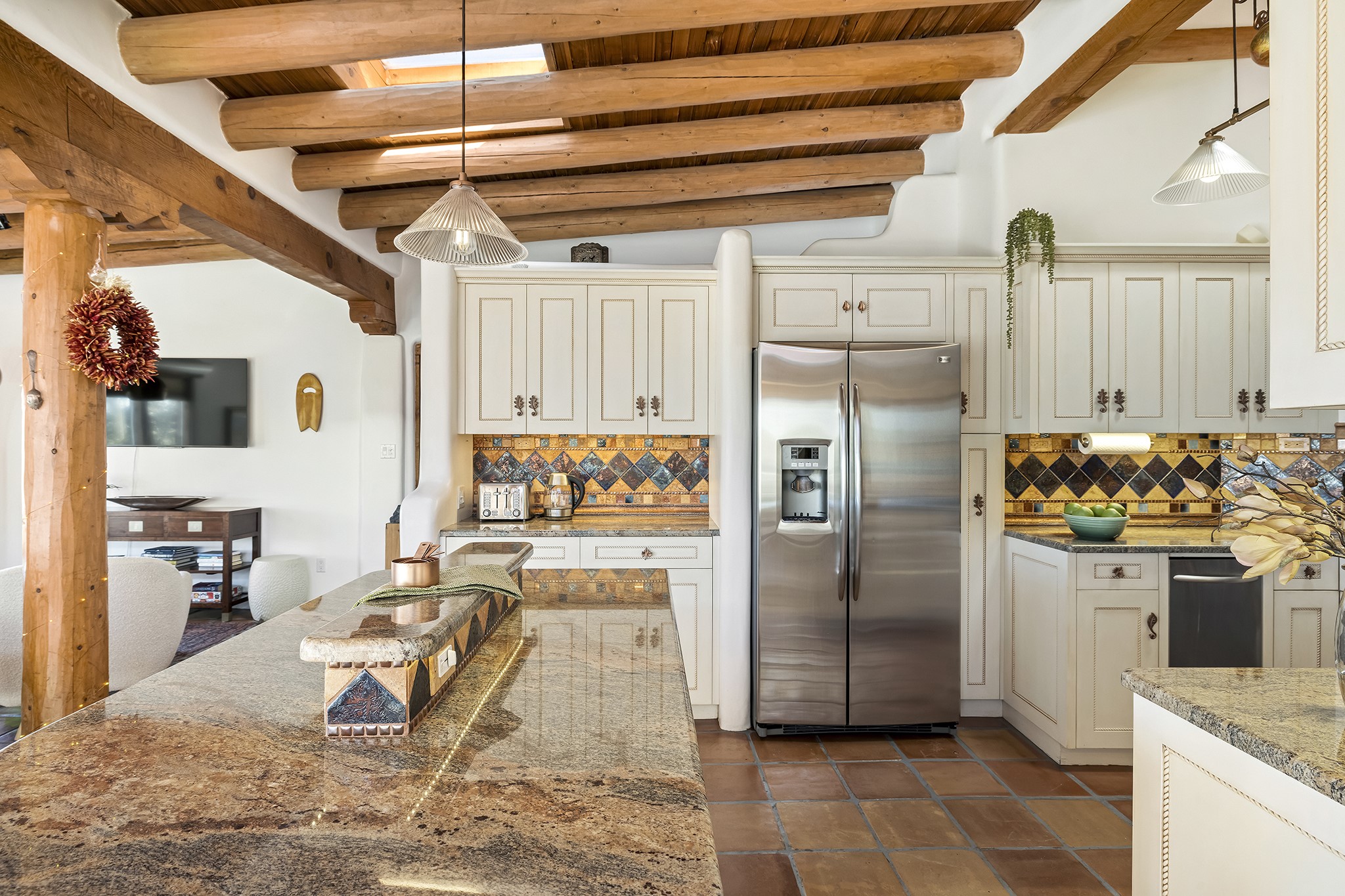 Just minutes from the Plaza, Canyon Road, and the Railyard District, this 3,896 sq. ft. home on 1.2 private acres offers rare versatility, timeless style, and a premier location. With two fully independent 2-bedroom, 2-bath residences under one roof, Casa Del Sur and Casa Del Norte, the property can be lived in as a spacious 4-bedroom home or used flexibly for multi-generational living, rental income, or creative live/work arrangements.Both interiors reflect the warmth and character of Southwestern design, featuring classic elements like vigas, Saltillo tile floors and exposed adobe and plaster walls. Each residence has its own living spaces, kitchens, and private entrances--offering separation without sacrificing charm.Privately sited and thoughtfully designed, the home also includes a 3-car garage, ample outdoor areas, and quiet surroundings--creating a sense of retreat within easy reach of Santa Fe's most iconic galleries, restaurants, and historic landmarks.Whether you're looking to live, share, or invest, this unique compound offers possibilities that are increasingly hard to find in Santa Fe.