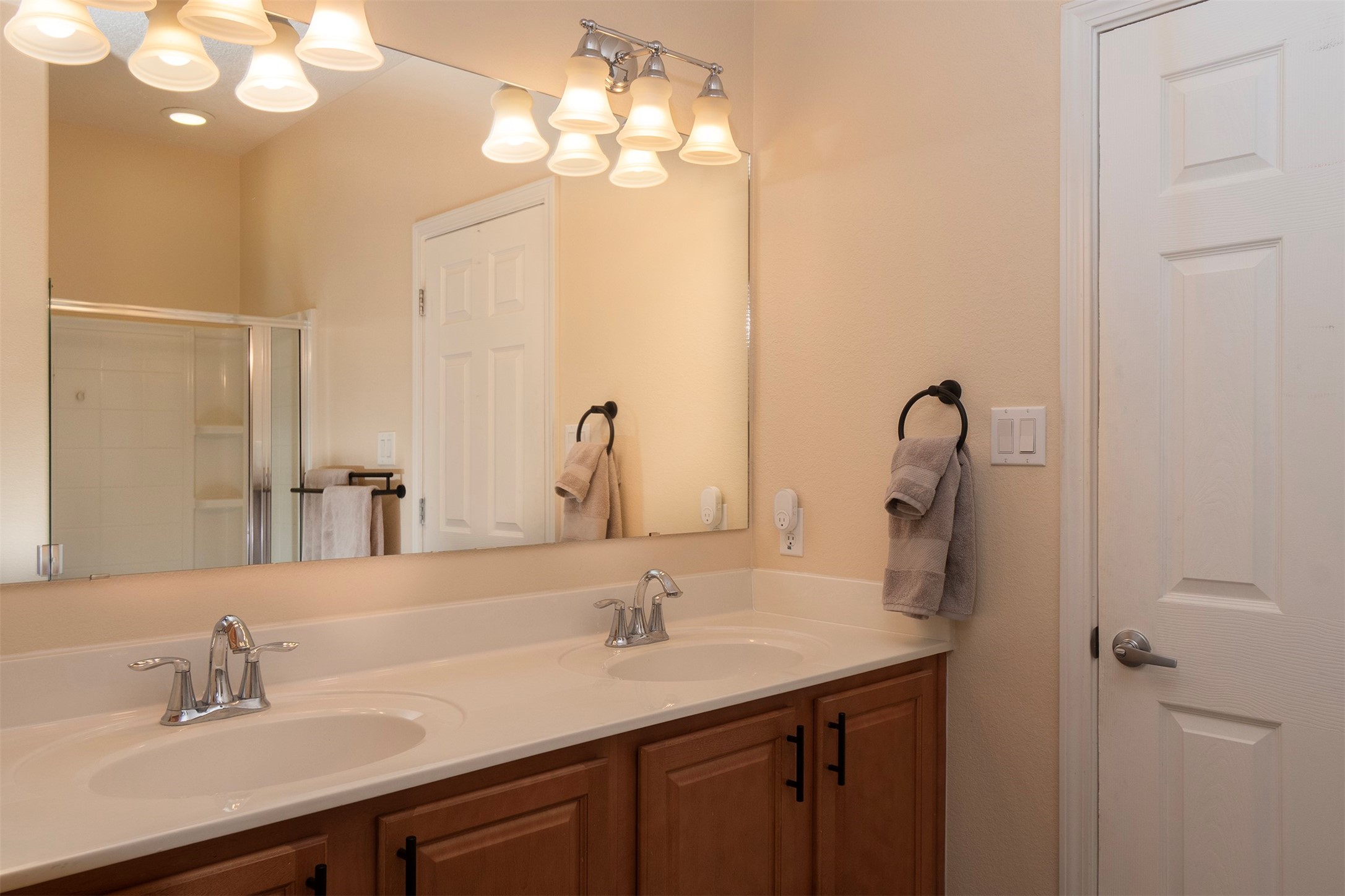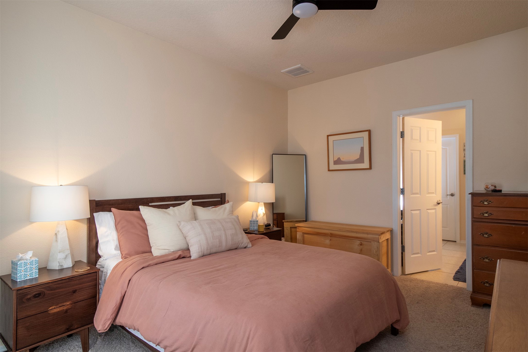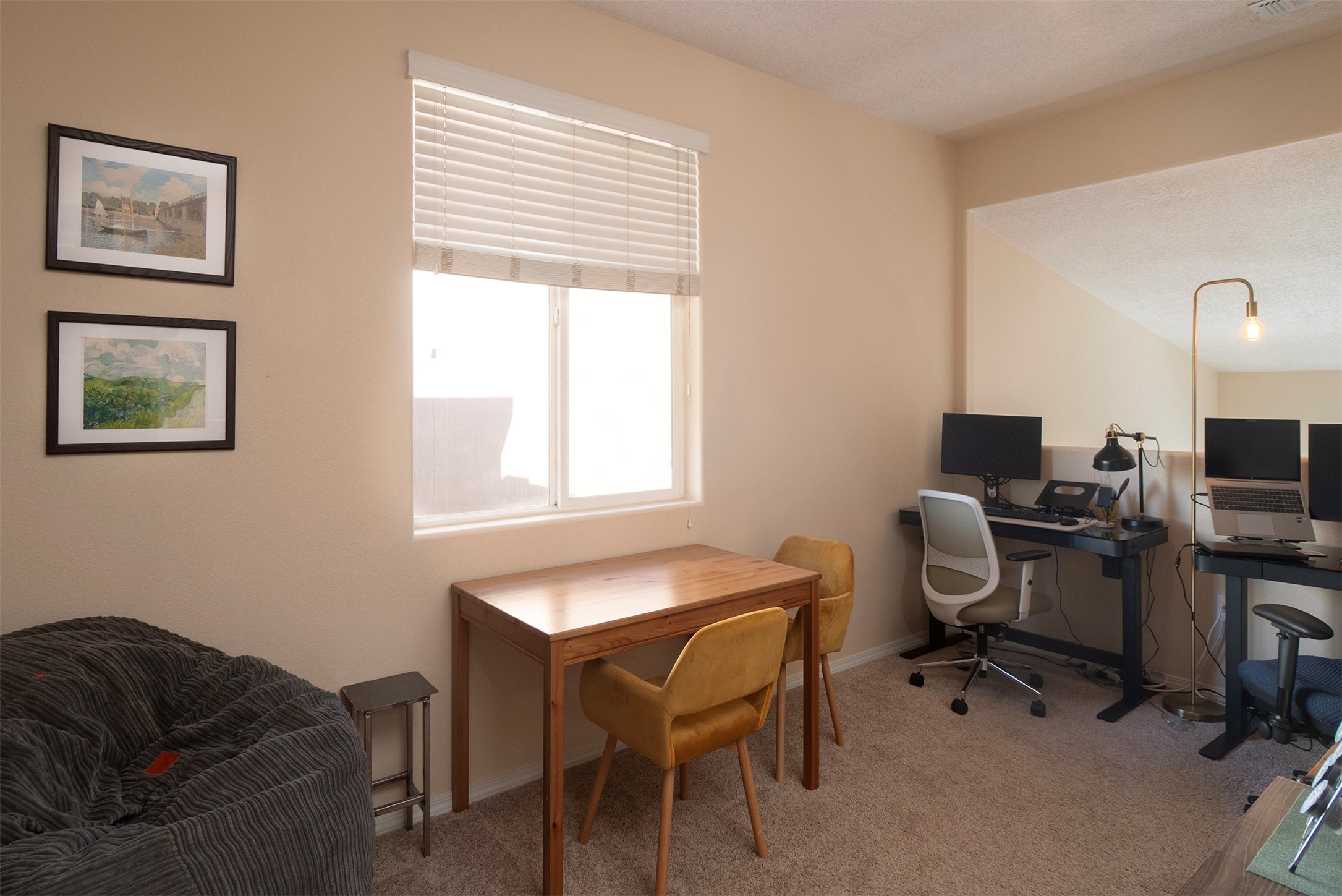 RANCHOS SANTOS MEDITERRANEAN MODERN. Modern Living in Ranchos Santos Condos of Santa Fe. This Spanish Mediterranean style 2 Bed, 2 Bath, 2 Car garage condo has a convenient and beautiful lifestyle with nearby conveniences to grocery stores, restaurants, and shopping centers. This move-in ready two floor plan features with 18' ceilings in the Living Room that give an elevated and airy feel to the whole space. Great kitchen with modern appliances, wood cabinetry, matte black hardware, solid countertops. Open floor-plan with a first floor Bedroom Suite with private, enclosed patio, en-suite bath with separate shower, soaking tub and walk-in-closet. Upstairs is a second bedroom, full bath, laundry room and a fantastic open loft. The large loft space is ideal for home office, flex and remote workers space, - ideal for office, yoga workout area, or second living area. The garage offers great space for storage. Features include refrigerated air conditioning, 2 car direct entry garage, solid surface kitchen countertops, upgraded cabinets, Dish Washer, and Range, microwave, tile flooring, ceiling fan. Built in 2009 by Centex Homes.