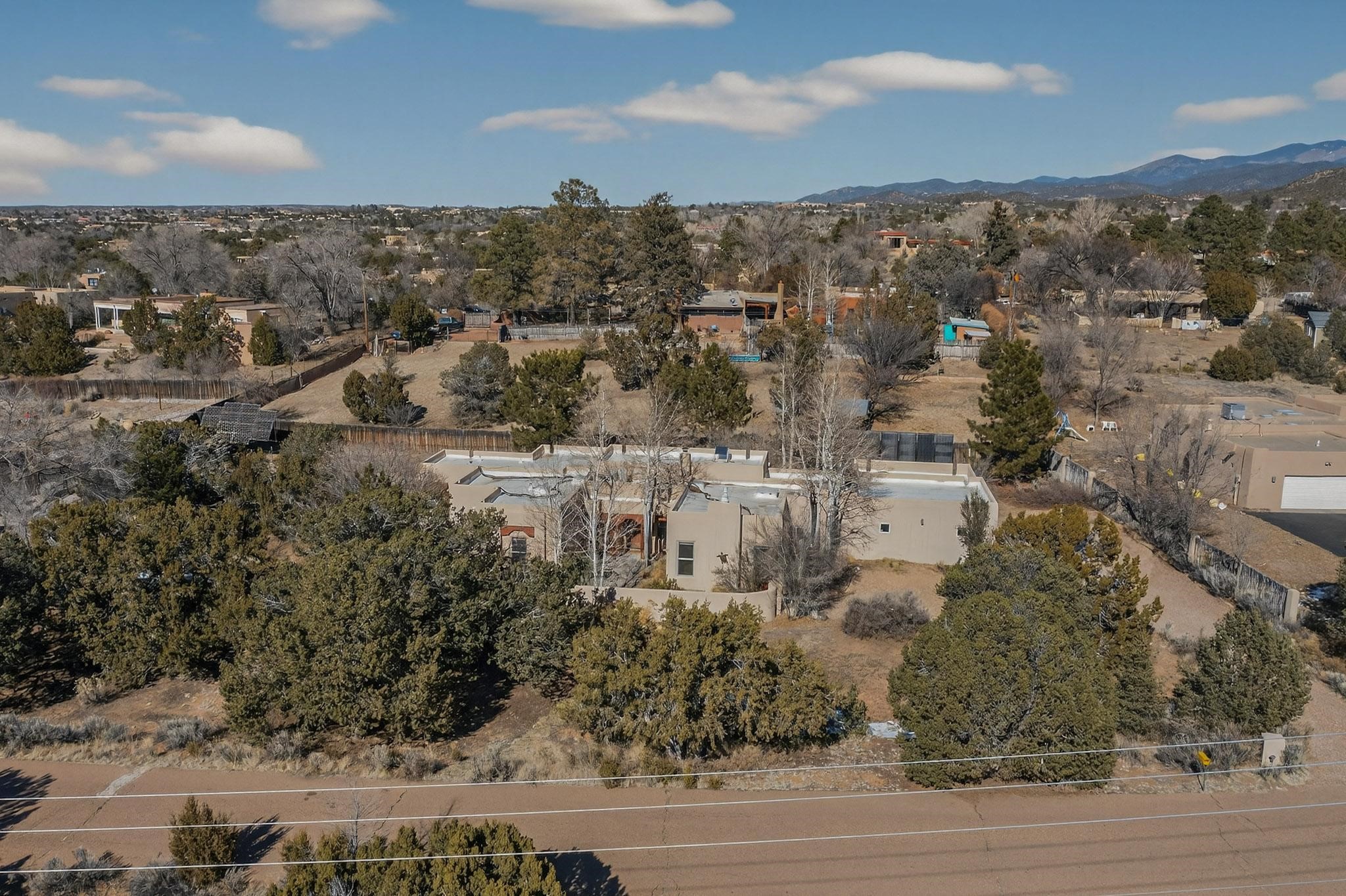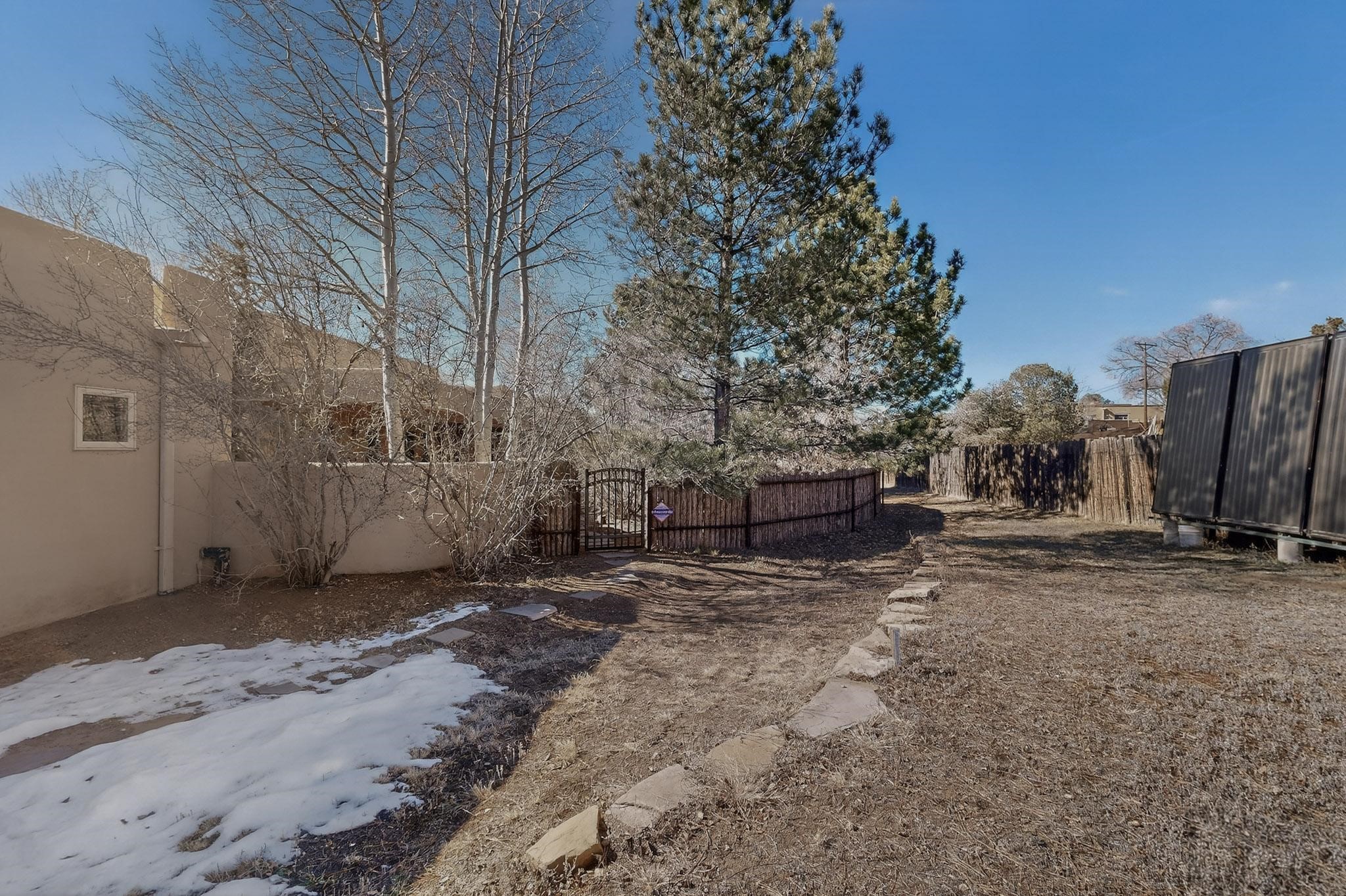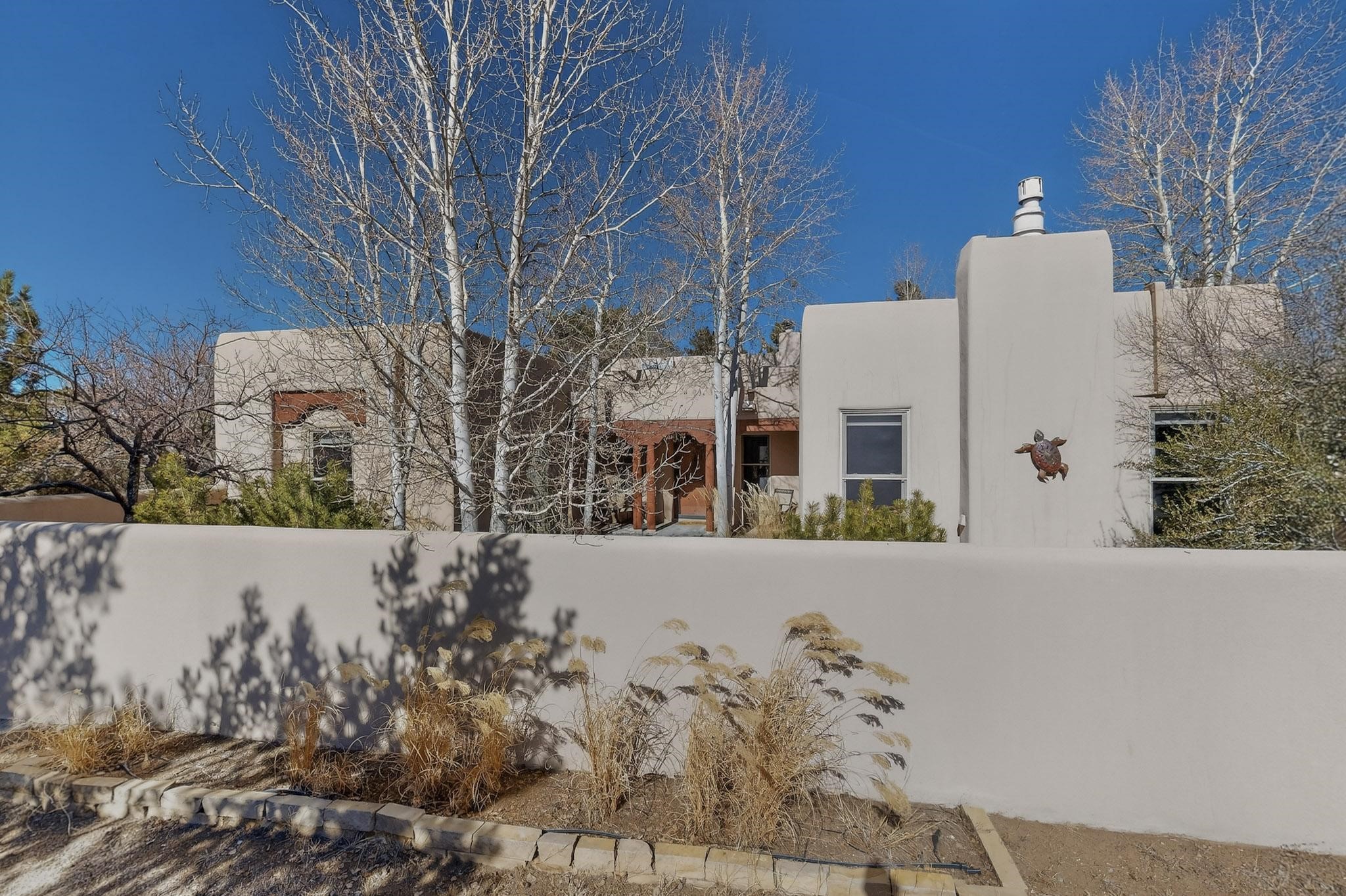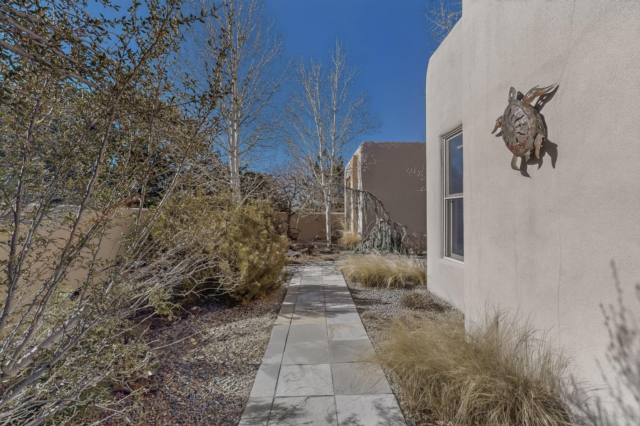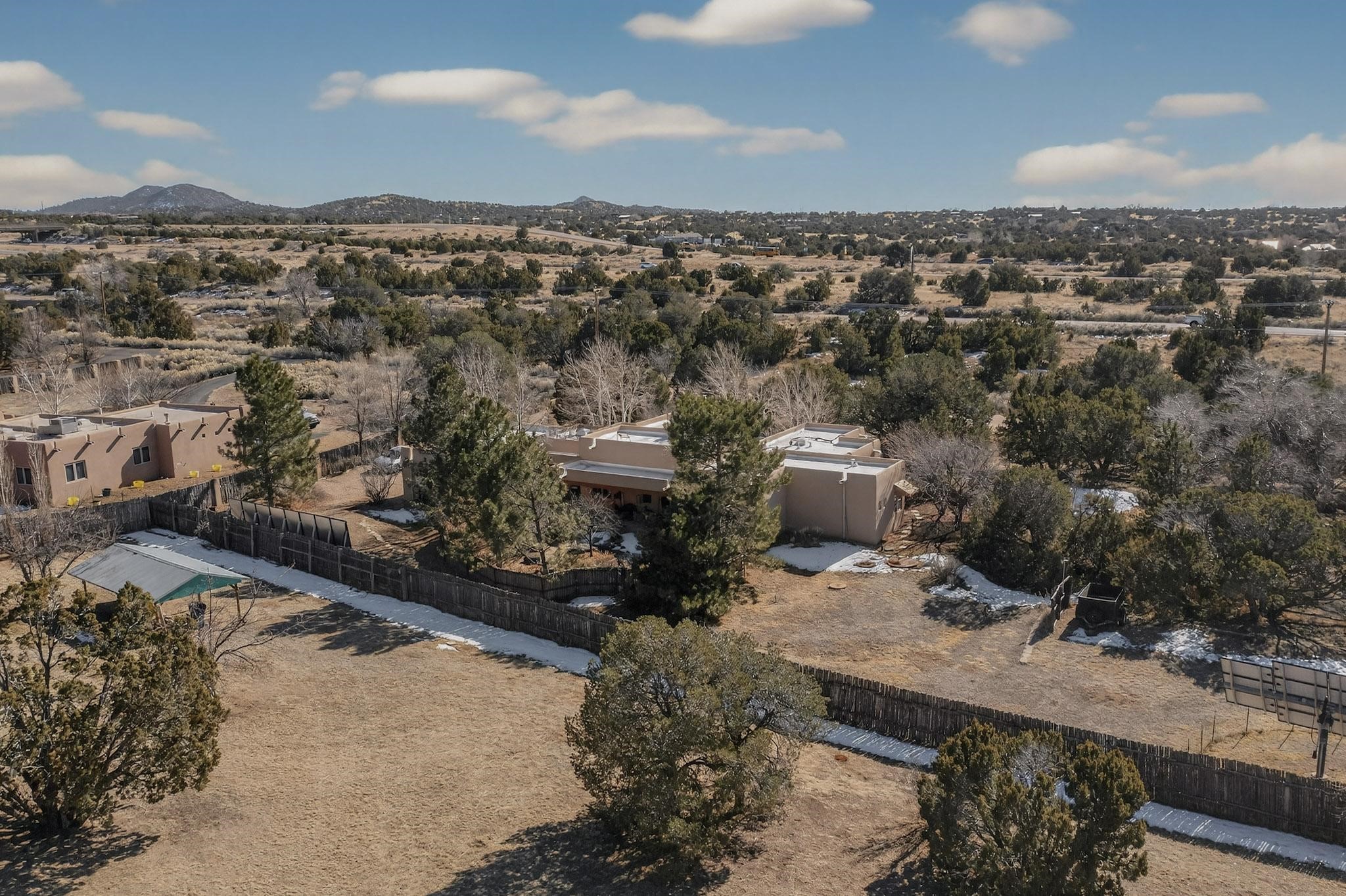 This 2003 Chapman built in City home has so many features to recommend! It is a balanced and lovely home set on 1.6 acres with open walkways and terracing on both south and north facades with stewarded irrigation and landscaping surrounds. City water as well as a cistern support gardening and a meaningful, open landscape. The solar footprint provides sustainable energy on a daily basis. This is an environmentally-friendly property that keeps utility bills to a minimum. The conforming style inside is a three bedroom, two bathroom home encompassing 2,508 sq feet. There are multiple closets throughout for storage needs. With an additional dining room off the Living Room, a large TV room and fireplace enhanced entertaining zone adjacent to the kitchen, a smaller breakfast/ lunch nook that opens to gardens and a fountain outside. The garage space at the east end addresses 2 car parking and has an additional work room for handyman tools, storage and craft considerations! Just wait until you see this abundance and the privacy it embraces, it is truly special. The exterior acreage is fenced in portions, wonderful for dog lovers, and the access to the Sol Y Lomas hiking roadways/trails is a big bonus too! The visible solar presence includes a 14 panel solar array to the west and eight standing vertical south facing solar panels attached to north fence which collectively are owned and service the house. Separate lists of pertinent house appliances as well as further details on the solar footprint can be reviewed in the associated docs of this Listing. The Listing price for this residence is $1 million which likely will celebrate affordability and possibly avoid today's High End Excise Tax!
