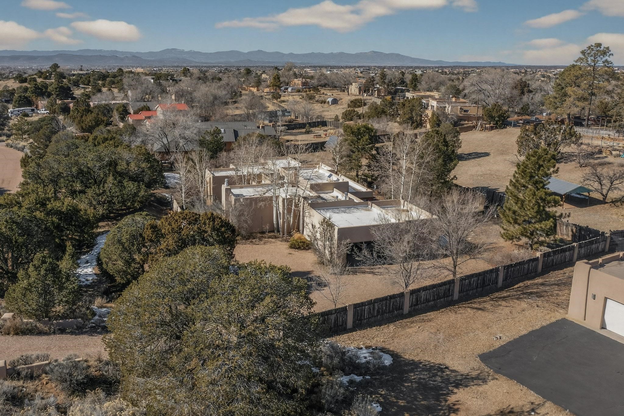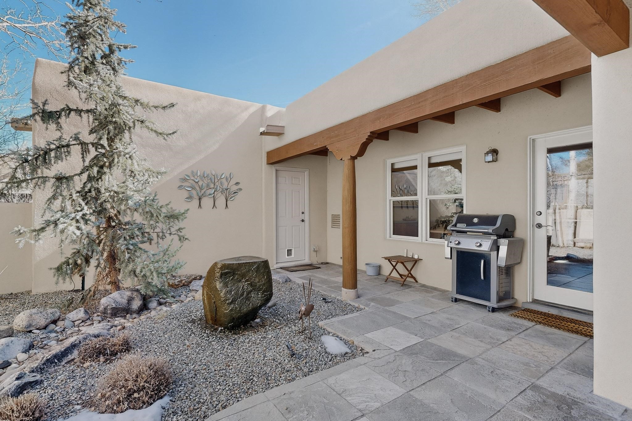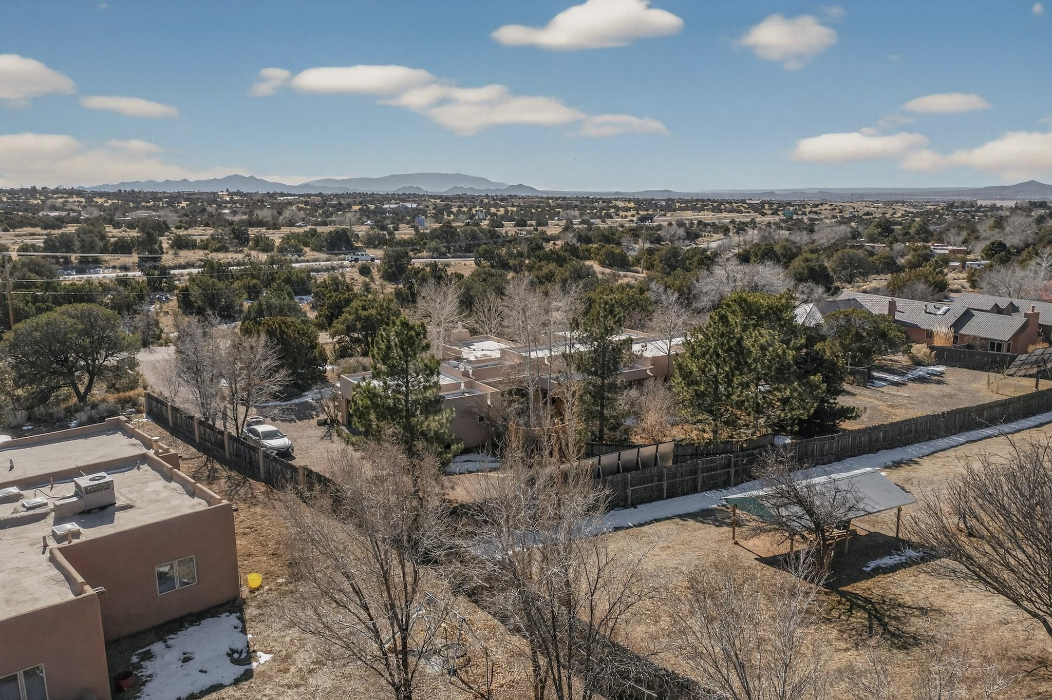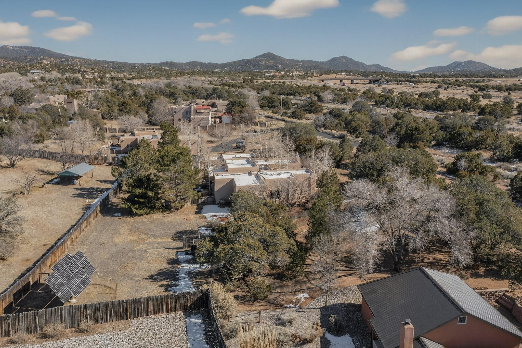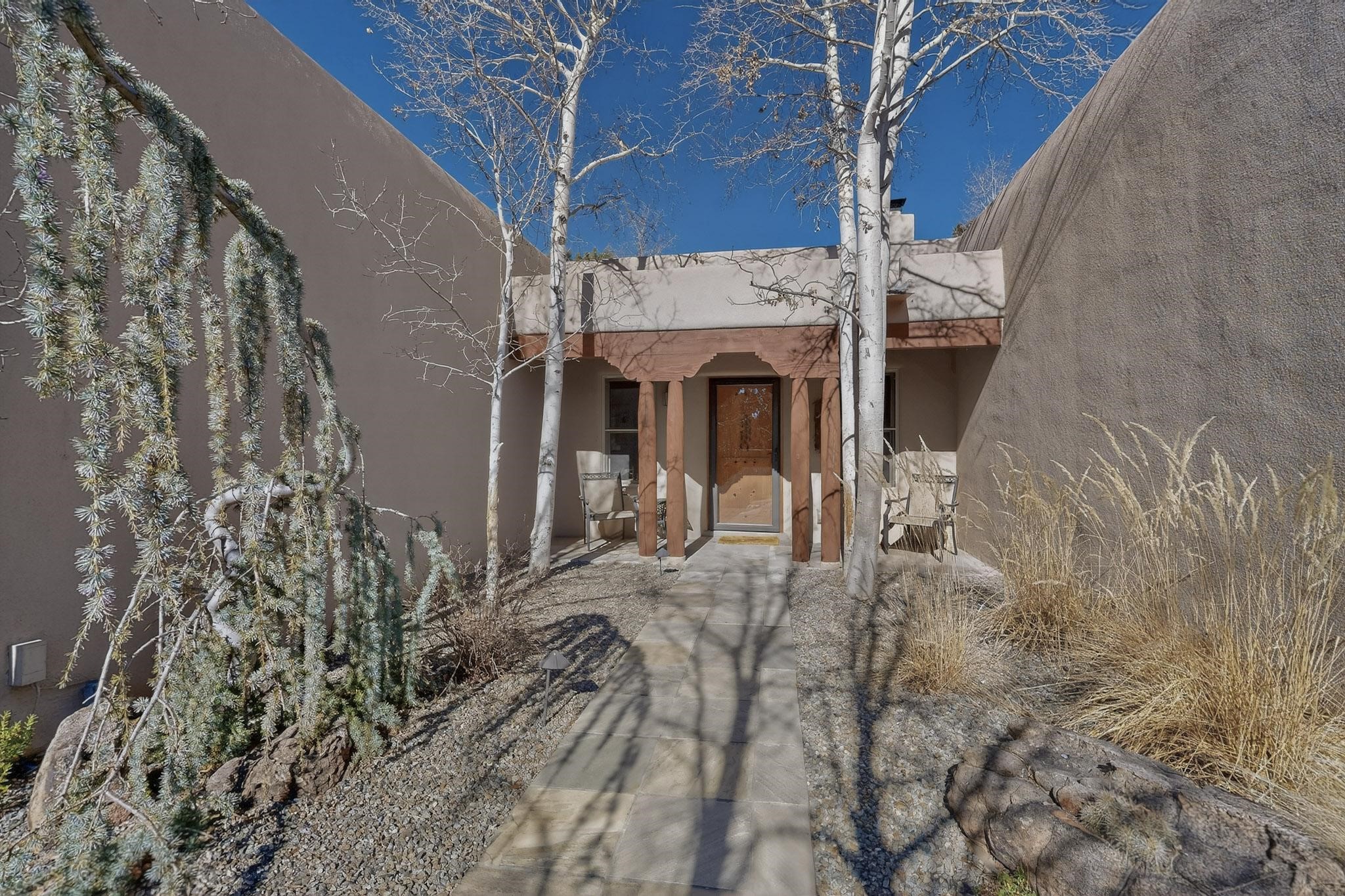 This 2003 Chapman built in City home has so many features to recommend! It is a balanced and lovely home set on 1.6 acres with open walkways and terracing on both south and north facades with stewarded irrigation and landscaping surrounds. City water as well as a cistern support gardening and a meaningful, open landscape. The solar footprint provides sustainable energy on a daily basis. This is an environmentally-friendly property that keeps utility bills to a minimum. The conforming style inside is a three bedroom, two bathroom home encompassing 2,508 sq feet. There are multiple closets throughout for storage needs. With an additional dining room off the Living Room, a large TV room and fireplace enhanced entertaining zone adjacent to the kitchen, a smaller breakfast/ lunch nook that opens to gardens and a fountain outside. The garage space at the east end addresses 2 car parking and has an additional work room for handyman tools, storage and craft considerations! Just wait until you see this abundance and the privacy it embraces, it is truly special. The exterior acreage is fenced in portions, wonderful for dog lovers, and the access to the Sol Y Lomas hiking roadways/trails is a big bonus too! The visible solar presence includes a 14 panel solar array to the west and eight standing vertical south facing solar panels attached to north fence which collectively are owned and service the house. Separate lists of pertinent house appliances as well as further details on the solar footprint can be reviewed in the associated docs of this Listing. The Listing price for this residence is $1 million which likely will celebrate affordability and possibly avoid today's High End Excise Tax!