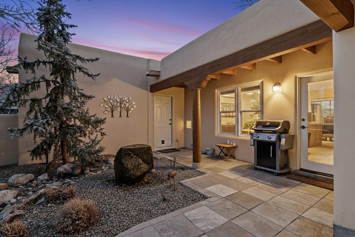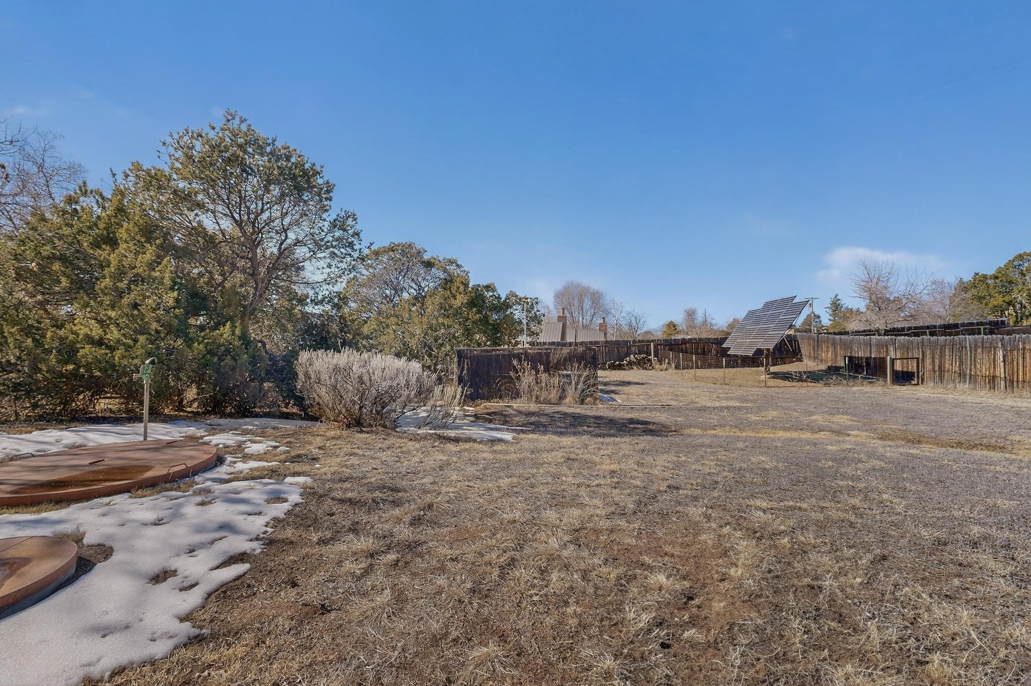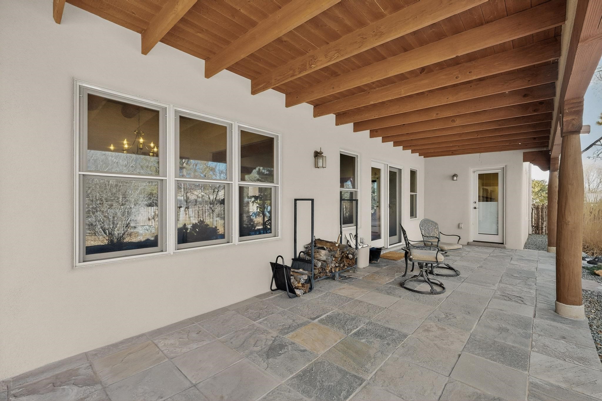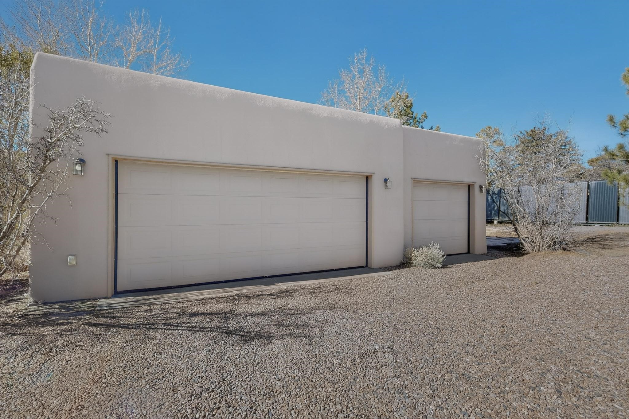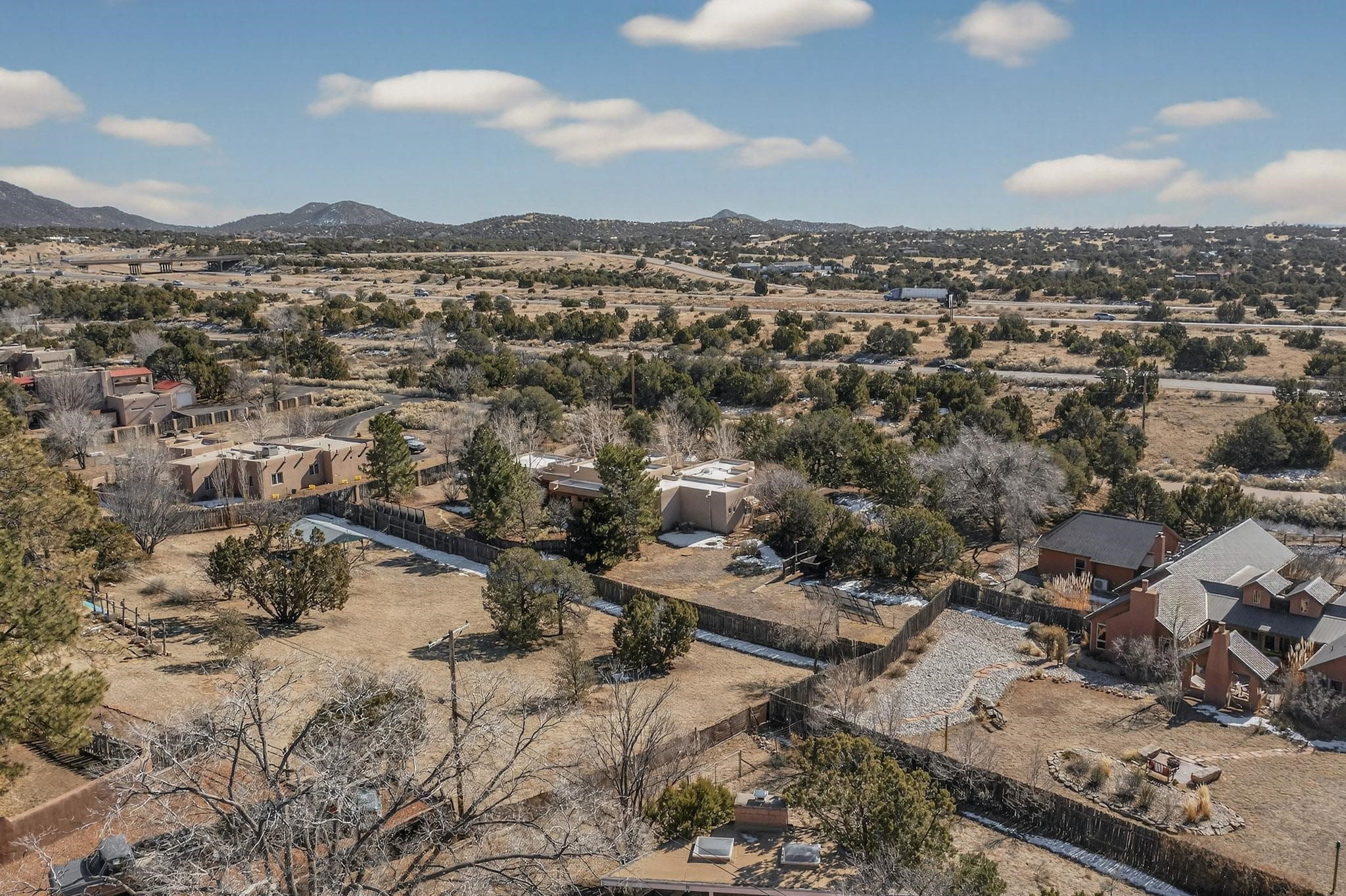 This 2003 Chapman built in City home has so many features to recommend! It is a balanced and lovely home set on 1.6 acres with open walkways and terracing on both south and north facades with stewarded irrigation and landscaping surrounds. City water as well as a cistern support gardening and a meaningful, open landscape. The solar footprint provides sustainable energy on a daily basis. This is an environmentally-friendly property that keeps utility bills to a minimum. The conforming style inside is a three bedroom, two bathroom home encompassing 2,508 sq feet. There are multiple closets throughout for storage needs. With an additional dining room off the Living Room, a large TV room and fireplace enhanced entertaining zone adjacent to the kitchen, a smaller breakfast/ lunch nook that opens to gardens and a fountain outside. The garage space at the east end addresses 2 car parking and has an additional work room for handyman tools, storage and craft considerations! Just wait until you see this abundance and the privacy it embraces, it is truly special. The exterior acreage is fenced in portions, wonderful for dog lovers, and the access to the Sol Y Lomas hiking roadways/trails is a big bonus too! The visible solar presence includes a 14 panel solar array to the west and eight standing vertical south facing solar panels attached to north fence which collectively are owned and service the house. Separate lists of pertinent house appliances as well as further details on the solar footprint can be reviewed in the associated docs of this Listing. The Listing price for this residence is $1 million which likely will celebrate affordability and possibly avoid today's High End Excise Tax!