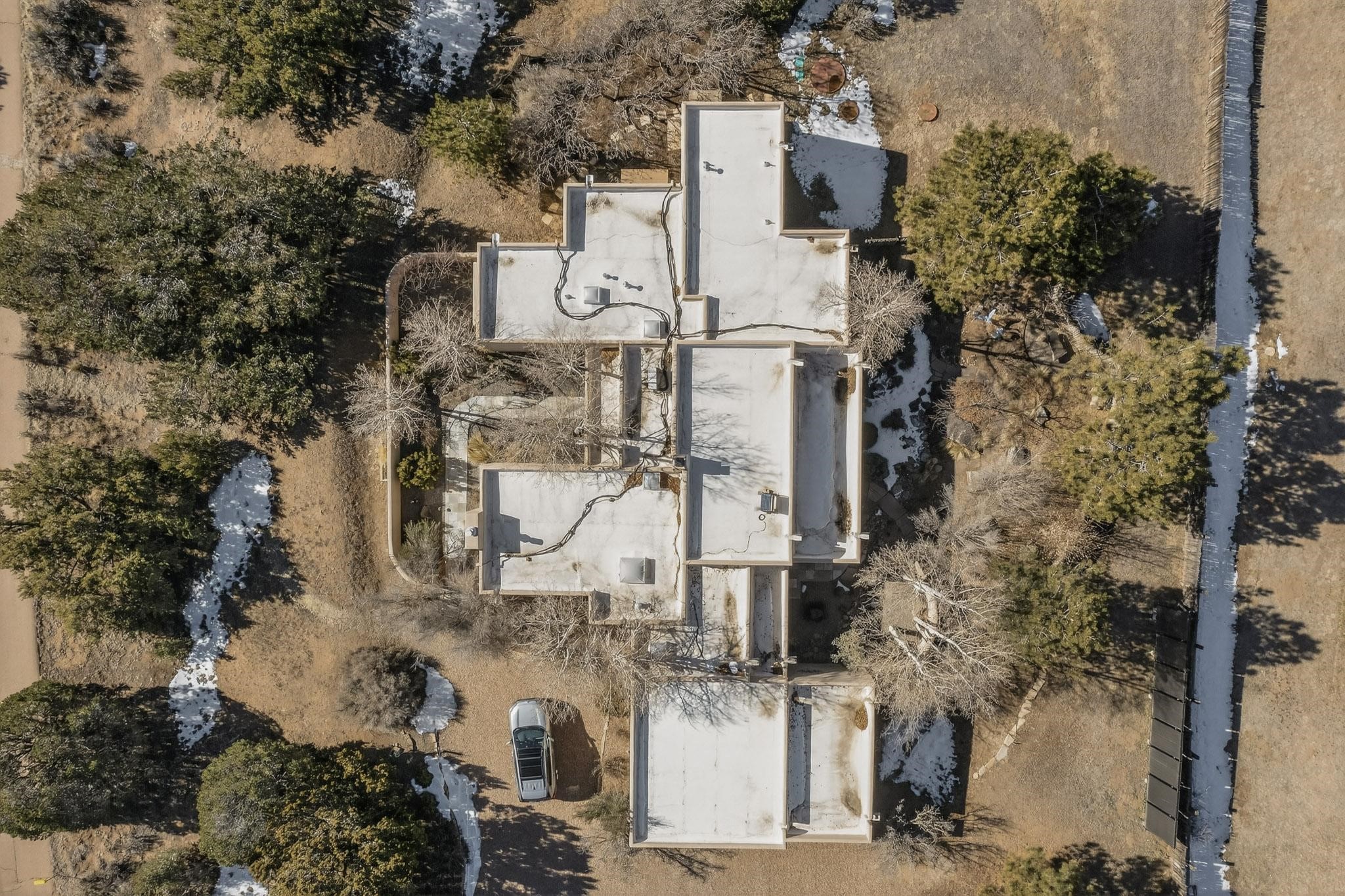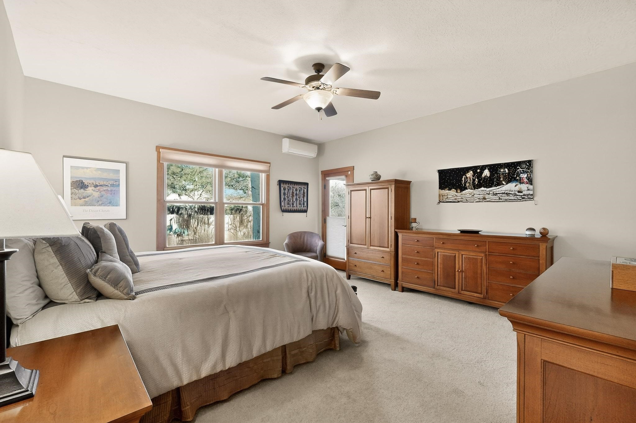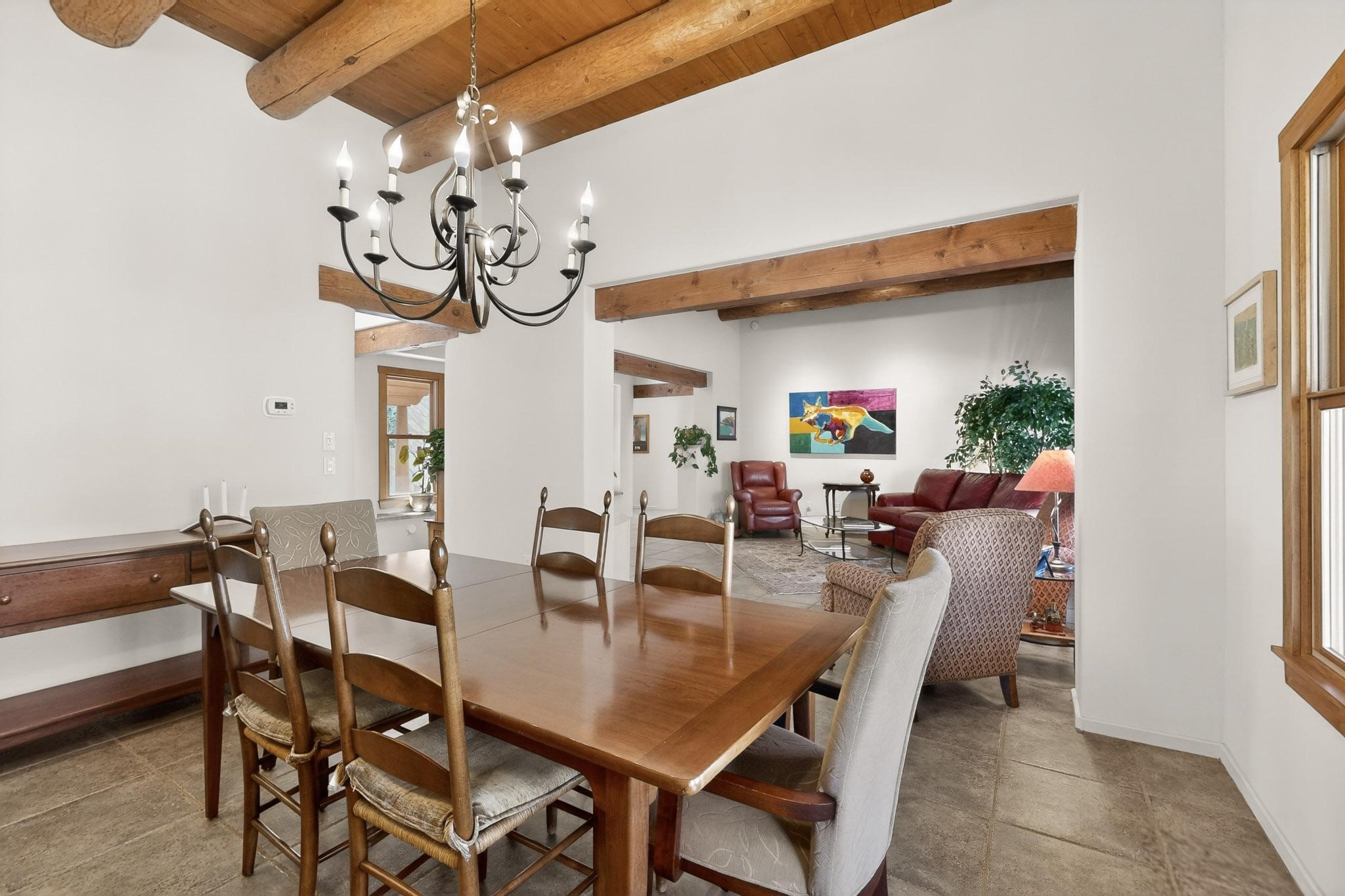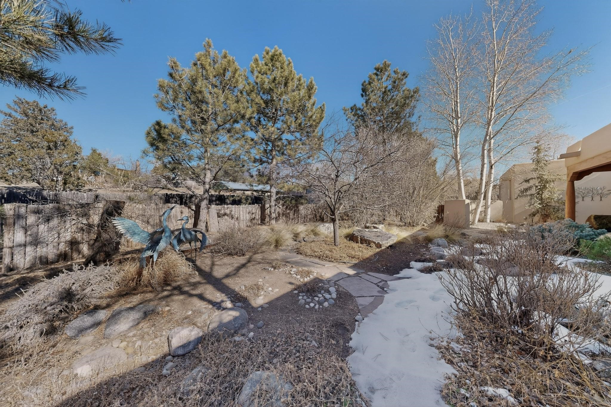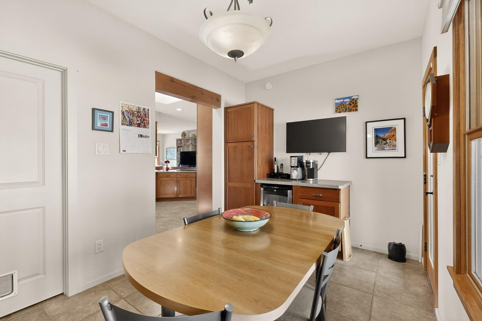 This 2003 Chapman built in City home has so many features to recommend! It is a balanced and lovely home set on 1.6 acres with open walkways and terracing on both south and north facades with stewarded irrigation and landscaping surrounds. City water as well as a cistern support gardening and a meaningful, open landscape. The solar footprint provides sustainable energy on a daily basis. This is an environmentally-friendly property that keeps utility bills to a minimum. The conforming style inside is a three bedroom, two bathroom home encompassing 2,508 sq feet. There are multiple closets throughout for storage needs. With an additional dining room off the Living Room, a large TV room and fireplace enhanced entertaining zone adjacent to the kitchen, a smaller breakfast/ lunch nook that opens to gardens and a fountain outside. The garage space at the east end addresses 2 car parking and has an additional work room for handyman tools, storage and craft considerations! Just wait until you see this abundance and the privacy it embraces, it is truly special. The exterior acreage is fenced in portions, wonderful for dog lovers, and the access to the Sol Y Lomas hiking roadways/trails is a big bonus too! The visible solar presence includes a 14 panel solar array to the west and eight standing vertical south facing solar panels attached to north fence which collectively are owned and service the house. Separate lists of pertinent house appliances as well as further details on the solar footprint can be reviewed in the associated docs of this Listing. The Listing price for this residence is $1 million which likely will celebrate affordability and possibly avoid today's High End Excise Tax!