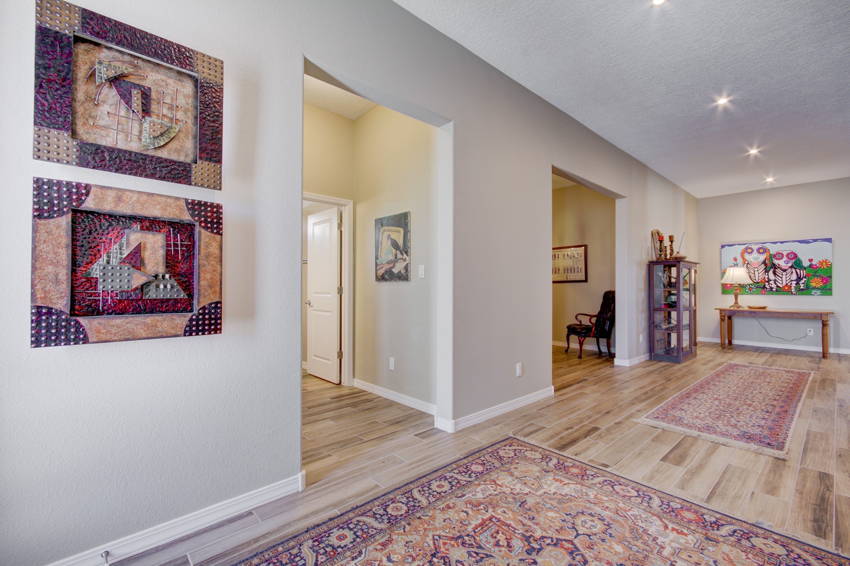 Step into refined, low-maintenance living in this beautifully crafted home located within Jubilee, a gated 55+ active adult community in Los Lunas. This elegant residence is designed for comfort and style, offering a spacious three-car garage that provides ample room for vehicles, hobbies, and storage. Enjoy breathtaking mountain views from the inviting patio and living areas, creating the perfect setting for relaxation or entertaining in an atmosphere of quiet sophistication. Inside you'll find a well-laid-out single-level floor plan designed for enjoyment and ease of living. The open great-room merges with a generous kitchen (ideal for entertaining or relaxed daily living), and the exterior view of the mountains provides a dramatic backdrop for morning coffee or evening sunsets.Residents enjoy access to a clubhouse and community center, fitness options and swimming, trails for walking or biking, and numerous clubs and events. The calendar is filled with activities such as game nights, happy hours, hobby groups, fitness classes, and seasonal celebrations- perfect for an active lifestyle and building friendships.This home gives you the full package: gated security, a vibrant active-adult neighborhood, a high-functioning home with three-garage space plus mountain vistas, and a community with lifestyle amenities that invite you to live well every day.