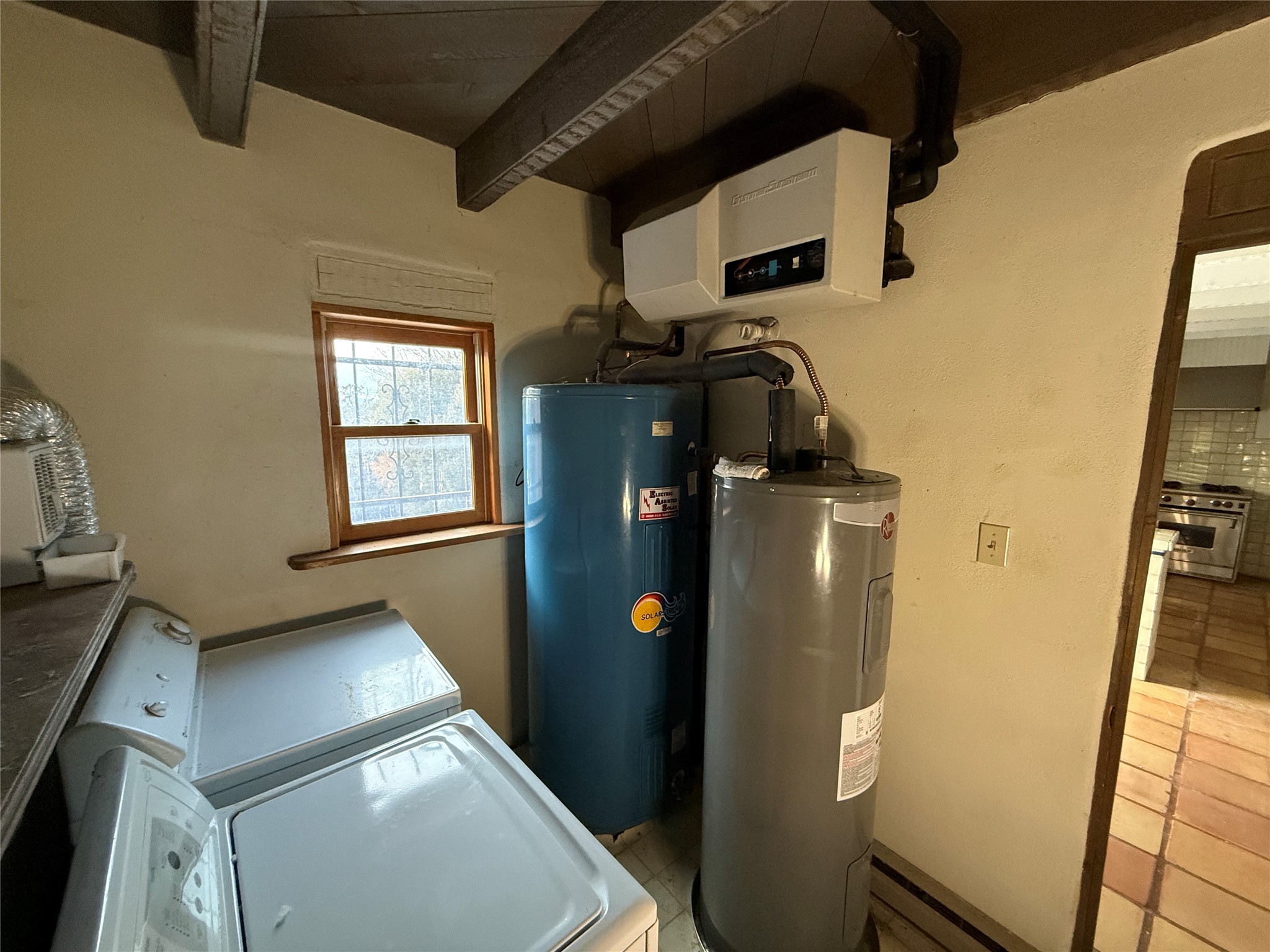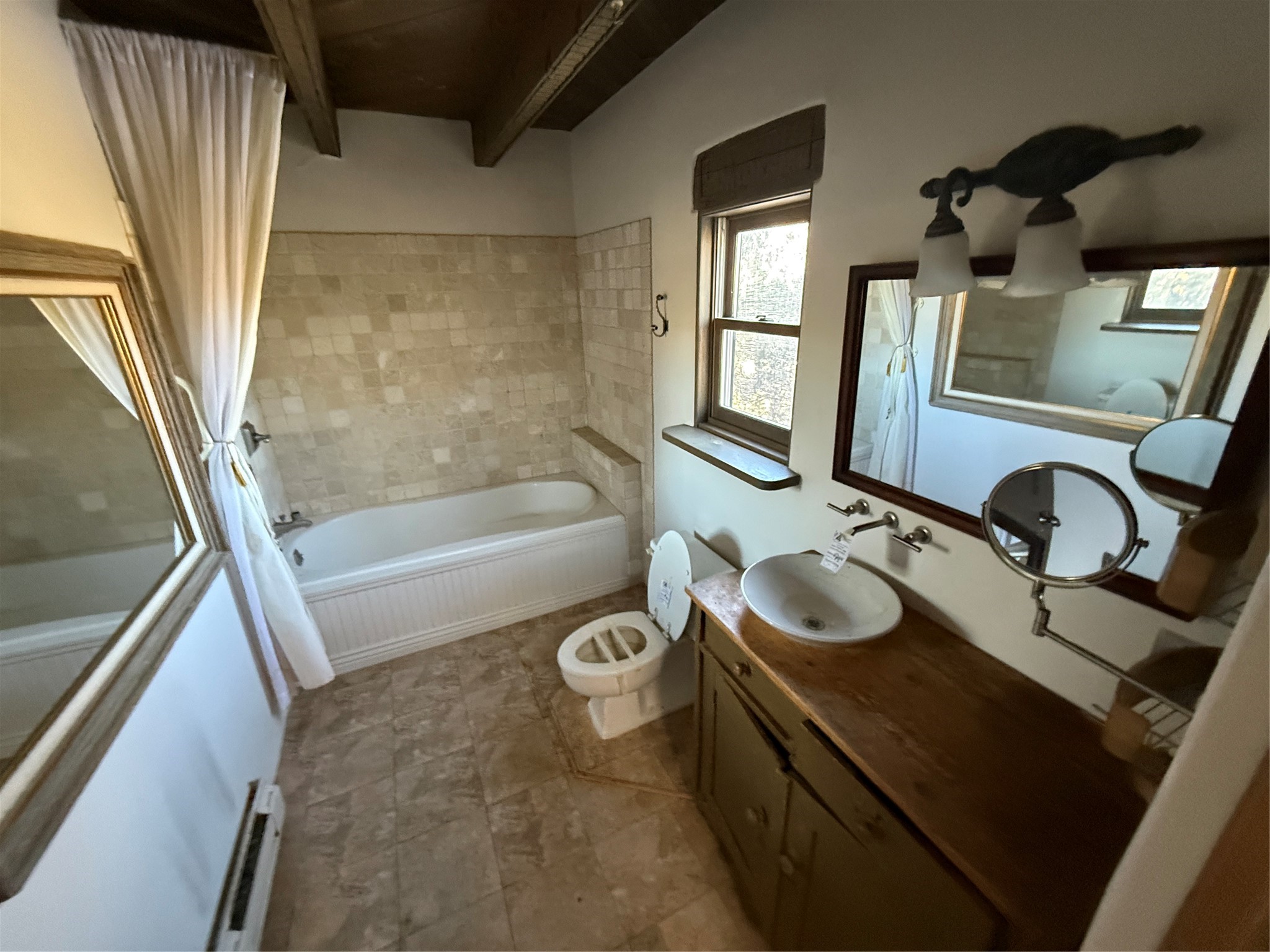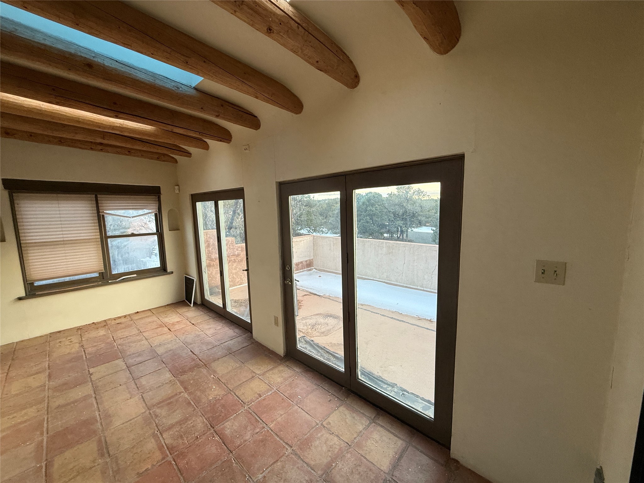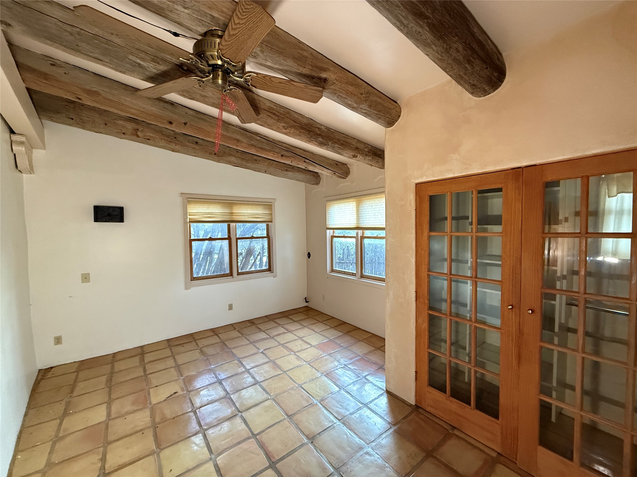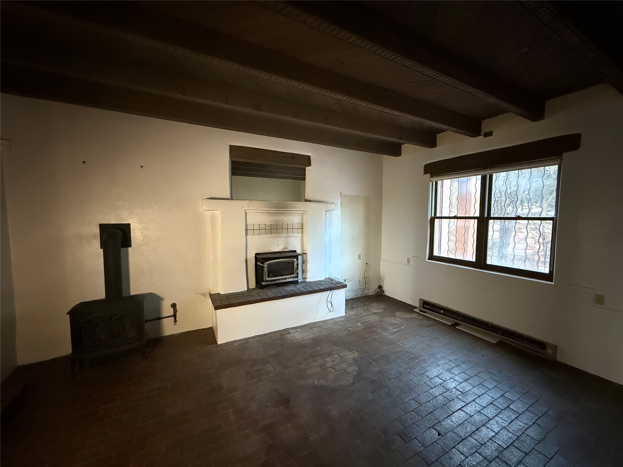 Nestled on a private, wooded 2.88-acre lot, this two-story pueblo-style home offers peaceful living with classic Santa Fe charm. The main house features three bedrooms and 2 bathrooms, a spacious kitchen with tile countertops and Saltillo tile floors, and a cozy family room with brick floors and a built-in fireplace. Enjoy outdoor living on the large brick patio overlooking the serene backyard--all offered at a great price.