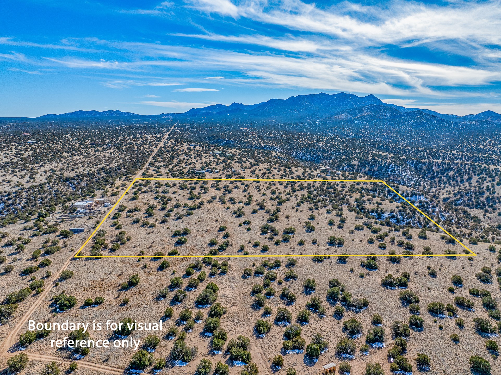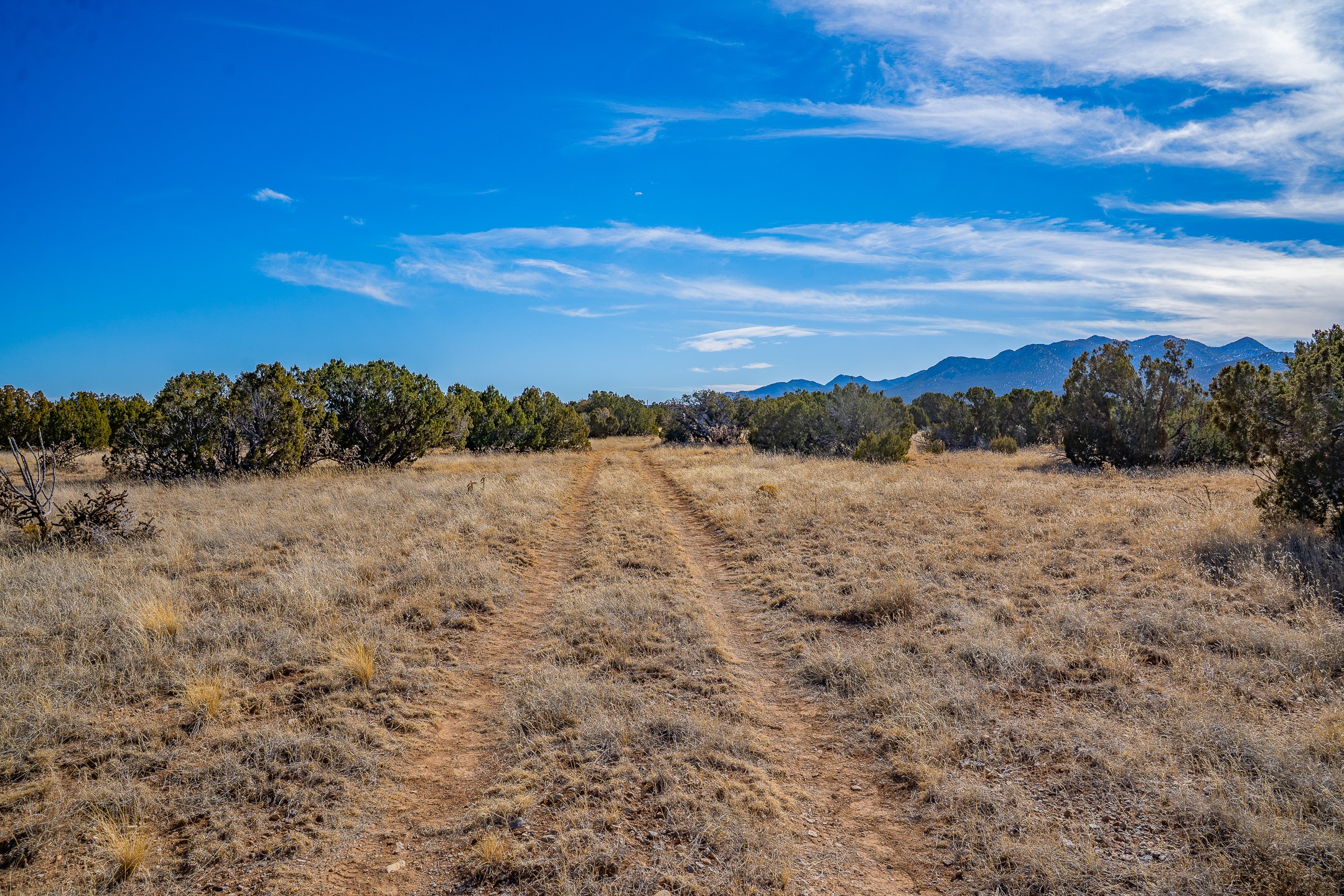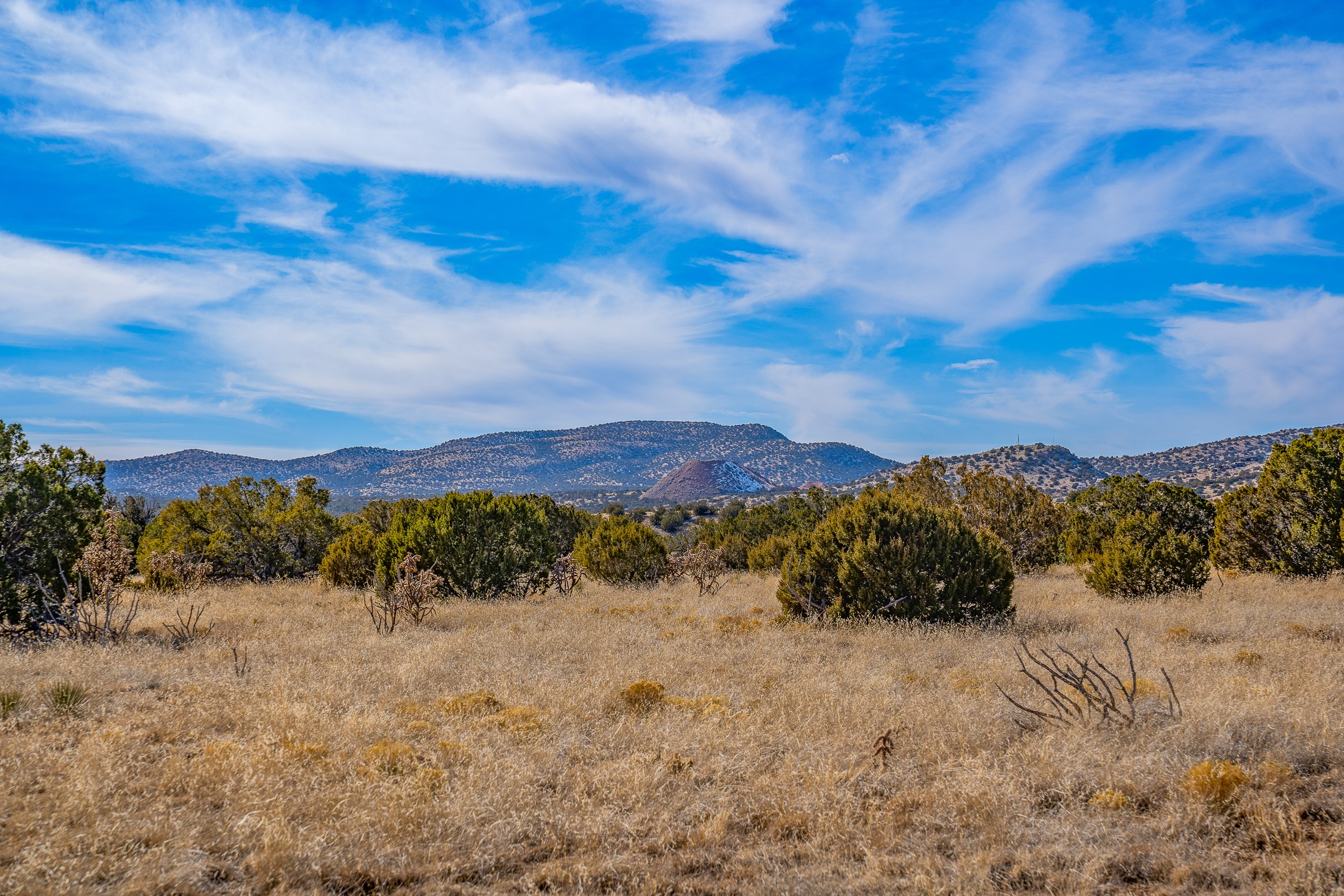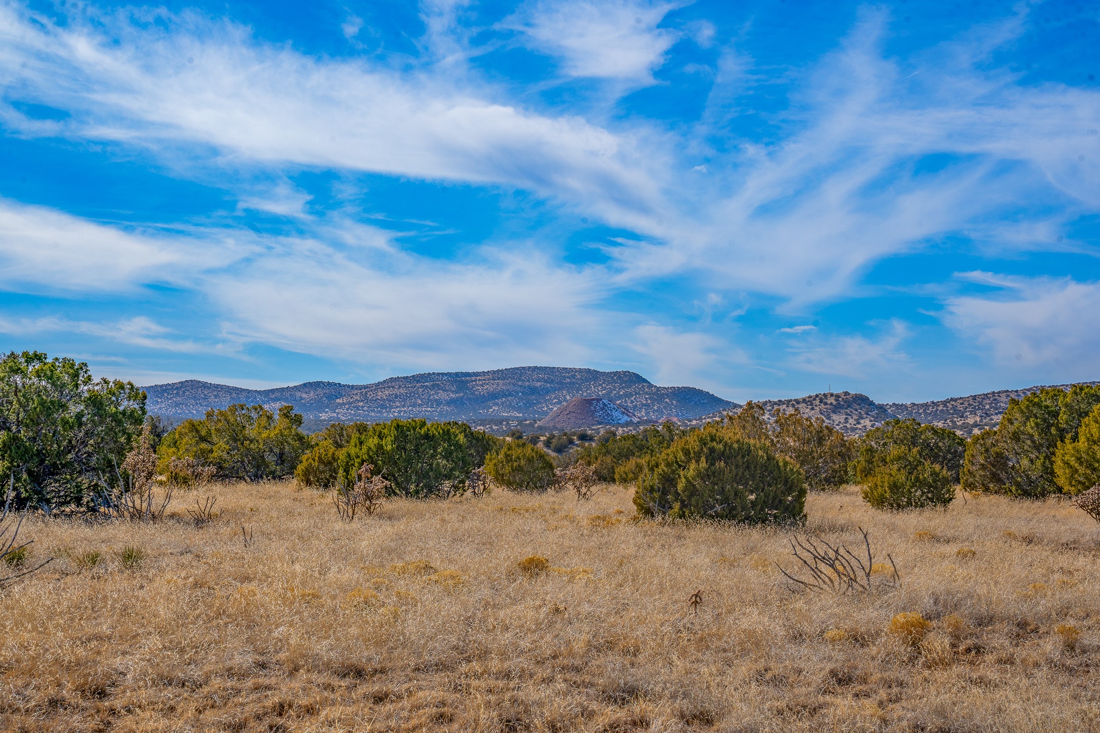 Three-hundred-and-sixty degree views from this twenty acre lot in the foothills of the Ortiz Mountains. Perched on the edge of a dramatic arroyo, this off-grid parcel is just a mile from pavement, and is mostly level, offering acres of easily usable land. Quiet, with excellent sunsets, mountain views, and the brilliant, starry nights that you can only get away from the city. Roads in area have seen recent improvements, property is roughly 2000' from underground power. Roughly 20 miles from Santa Fe and near Madrid and Cerrillos for dining and entertainment. Covenants forbid mobile homes, have very few other restrictions. Small homes and varied architectural styles welcome. Multiple properties are addressed 56 Ocean View, please get directions before seeing.