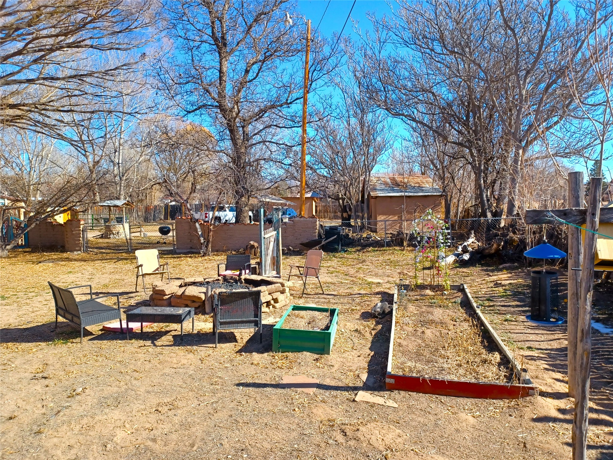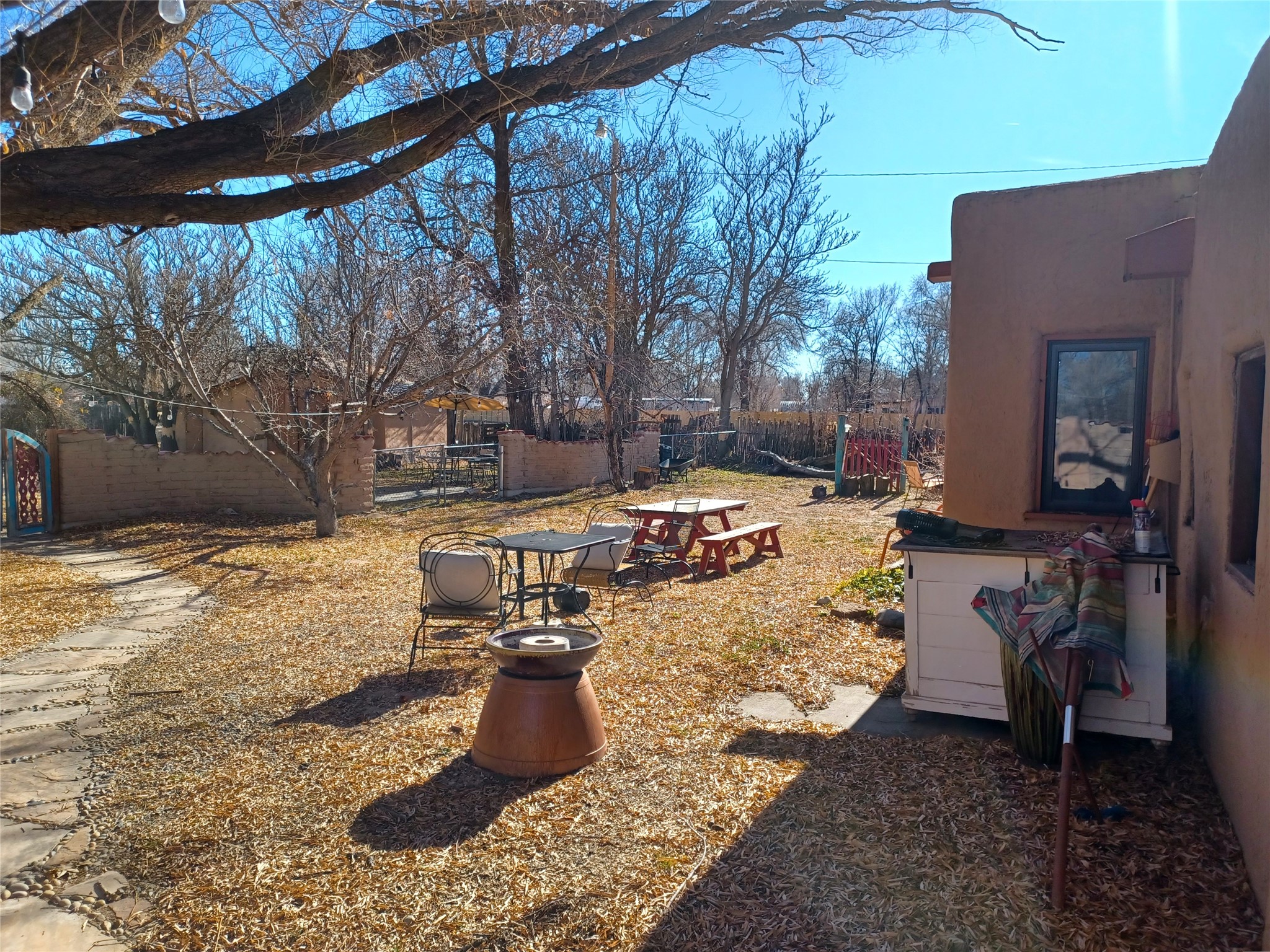 Welcome to "Casa de Guadalupe," a charming vintage adobe sanctuary nestled on half an acre in the verdant landscape of San Pedro in Espaola, NM. This unique 1,984-square-foot home offers a perfect blend of old-world character and modern convenience, featuring two bedrooms, a full bath, and an additional studio ideal for creative pursuits or a home-based business.The interior boasts a vibrant aesthetic feelwith colorful finishes that complement original 1920s oak floors, Mexican tile, exposed beams, and intricate nichos. Outside, the property is graced by a majestic globe willow, mature landscaping, fertile garden spaces, and inviting courtyards. Privacy is ensured by traditional adobe walls and latilla fencing, all secured behind a gated entry.The generous lot also includes a rustic workshop/barn and an additional storage building, catering to artists, writers, gardeners, and boutique farmers. Residents will enjoy scenic commutes to Santa Fe, Los Alamos, and Ojo Caliente Mineral Springs Resort & Spa, with the world-renowned Buffalo Thunder Casino and the Black Mesa Golf Club located just minutes away. Experience the charm and potential of this lovingly updated home in person.Schedule a showing today!