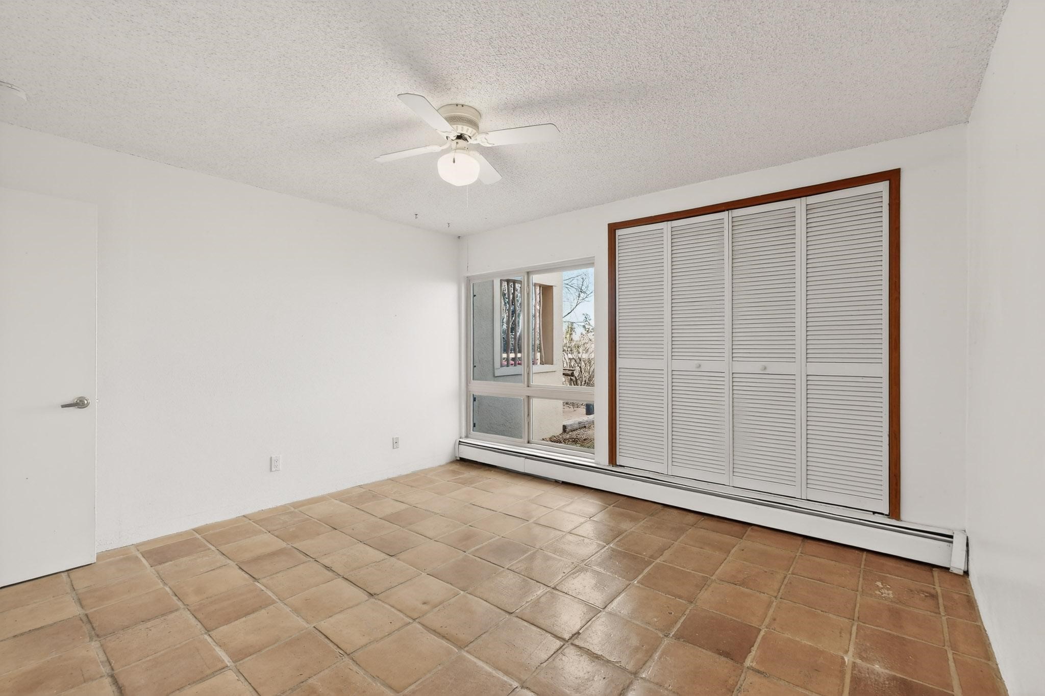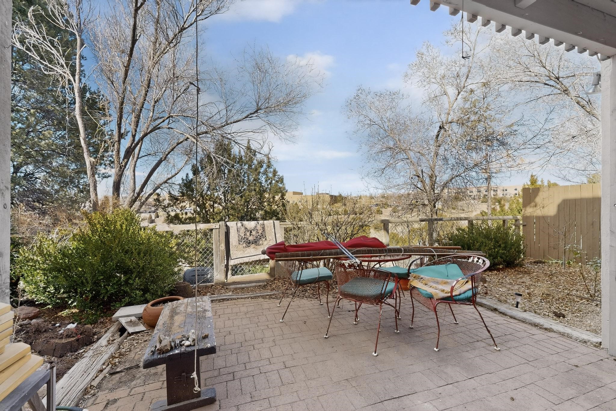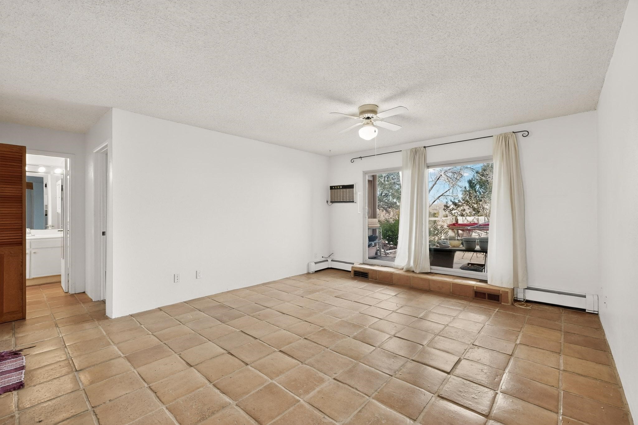 Live at the Los Arroyos Condos in the east area of town offers two bedrooms, a 1 3/4 bathrooms and it includes a large laundry and storage room with a stacked washer and dryer. The flooring is saltillo tile in all living areas and bedrooms (no carpet), the second bedroom has laminate wood flooring. This ground-floor condo overlooks the arroyo and trail! The Los Arroyos area is approximately 14 acres of trees, flowers, and shrubs. It's close to medical facilities, along with convenient shopping and a few minutes' drive to downtown. All utilities are included in the HOA fee except electric. The Los Arroyos Compound includes access to an array of amenities, including a clubhouse, an indoor pool, an exercise room, a dry sauna, outdoor space for social gatherings, and tennis courts.