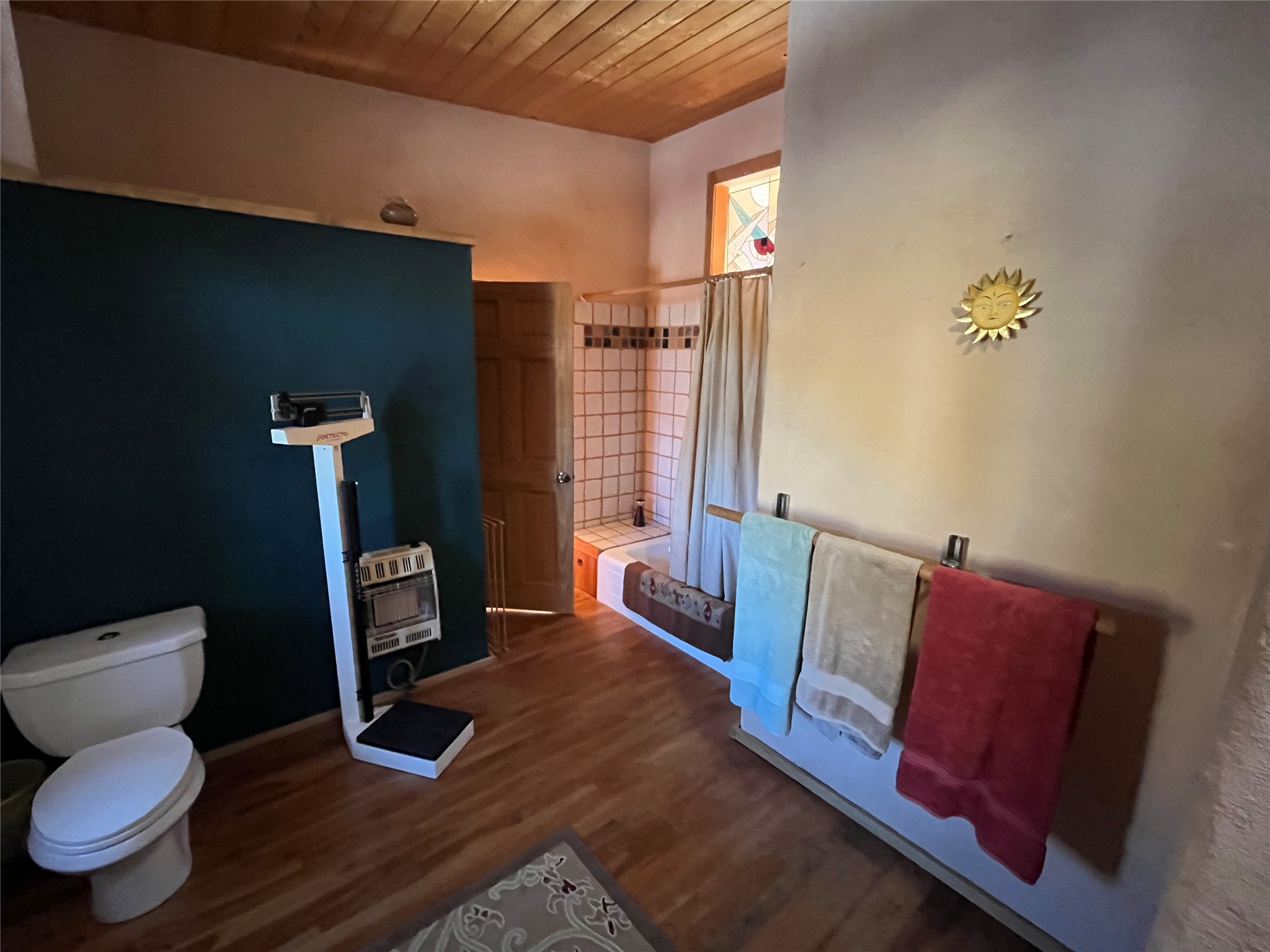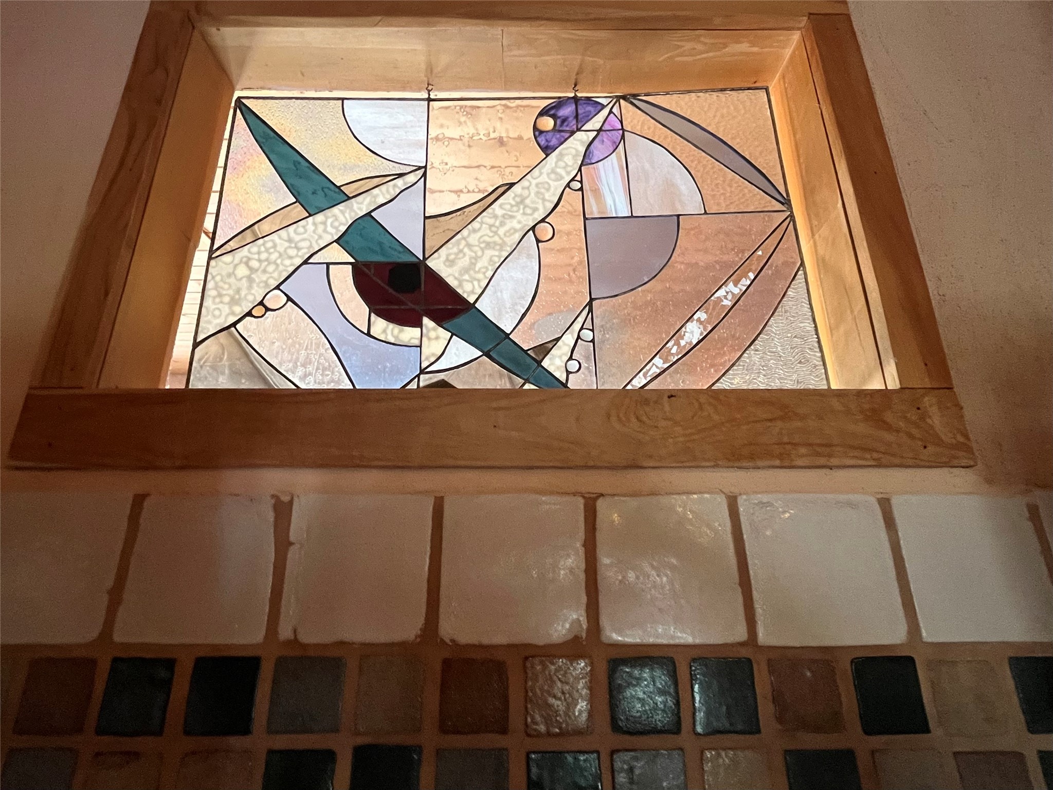 Thoughtfully designed and consciously placed, this off-grid straw bale home sits on approximately 10 acres in the Cerrillos/Madrid area, positioned to take full advantage of sweeping mountain views, privacy, and easy access. Located less than a quarter mile from Highway 14, the property offers a rare combination of seclusion and convenience. The main residence offers two bedrooms and a sunroom, high ceilings, abundant natural light, and an open, inviting layout. Interior details include teak and concrete flooring, an open kitchen, generous storage, and a large, well-lit bathroom. The home is served by a private well and septic system and is powered by its own PV solar system, designed for efficient off-grid living. A separate 800+/- sq ft artist's studio/barn adds exceptional versatility. The structure includes a full loft, a large sauna, brick flooring, oversized double doors opening to a secluded brick patio, and a viewing deck. This building offers flexible studio, workshop, or storage space and significant potential for future enhancement. The land is partially fenced and extends across Camino Cerro Chato, providing added privacy and multiple view corridors. Additional features include a horse pen and run-in shed, multiple outdoor seating areas that take in the surrounding landscape, and select furnishings, carpets, and tools that may convey with the sale. This is a distinctive property well-suited for buyers seeking privacy, creative space, and a sustainable lifestyle in one of Santa Fe County's most compelling high-desert settings.