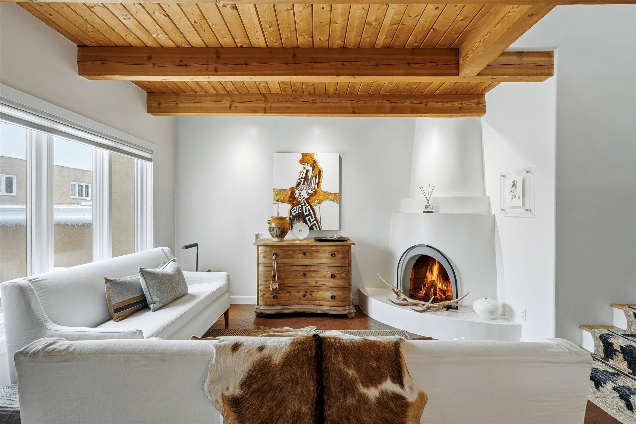 The Northeast of Santa Fe, within city limits, combines the pleasures of quiet living with the conveniences of location. On every tree-lined street are examples of newer, award-winning architecture and well-established, older adobes. In addition to the famous Plaza, this area includes all the land reaching up to the Jemez and the Sandias. Newer developments appear on your left and right as you climb in altitude into the tree-studded Sangre de Christos. Historically this area was for many years the center of life in Santa Fe. On one side of the Plaza stretches the Palace of the Governors. Constructed in the early 17th century as Spain’s seat of government, the Palace of the Governors in Santa Fe chronicles and documents the history of the city, as well as New Mexico and the region. Stroll down East Palace Avenue past galleries, shops and lovely hotels.